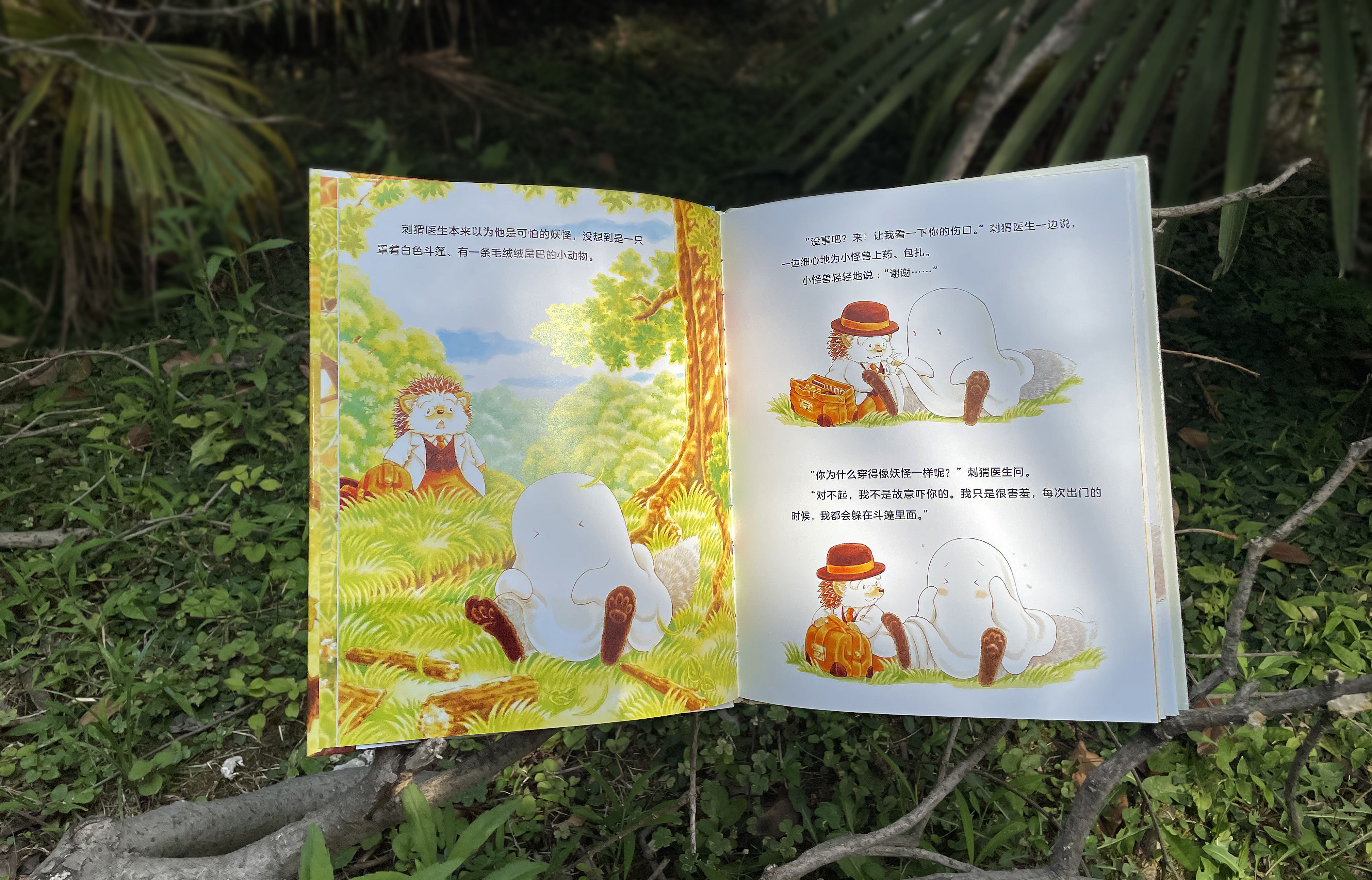 心,他照顾浣熊让他安心。不论病人是孩子是大人还是损坏的玩偶,刺猬医生都逐一精心照顾着他们。从图画中我们可以看到桌架上的小刺猬玩偶随着病人的增加在逐渐减少,这些减少的小刺猬玩偶在离开的病人怀里被发现。由此能从中感受到刺猬医生不仅是用医术为小动物们治病,更是用爱心治愈着大家。