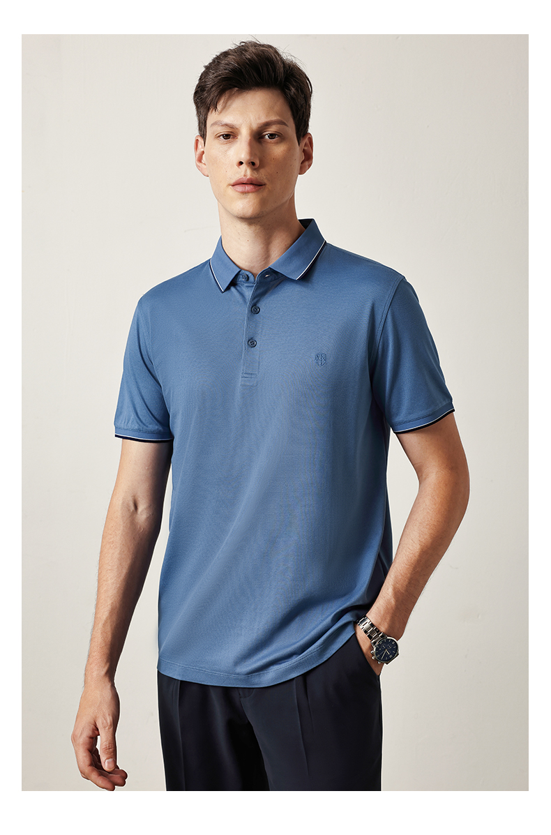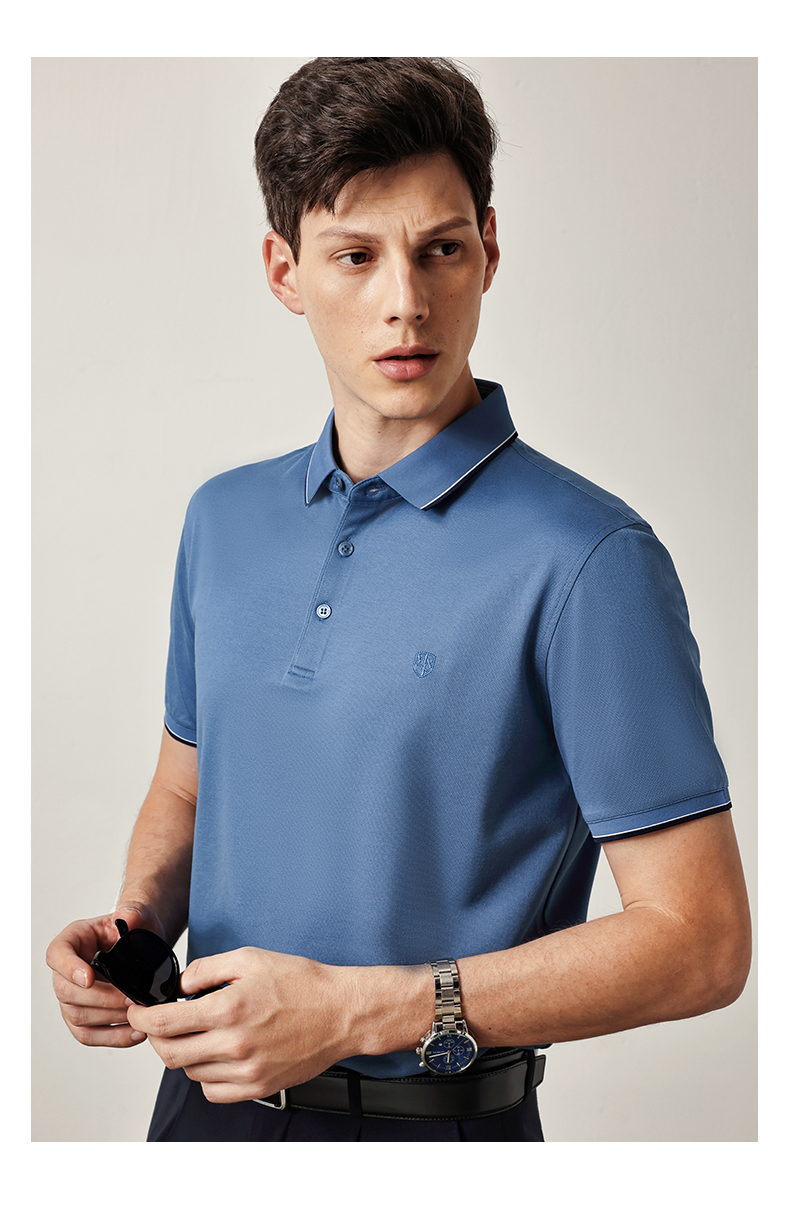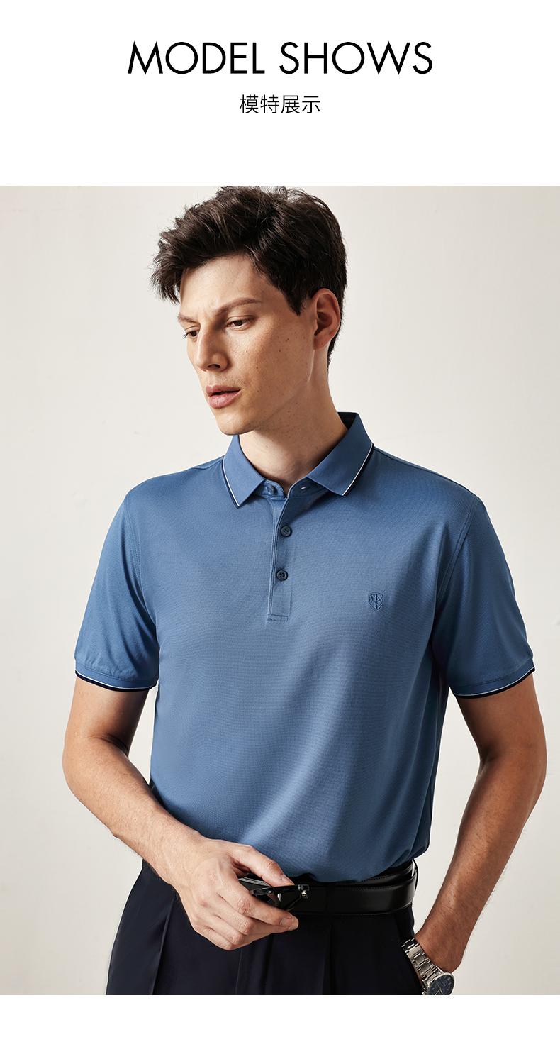 M&D/名盾男装春夏新款商务风撞色刺绣标翻领短袖POLO衫男士