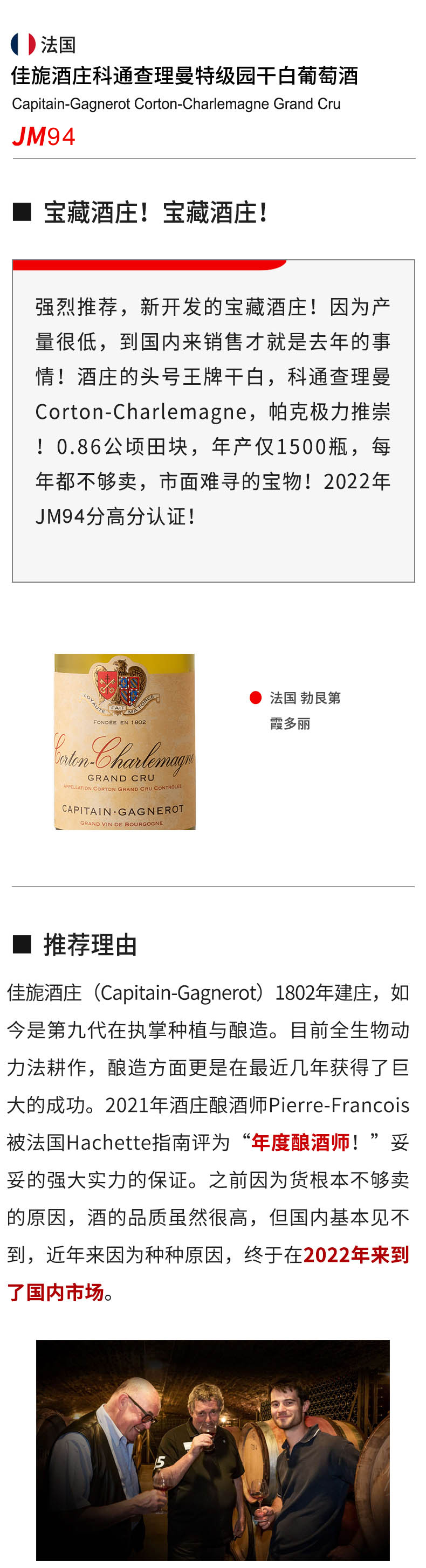 【勃艮第宝藏酒庄】佳旎酒庄科通查理曼特级园干白2022
