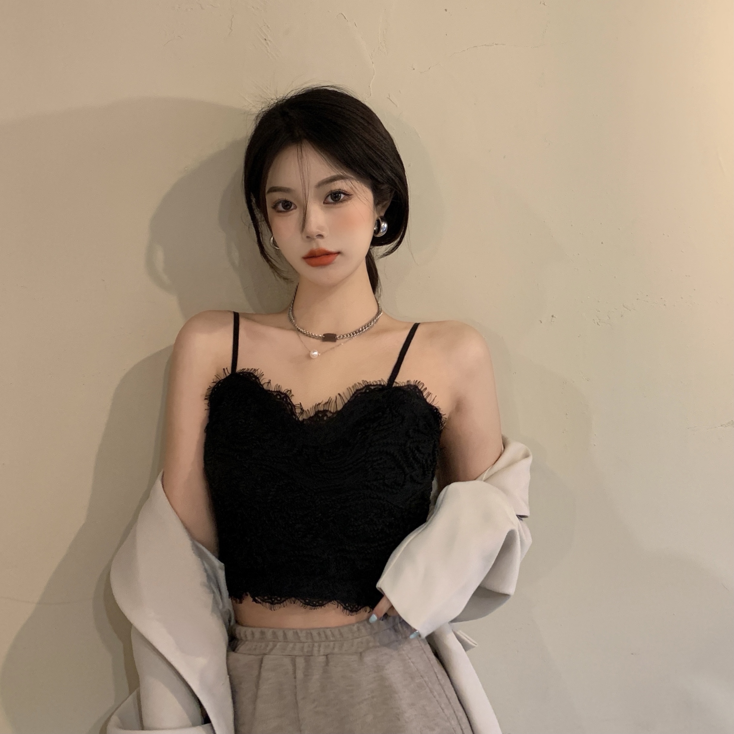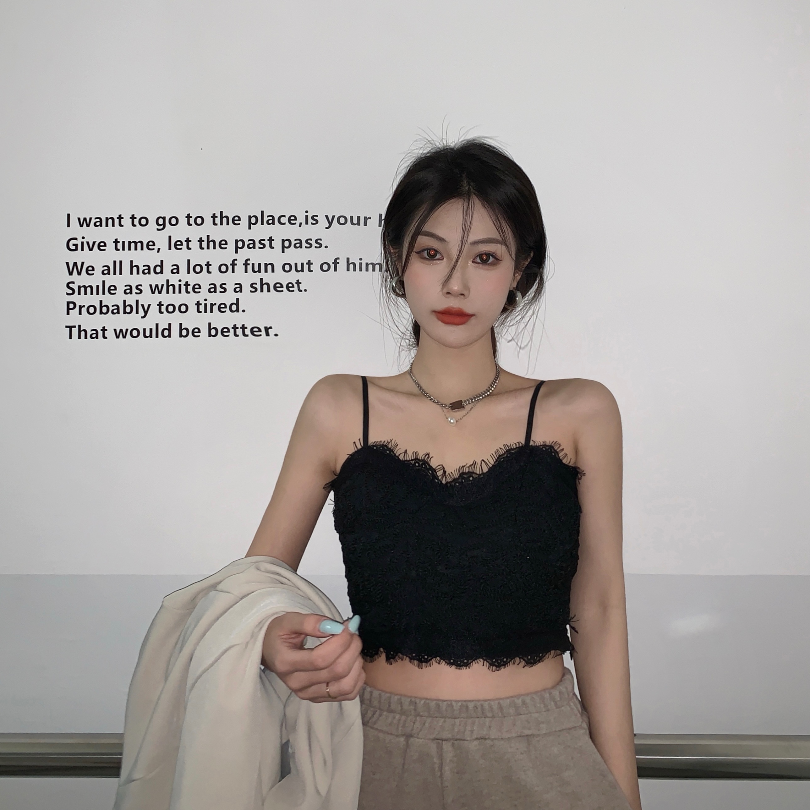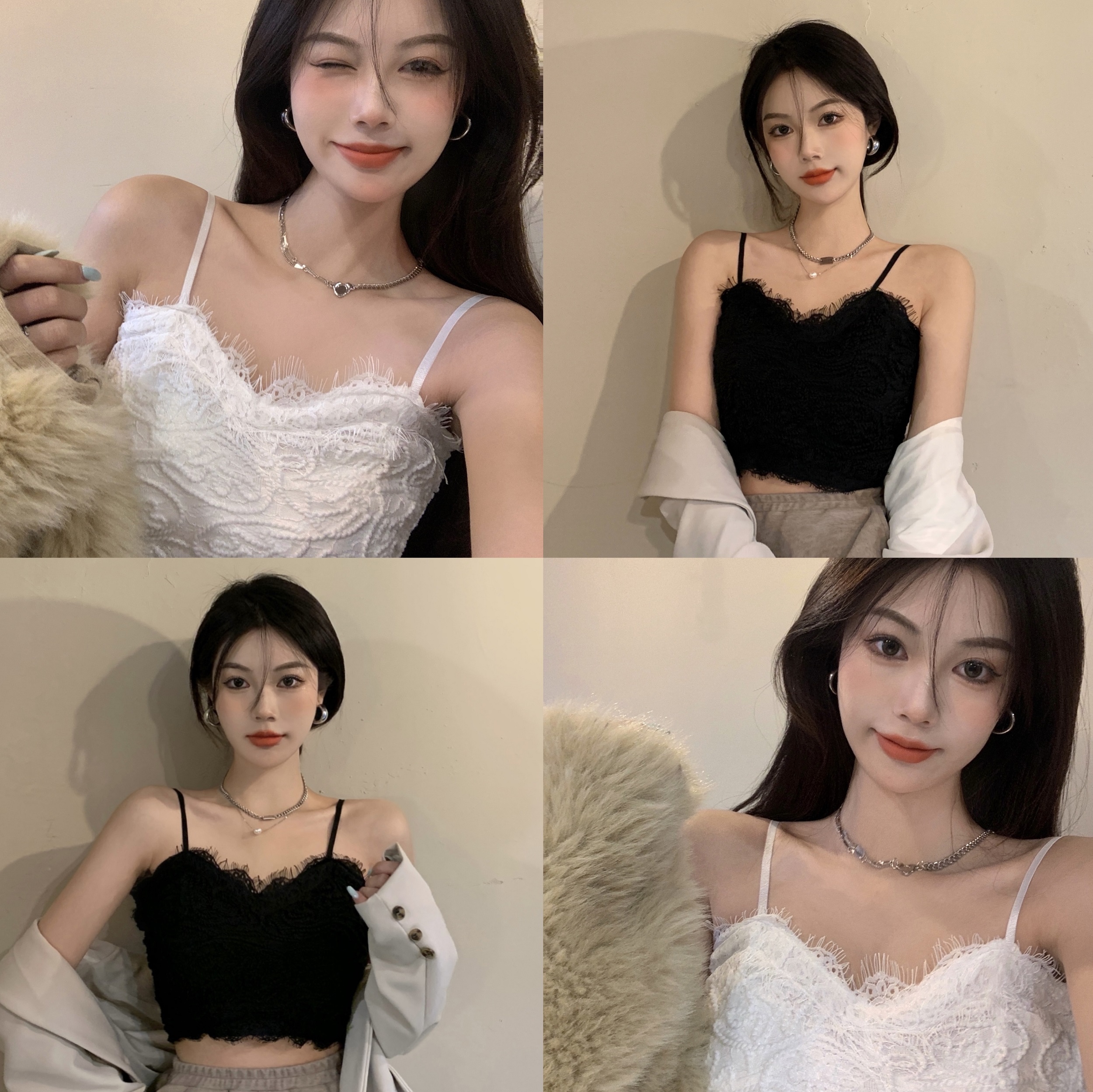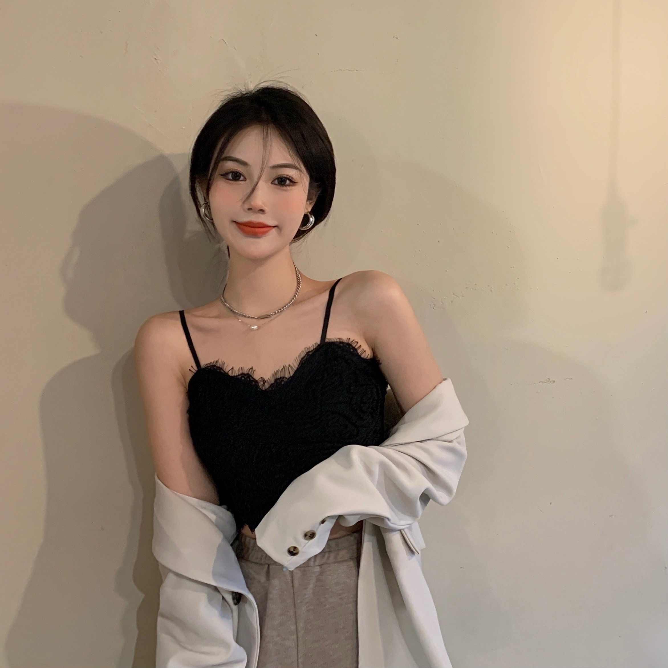【买一送一优惠装】黛唯梵白色 黑色吊带背心女内文胸搭秋冬外穿2022年新款蕾丝修身显瘦抹胸短款内衣七夕情人节