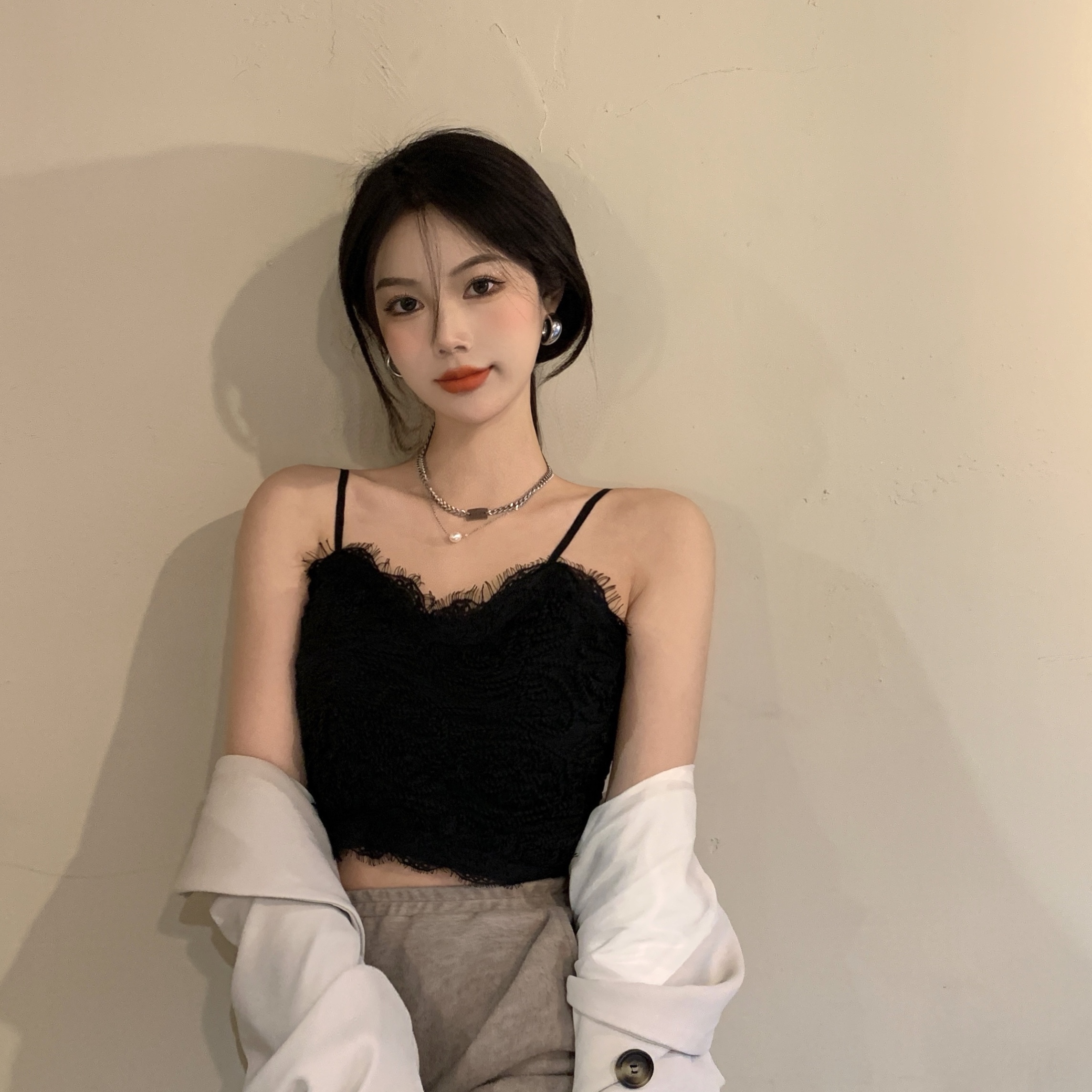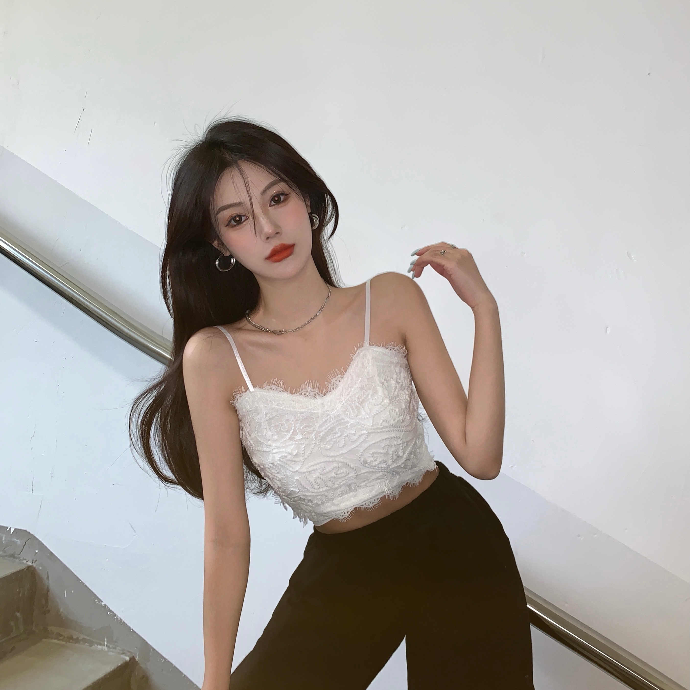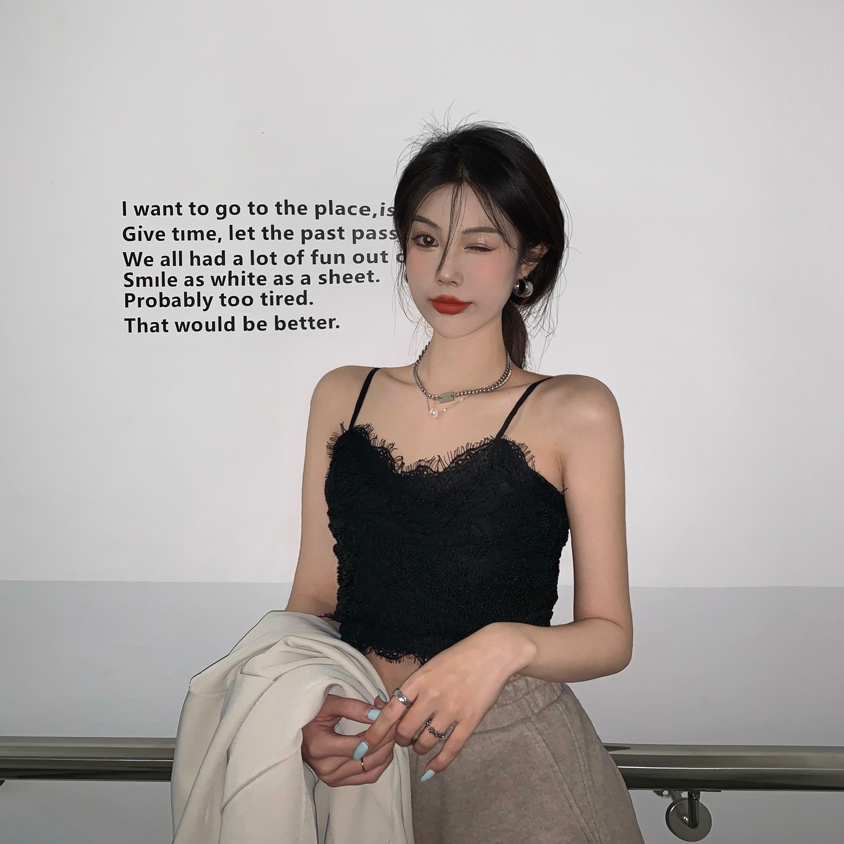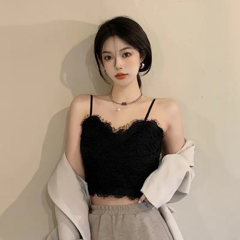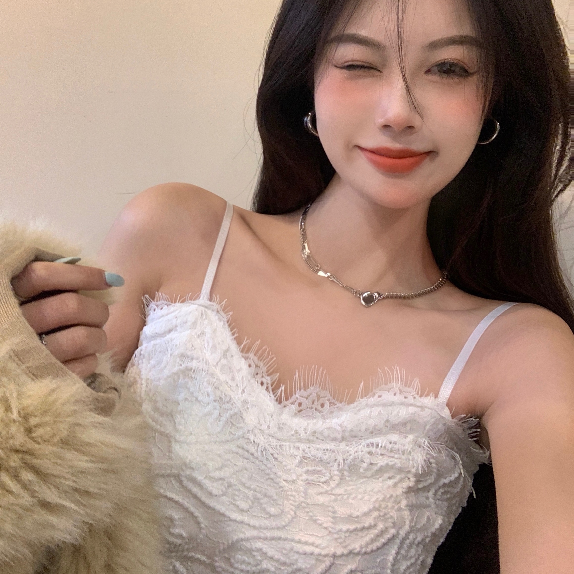 【买一送一优惠装】黛唯梵白色 黑色吊带背心女内文胸搭秋冬外穿2022年新款蕾丝修身显瘦抹胸短款内衣七夕情人节