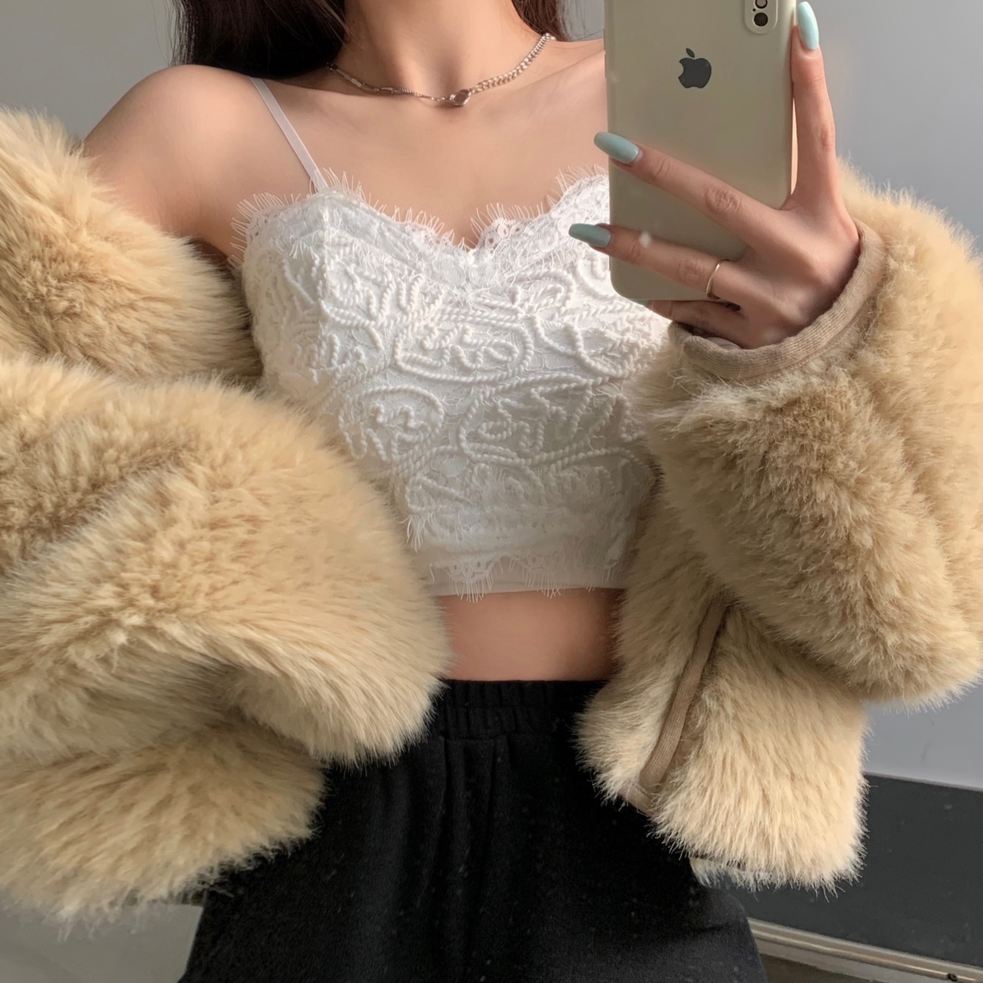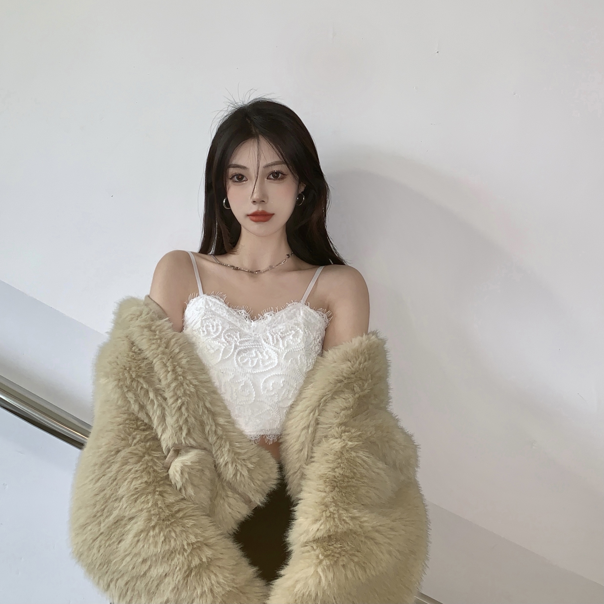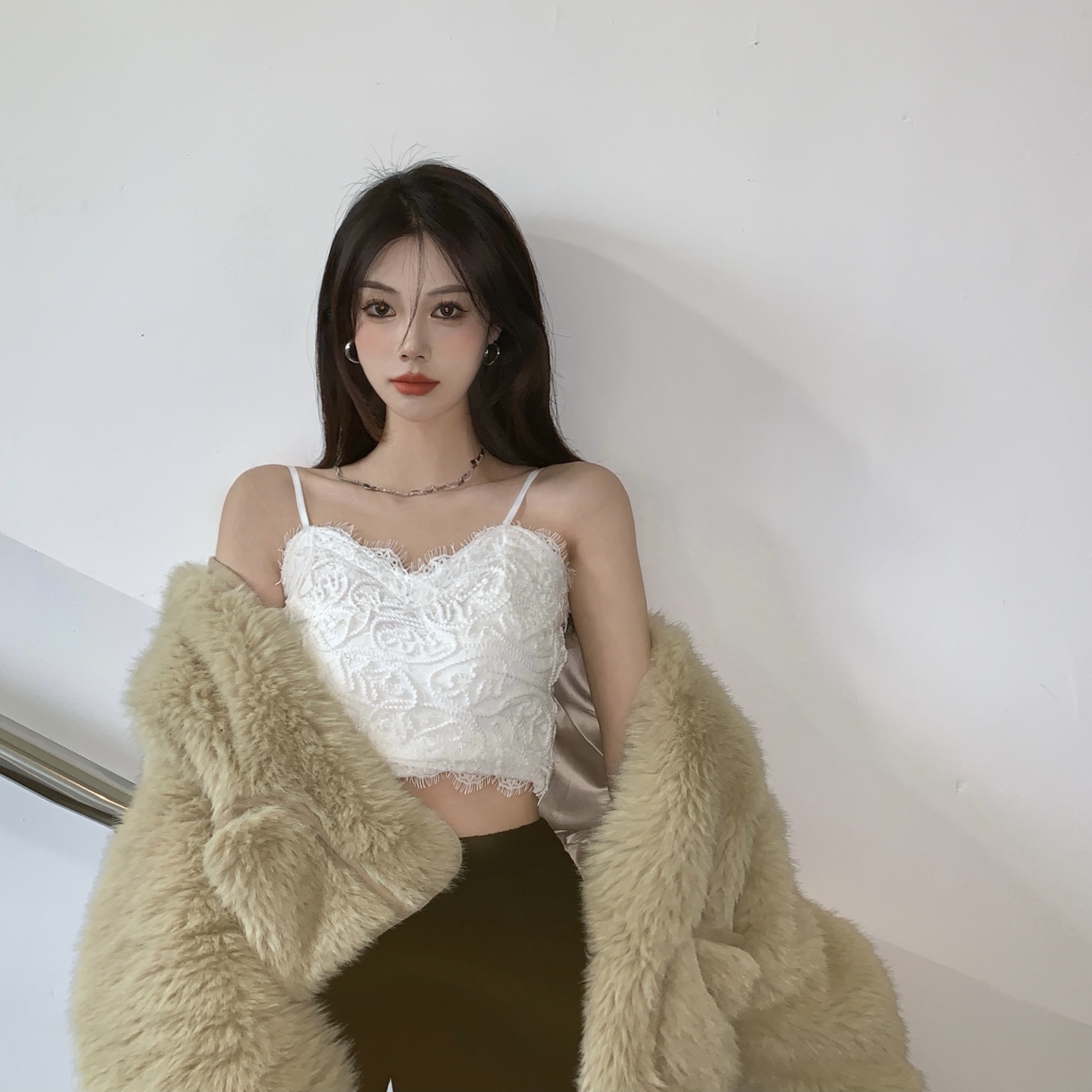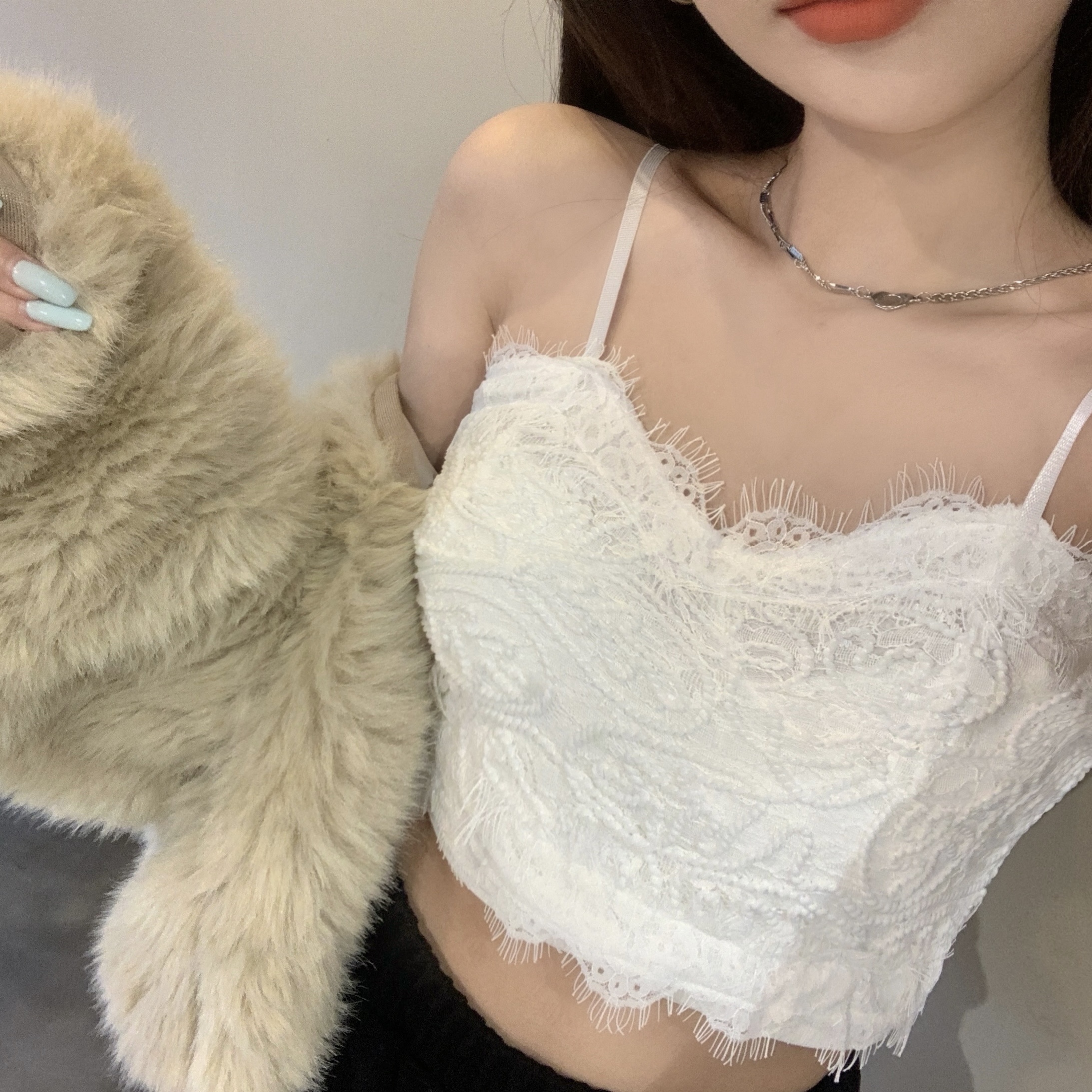 【买一送一优惠装】黛唯梵白色 黑色吊带背心女内文胸搭秋冬外穿2022年新款蕾丝修身显瘦抹胸短款内衣七夕情人节