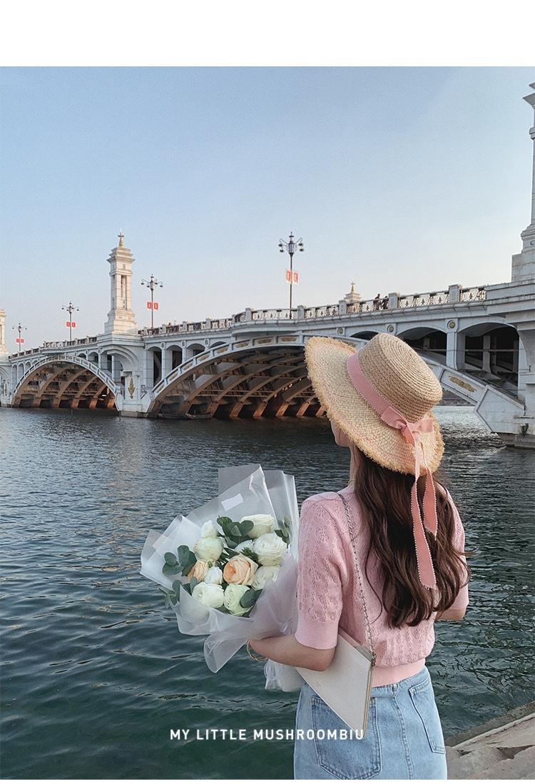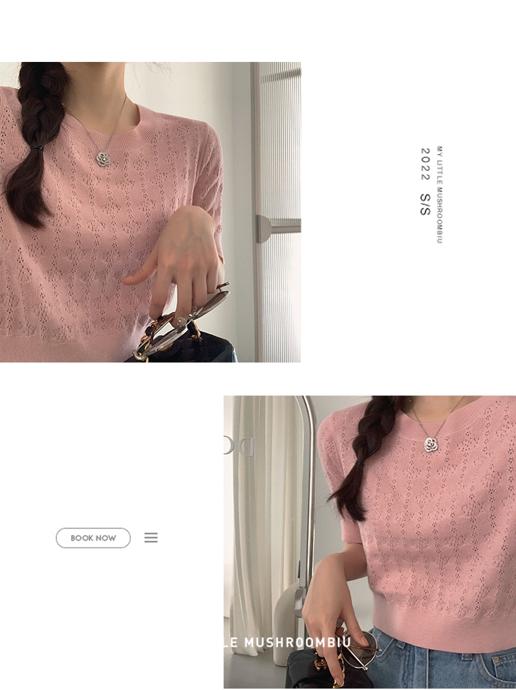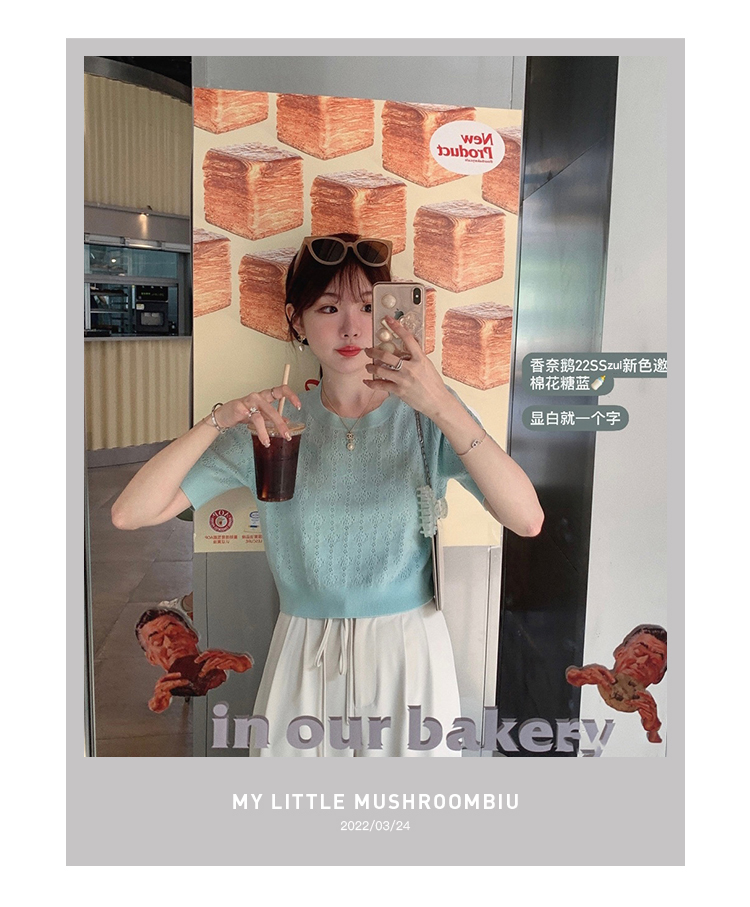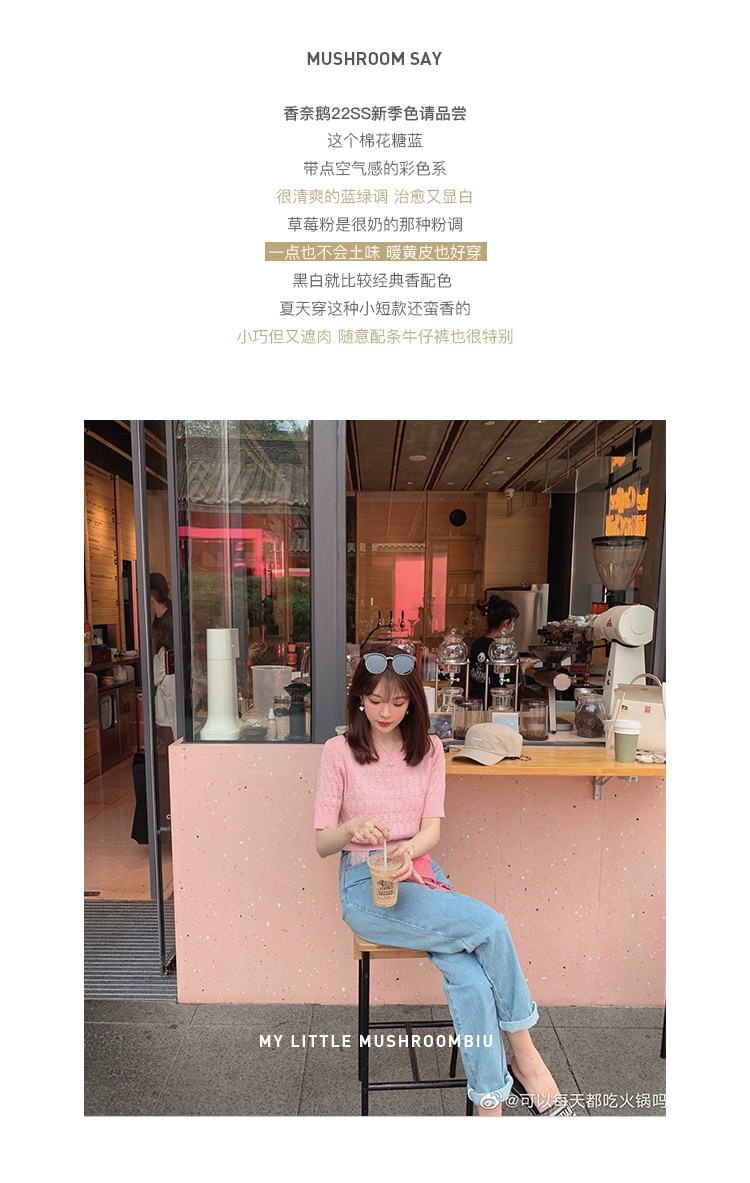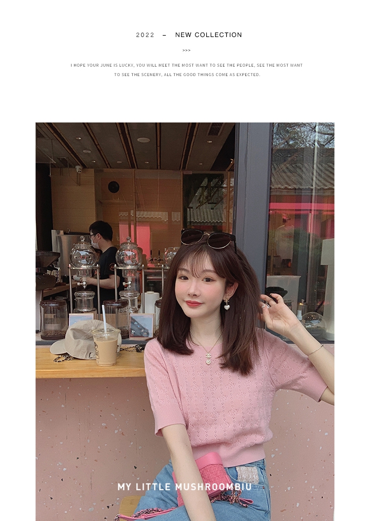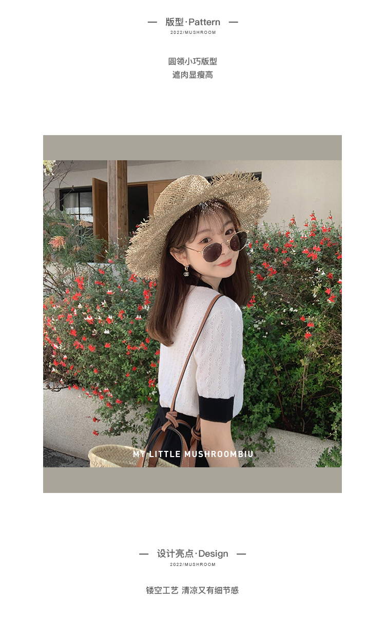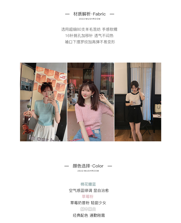 金蘑菇菇【新季茶花】镂空超细羊毛早春法式小众别致针织短上衣