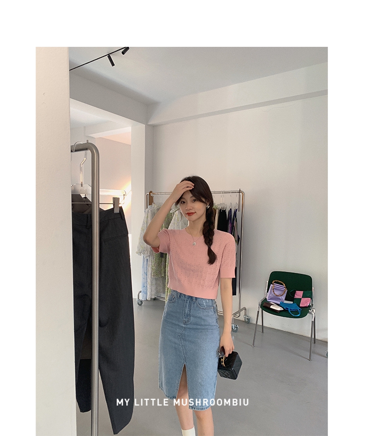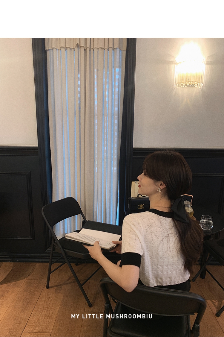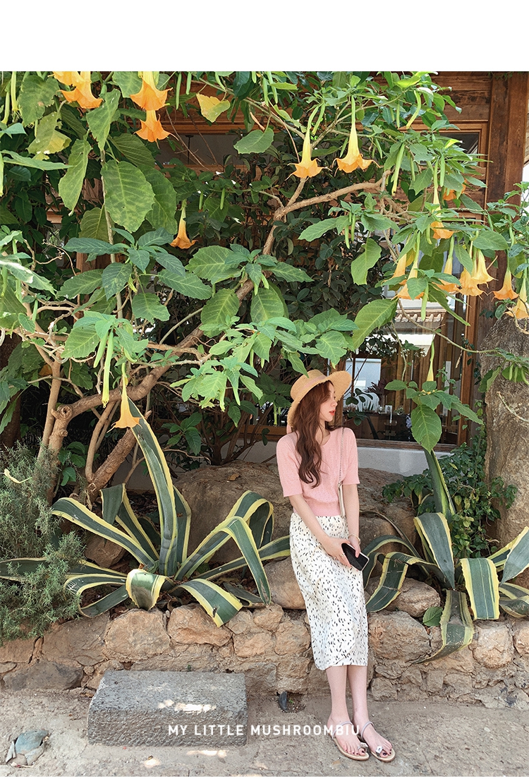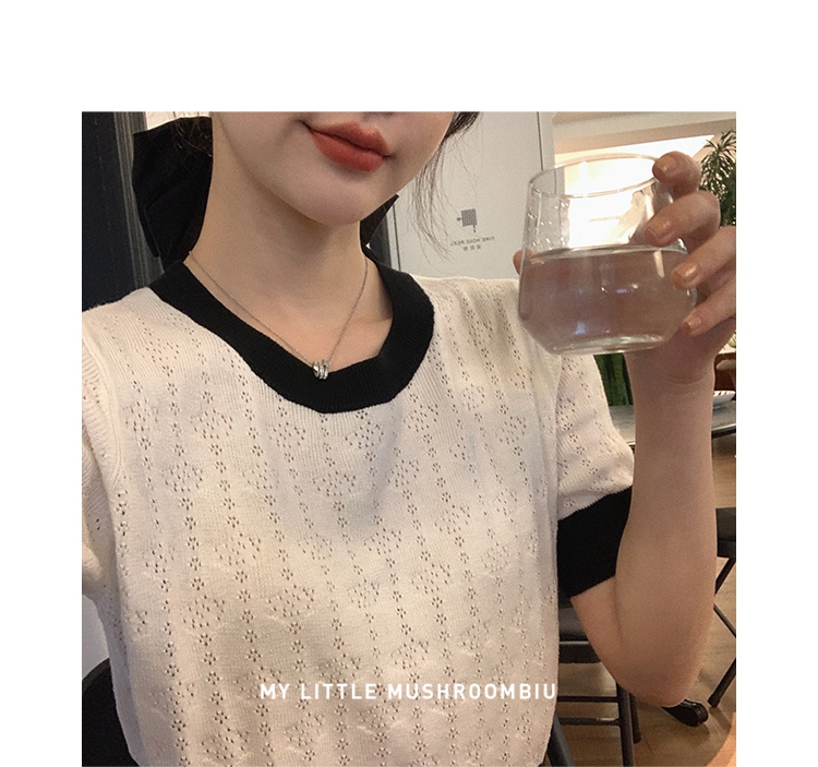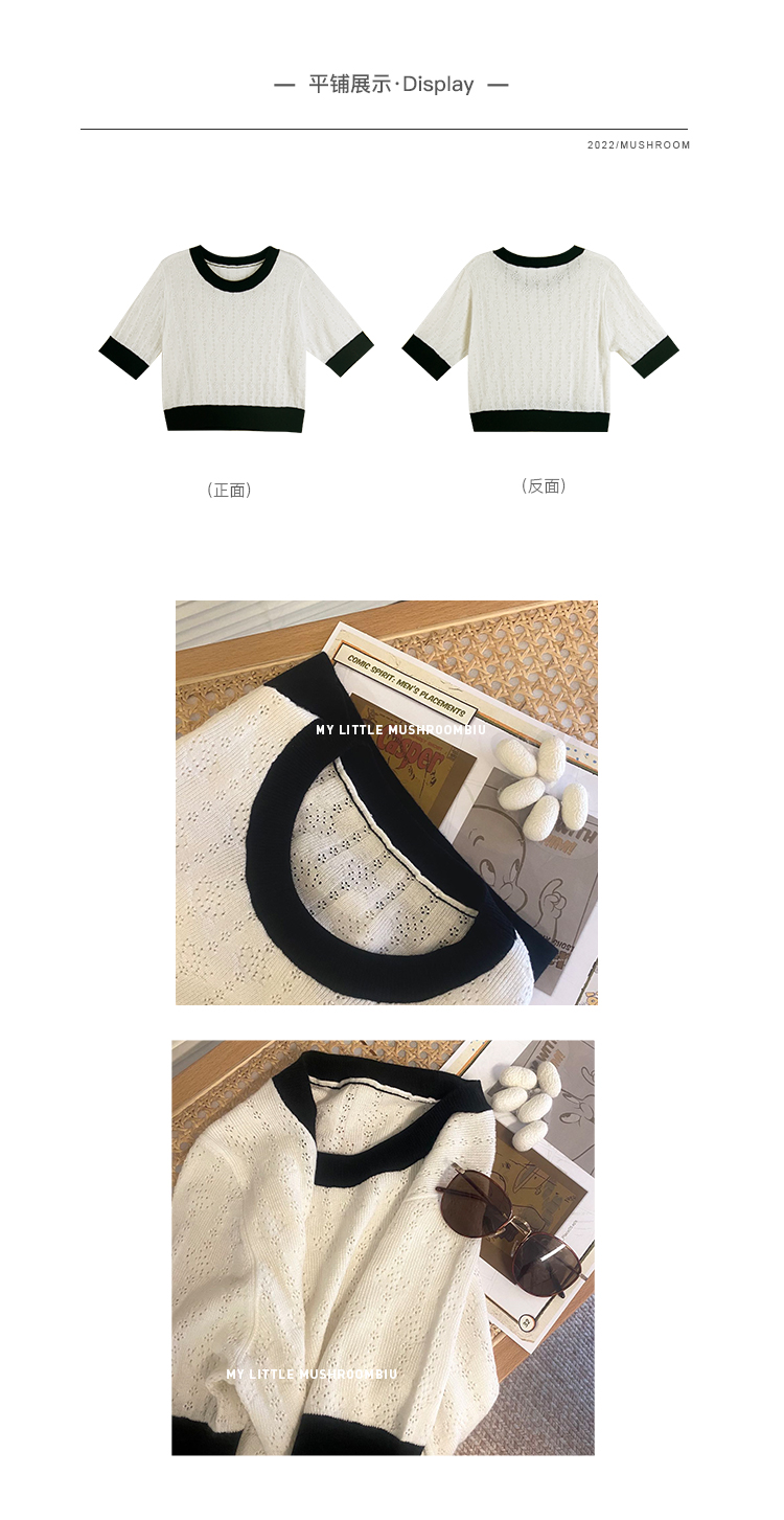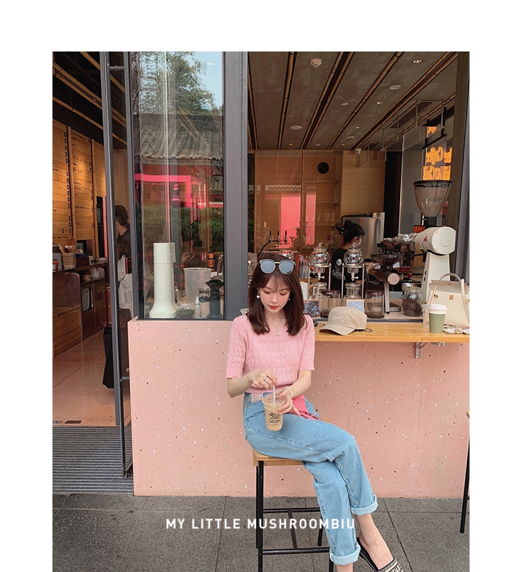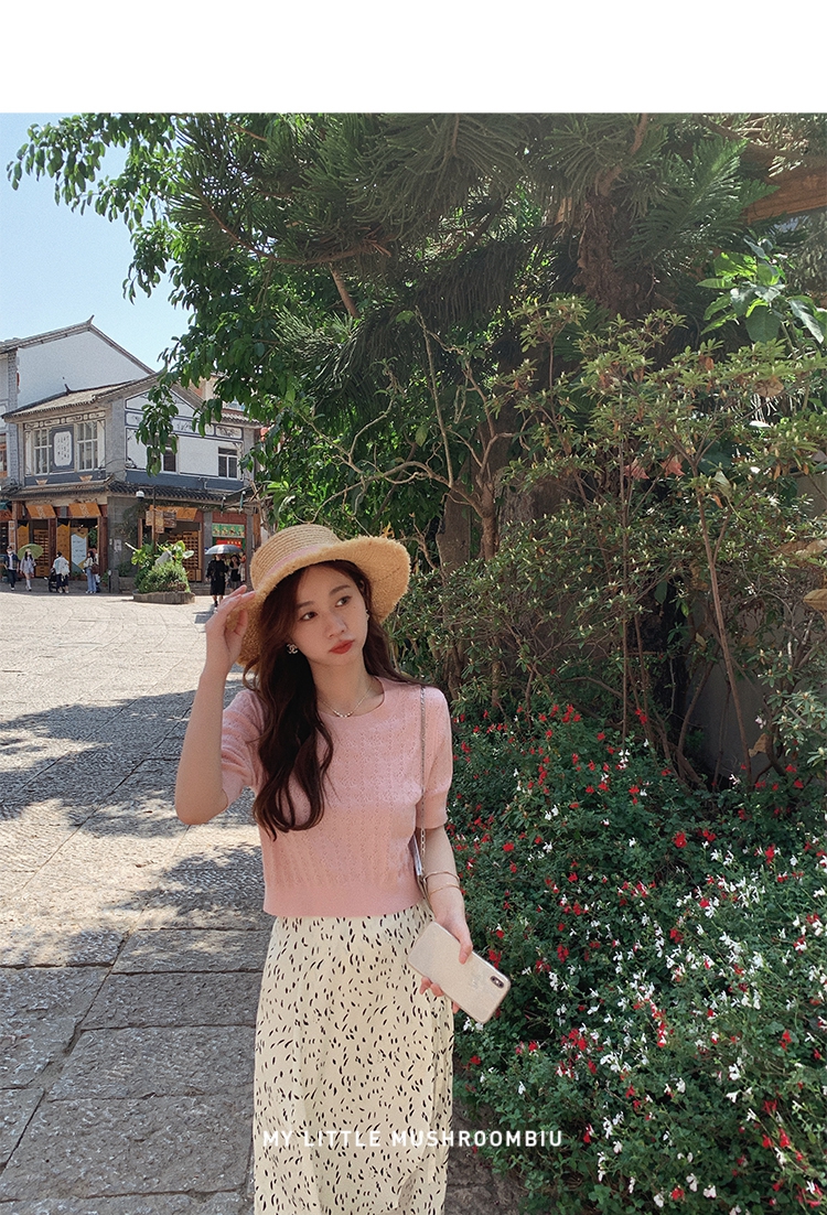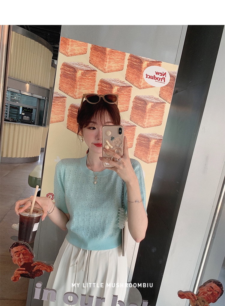 金蘑菇菇【新季茶花】镂空超细羊毛早春法式小众别致针织短上衣