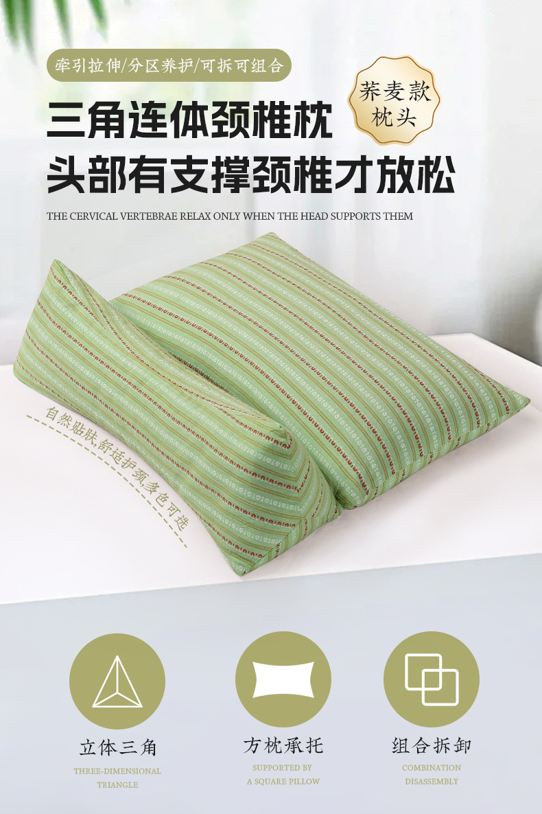 【颈椎救星】三角连体荞麦枕 全方位支撑头颈 一夜好眠 天然荞麦壳填充 透气舒适,健康睡眠从此开启