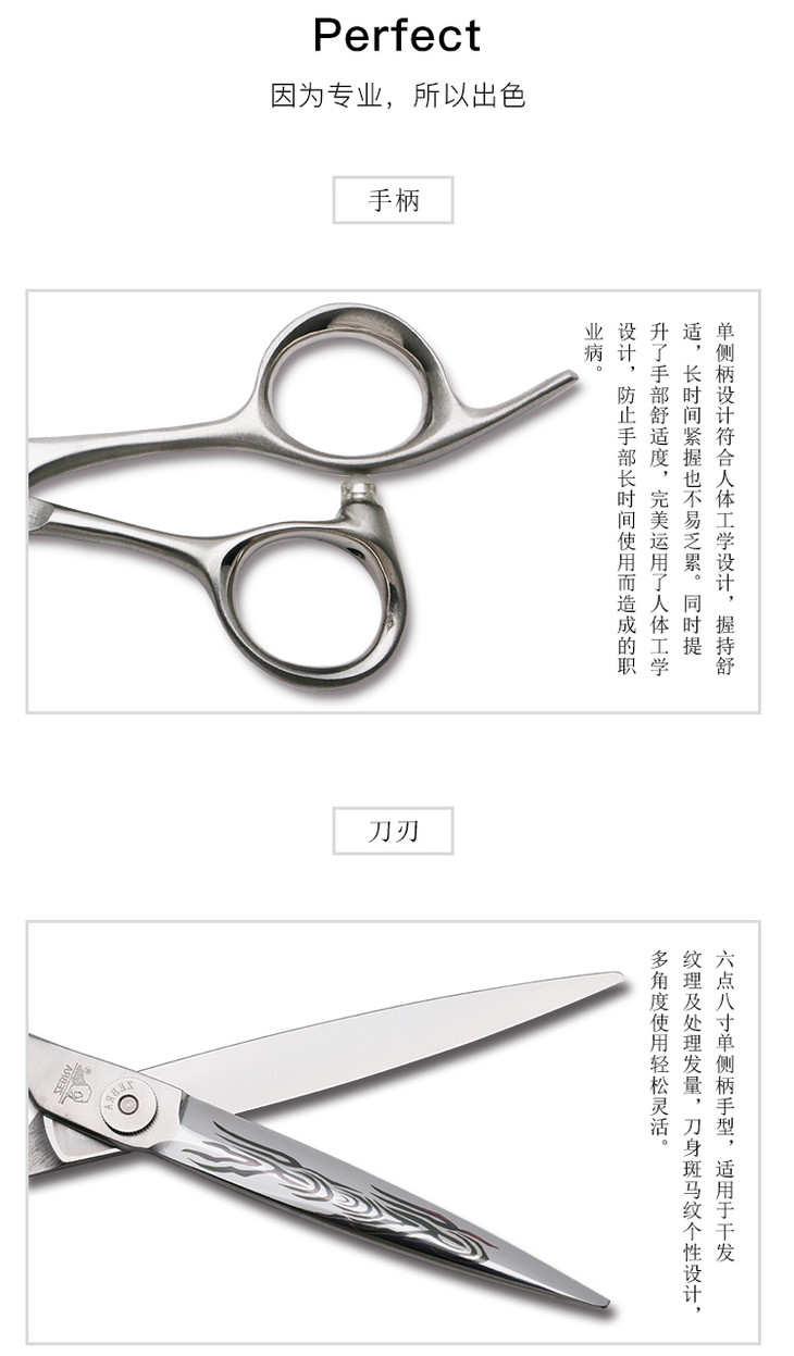 ZEBRA斑马 剪刀 E68048 锋利/修饰剪/ 大切口/ 平剪/直剪/大干剪/大滑剪/纹理/单侧柄/6.8寸