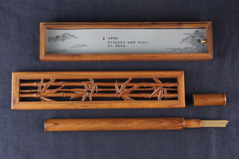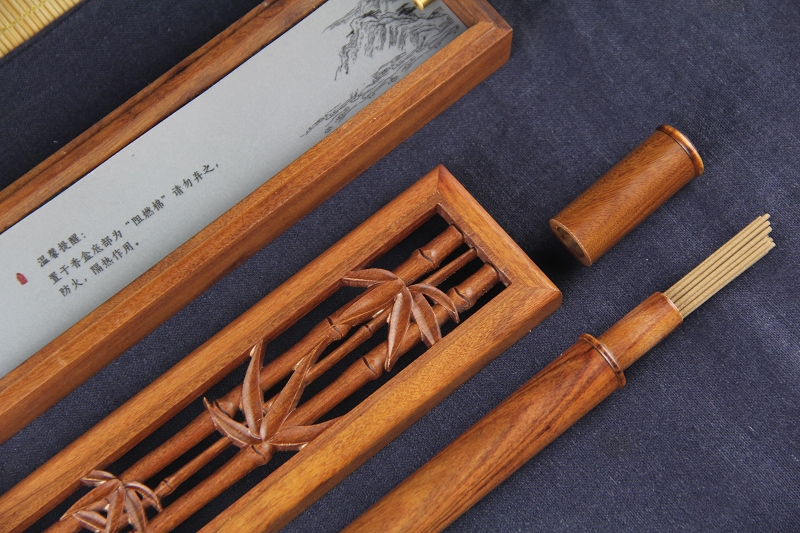 非酸枝实木线香盒 镂空雕刻竹子/荷花 寓意美好