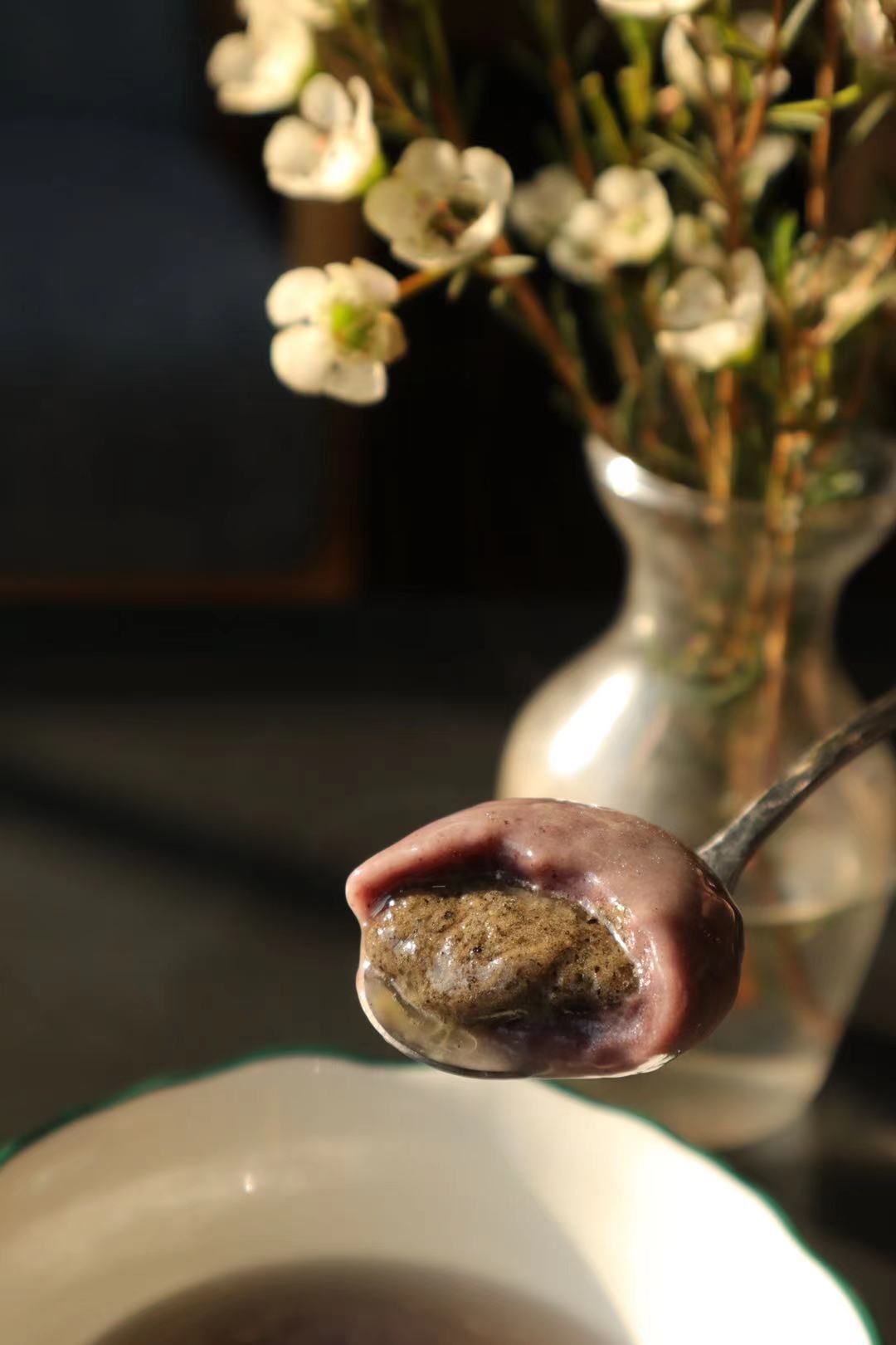 最最常见的黑芝麻汤圆,外皮加入黑香米,更加养生。