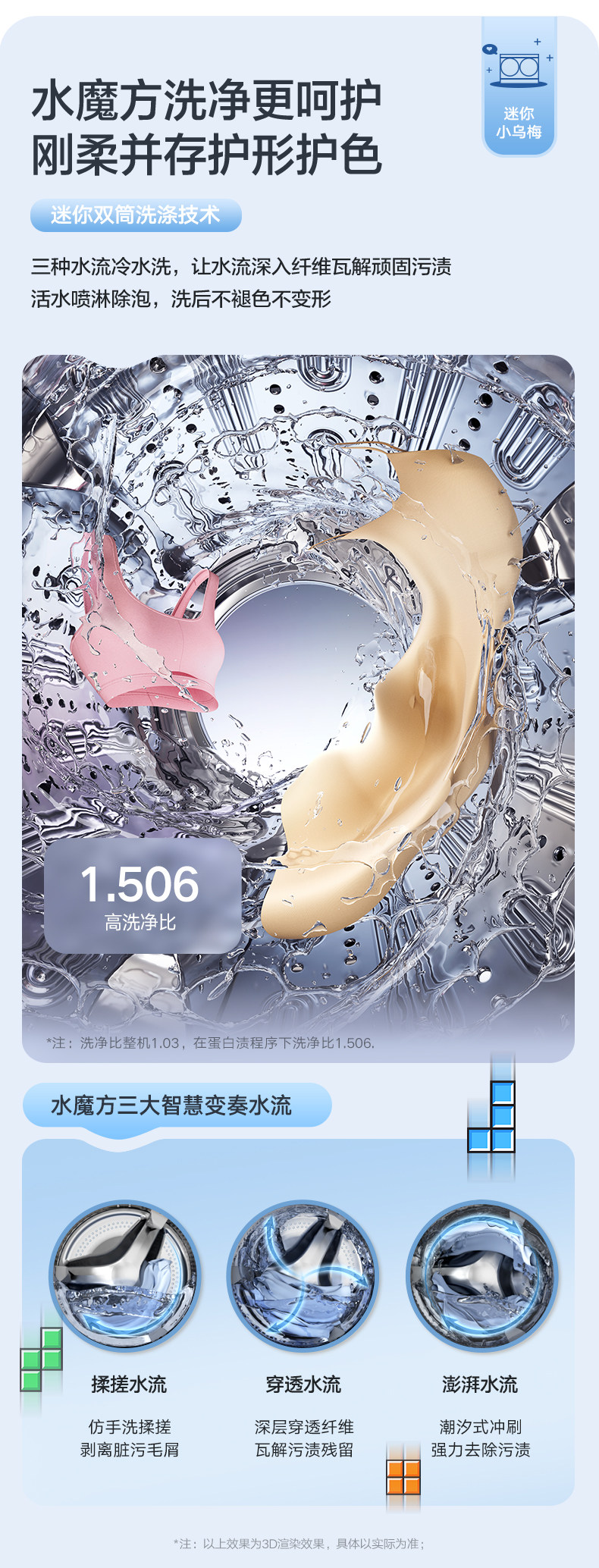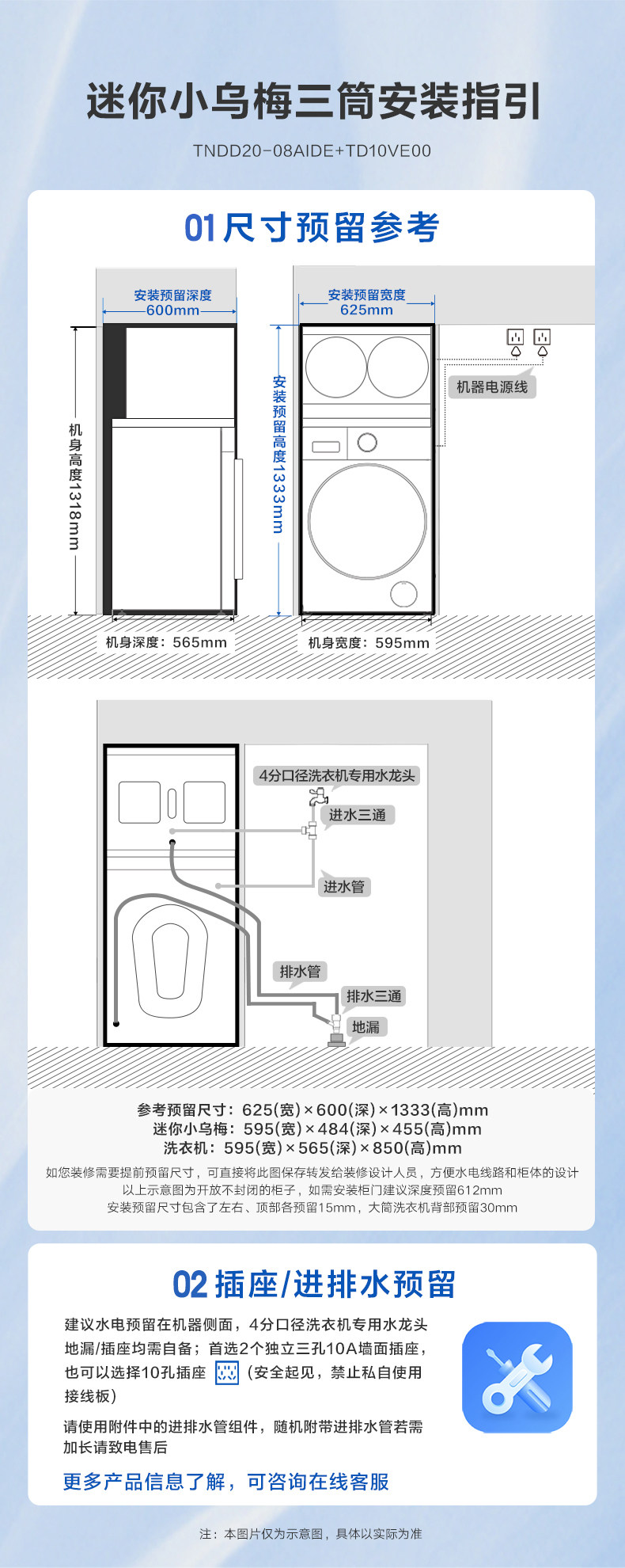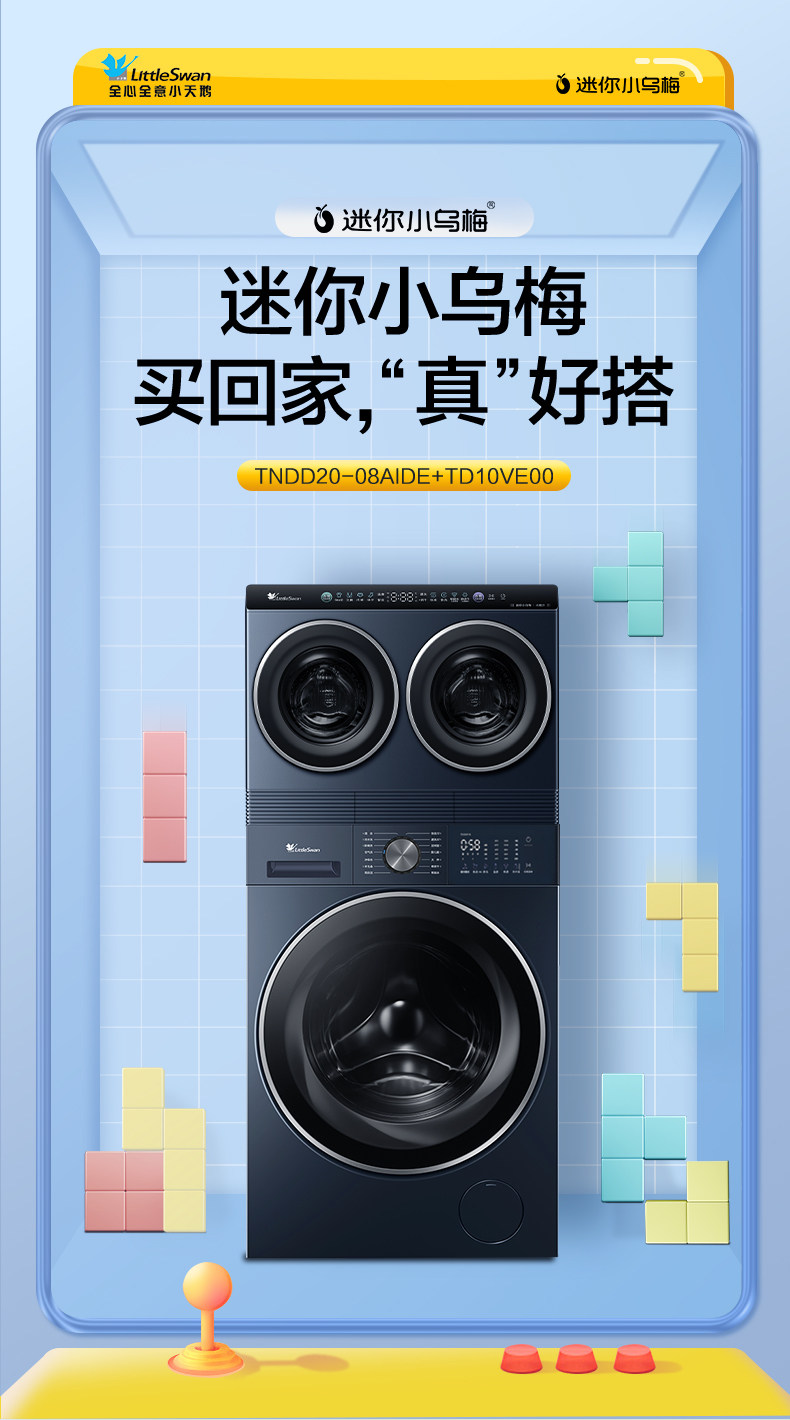 小天鹅迷你小乌梅洗烘三筒分区洗衣机套装TNDD20-08AIDE+TD10VE00