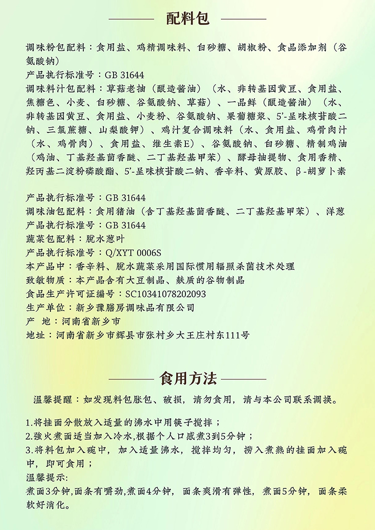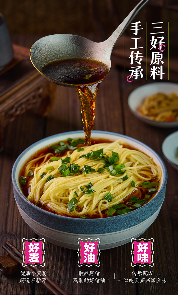 面条选用传统碱水手工工艺,筋道弹滑、久煮不烂。哪怕是速食,也坚持不妥协的口感标准,每一口都吃得出“认真”。