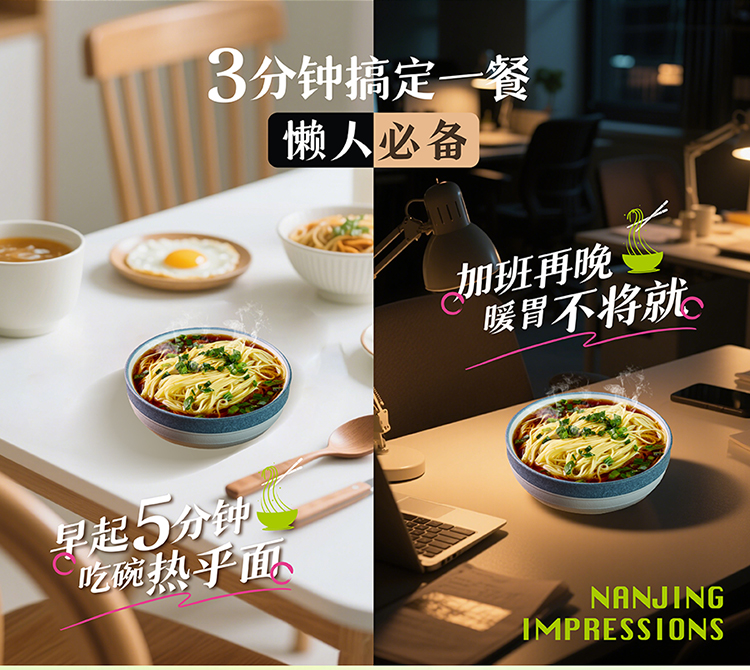 独立包装,开水煮3分钟即食,办公室午餐、深夜加班、宿舍夜宵都适配。无需厨房,不动锅灶,3分钟吃上这碗清淡不寡的江南温柔。