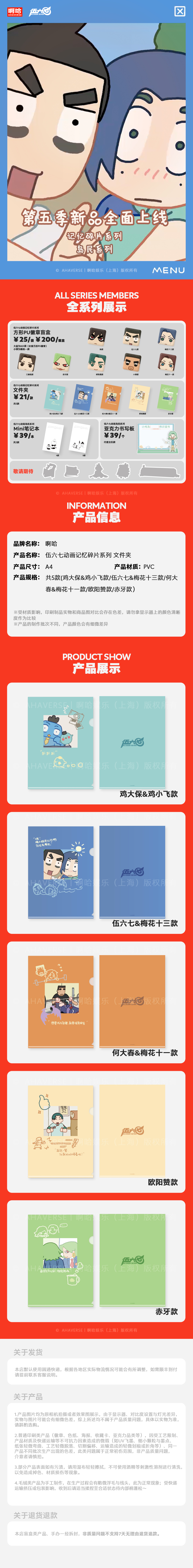 伍六七动画 官方周边 记忆碎片系列 文件夹