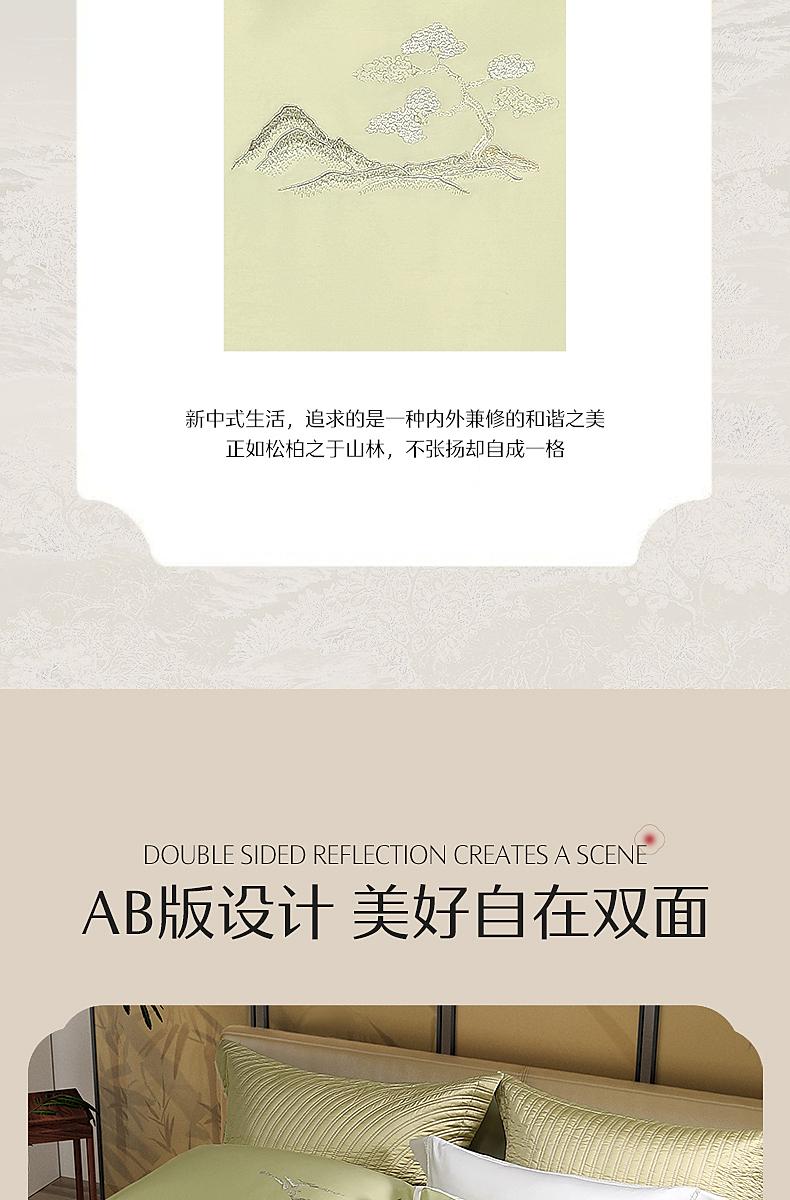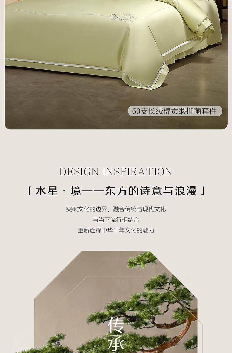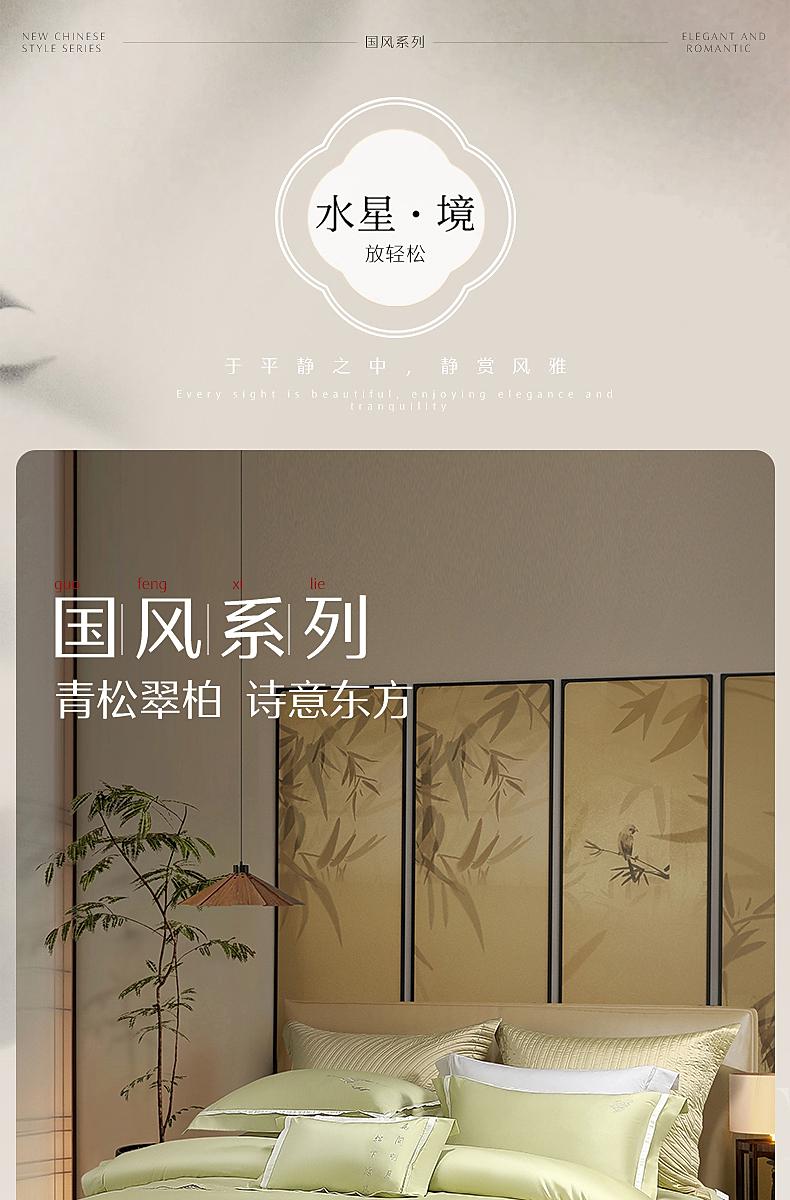水星家纺国风系列60支长绒棉贡缎抑菌四件套纯棉亲肤透气套件严选