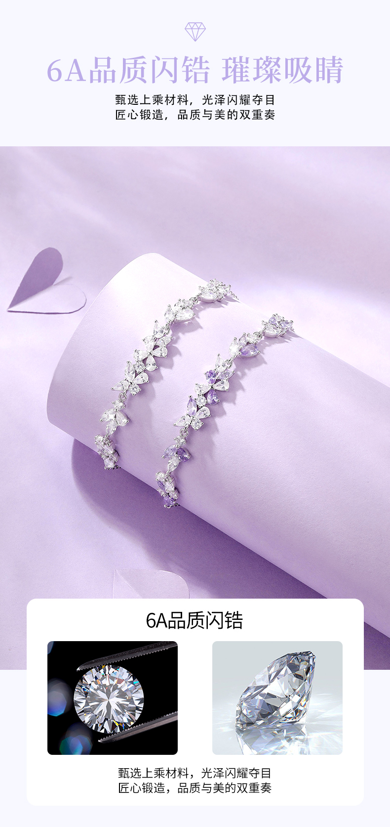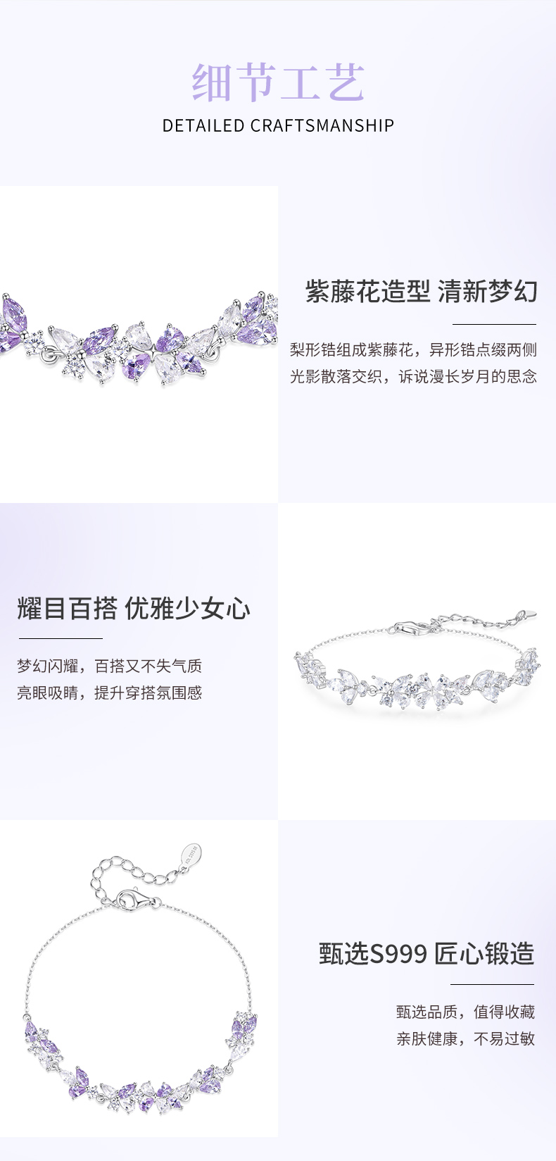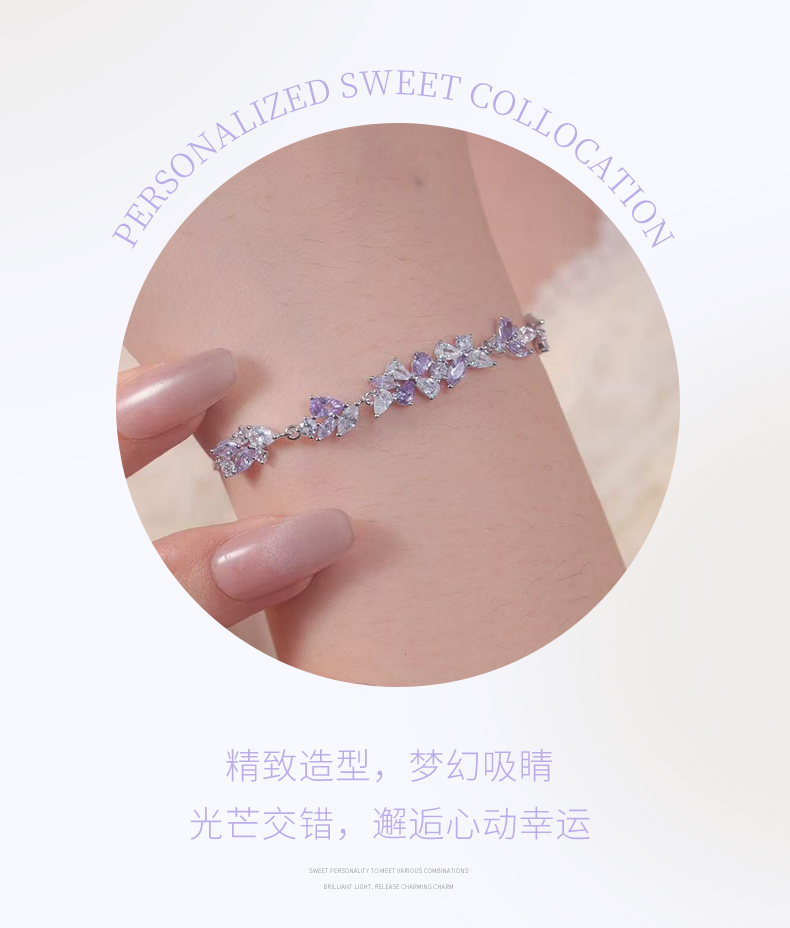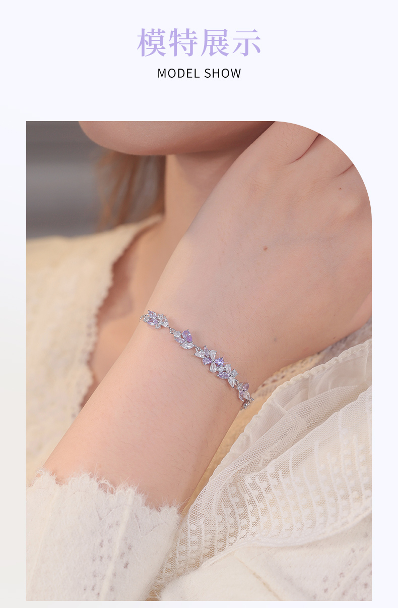 卡蒂罗KADER 紫藤花开手链 999足银/925银 满镶闪锆微笑花环在逃公主浪漫好运配饰 甜美大气璀璨银河 手链 女款 银色 礼盒款