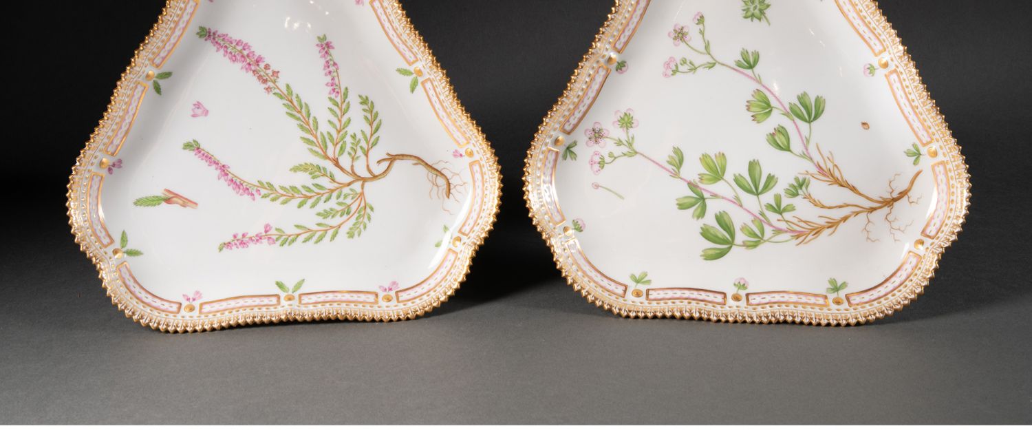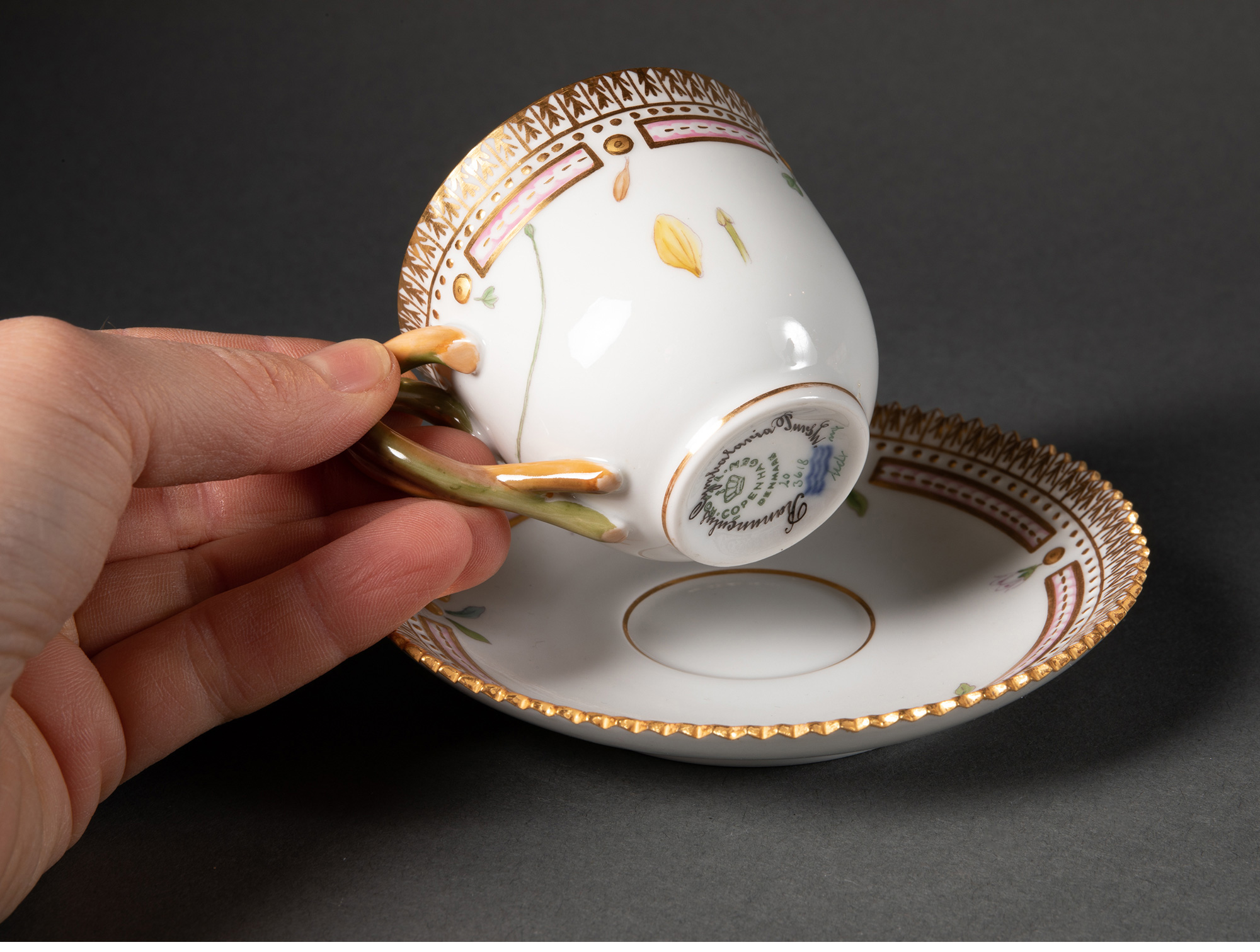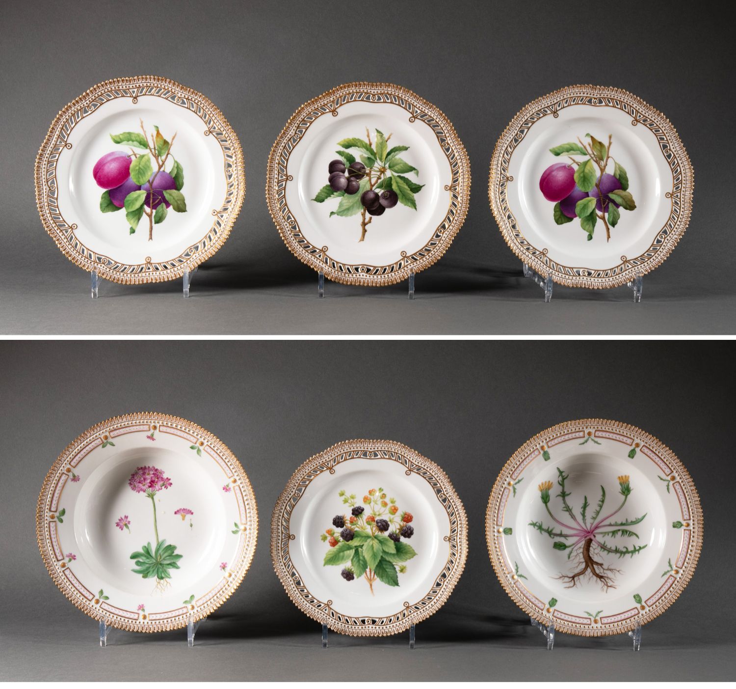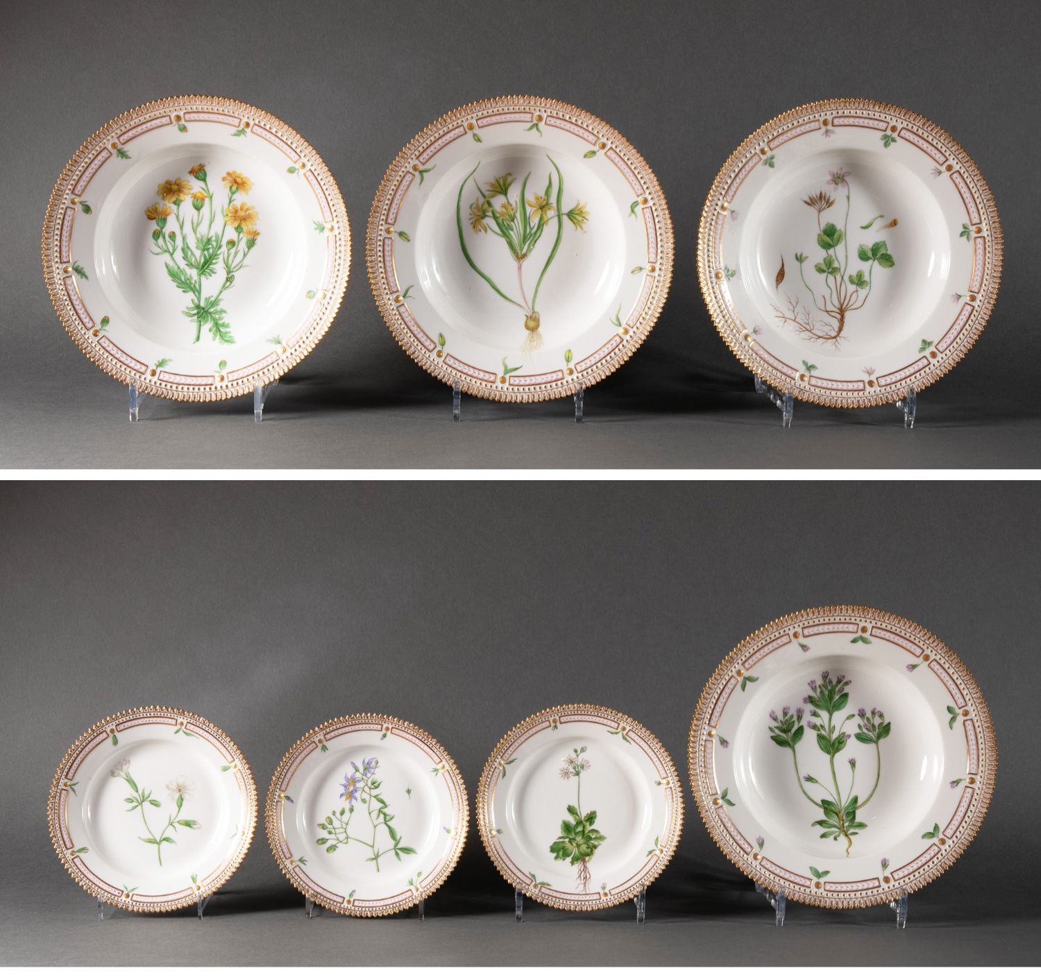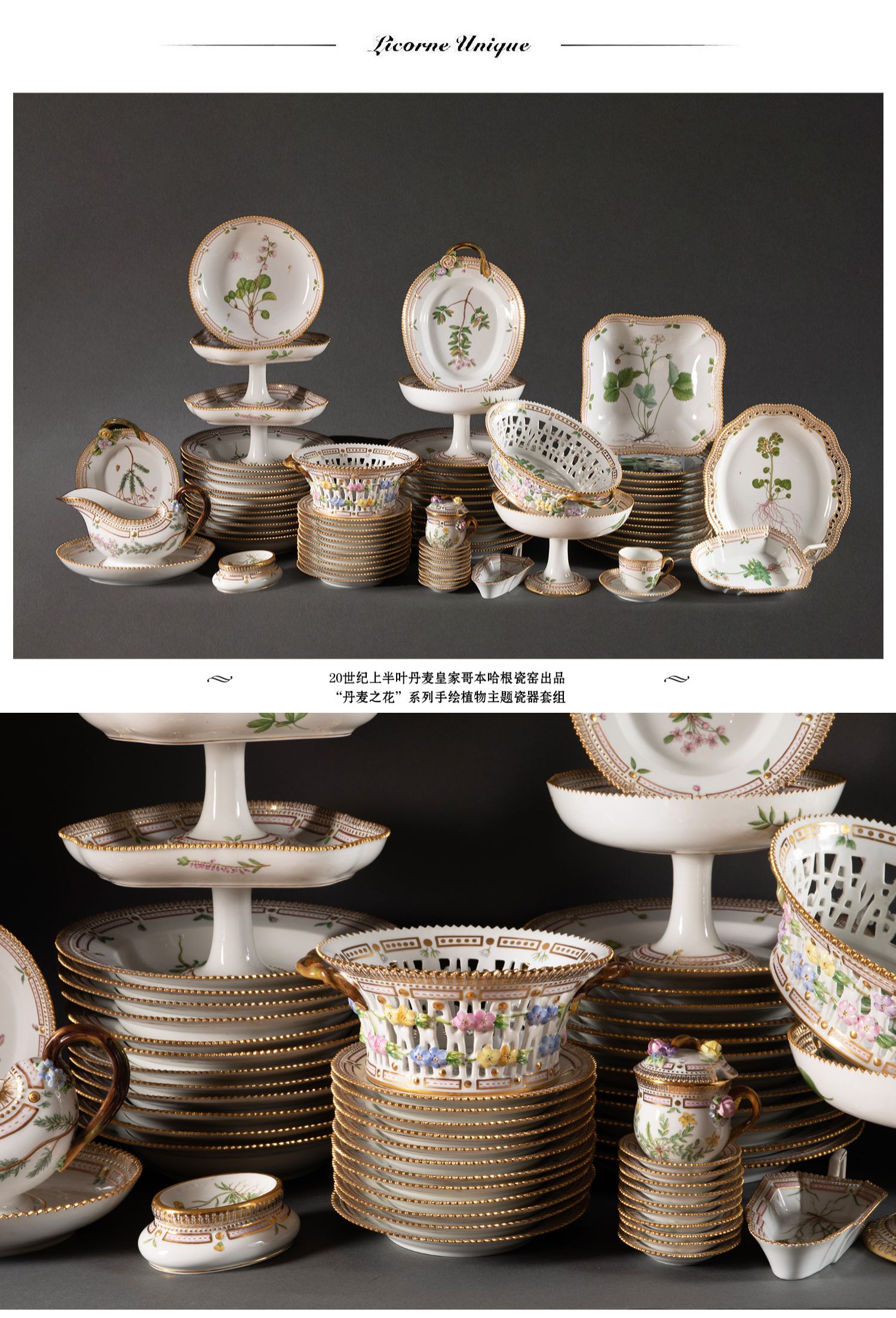独角鹿西洋古董丹麦哥本哈根瓷窑丹麦之花系列手绘植物瓷器套装