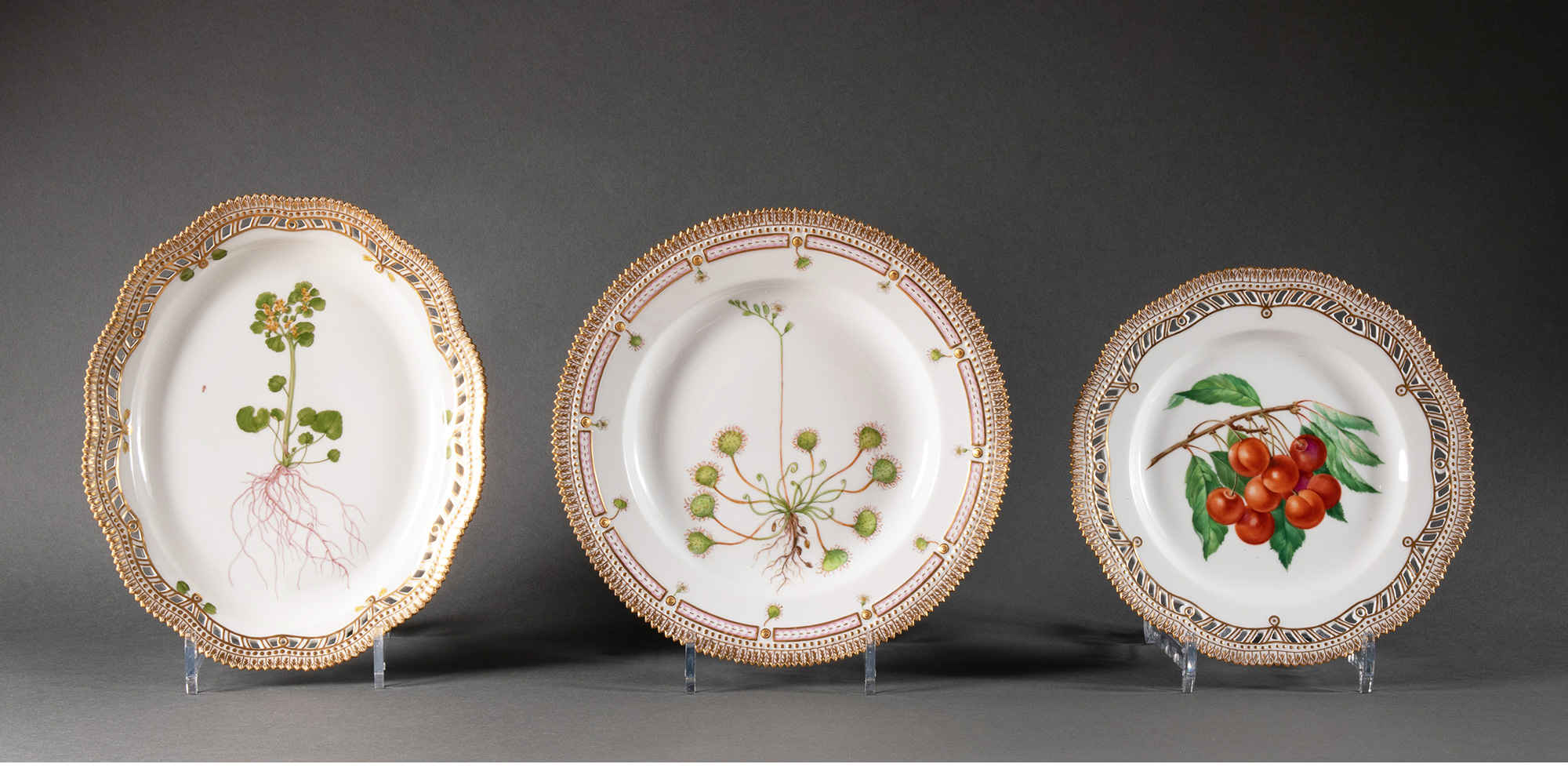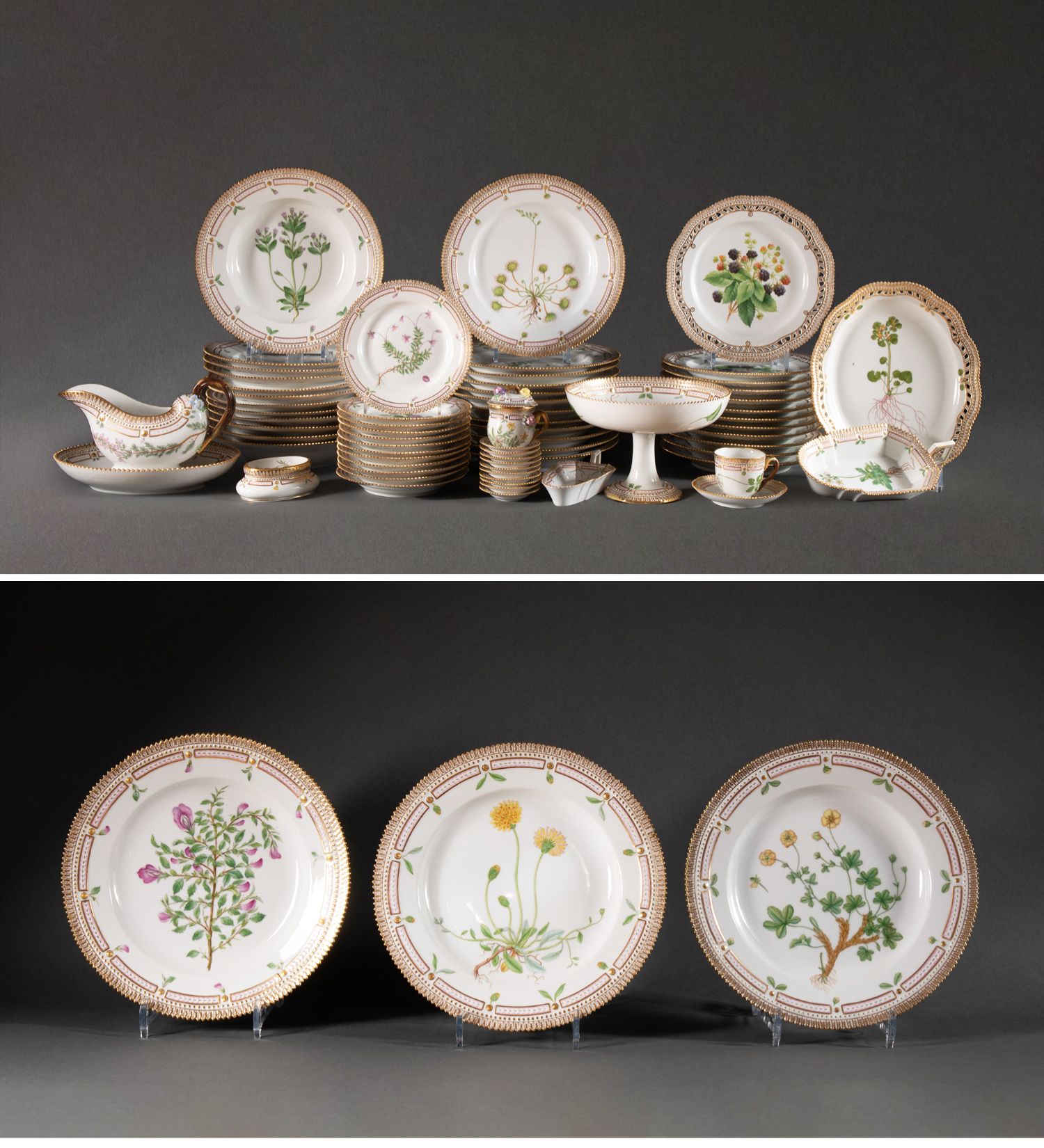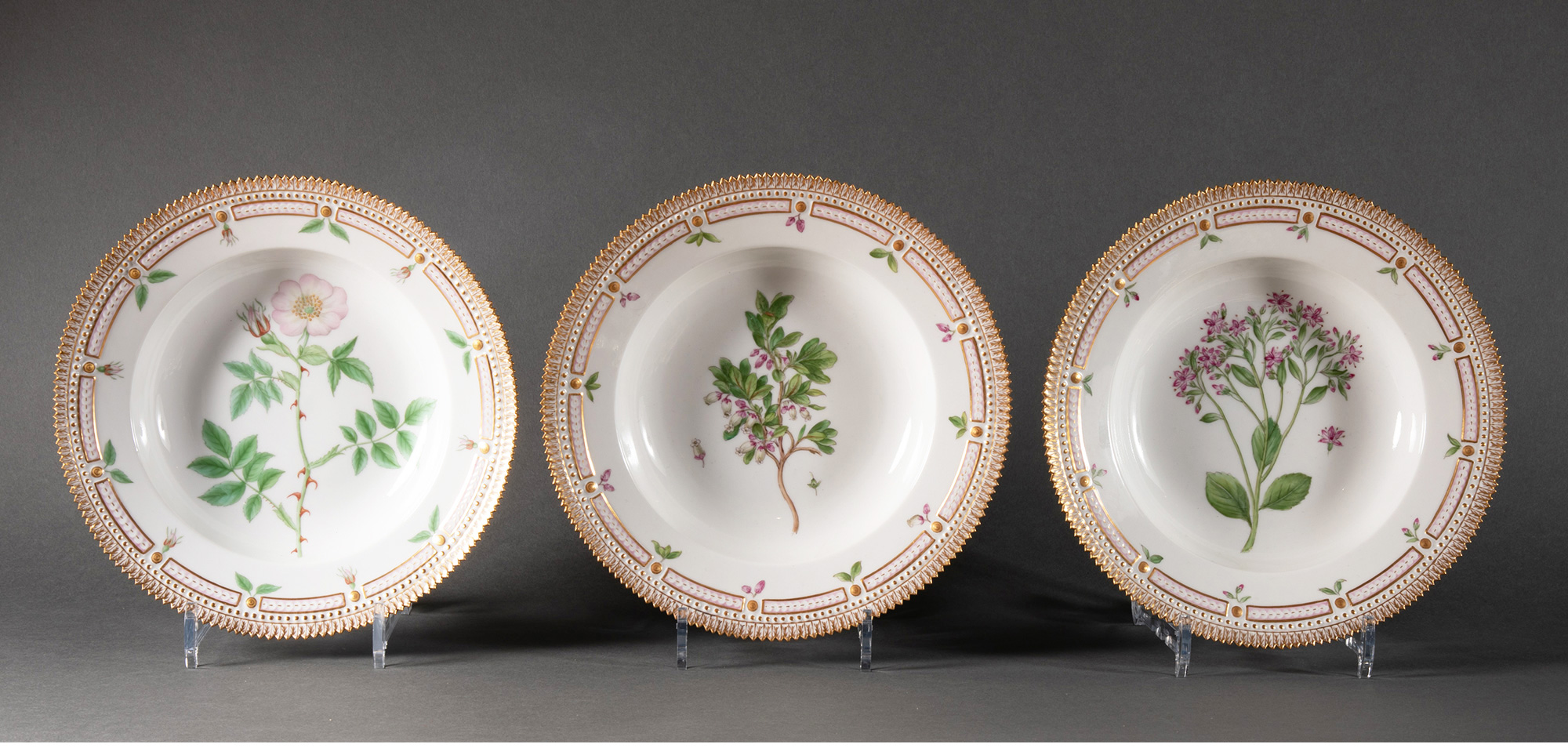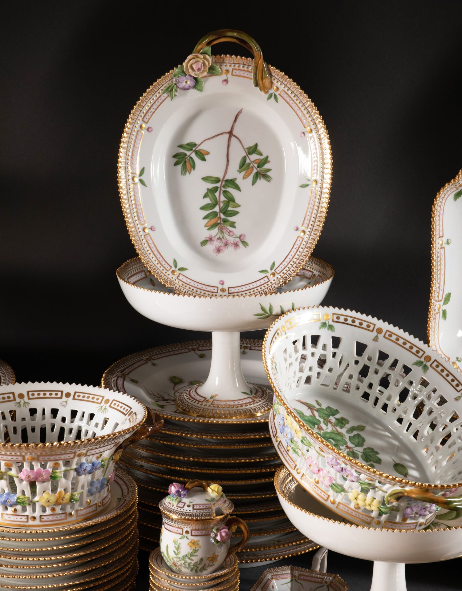 独角鹿西洋古董丹麦哥本哈根瓷窑丹麦之花系列手绘植物瓷器套装