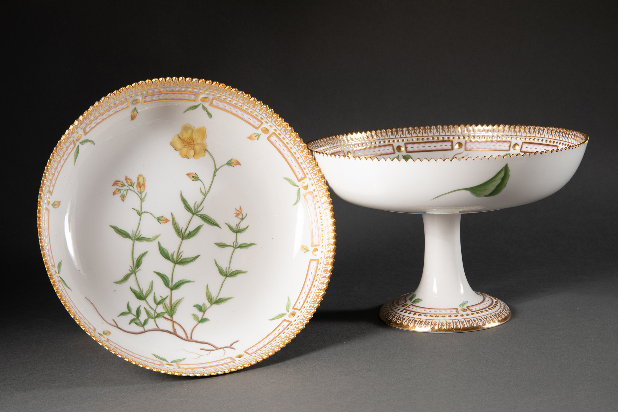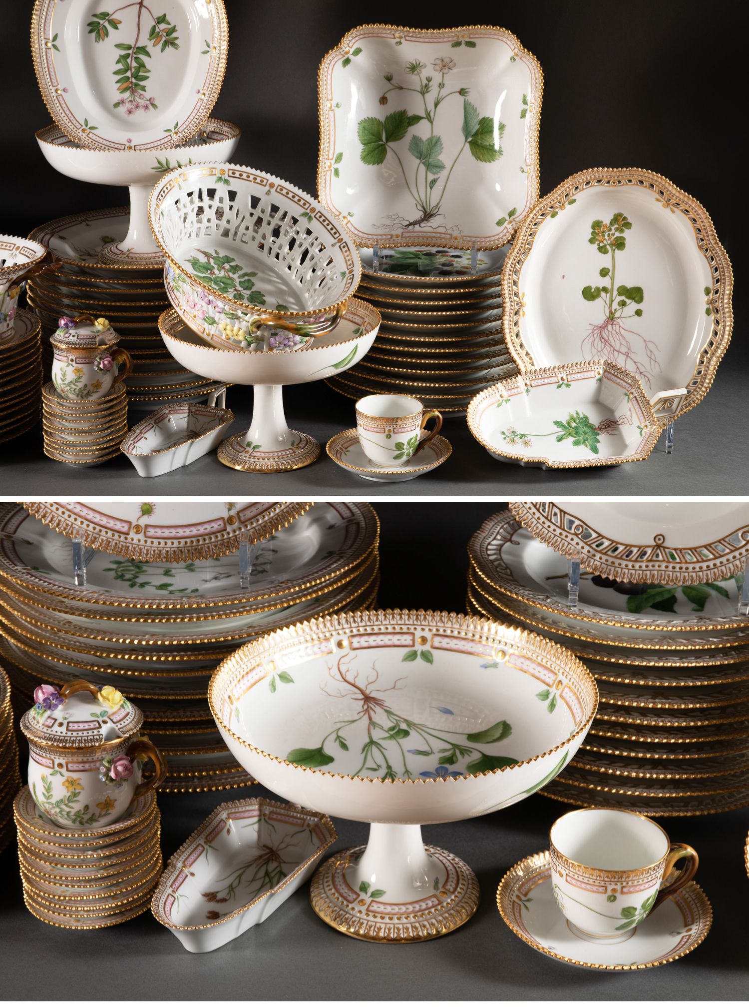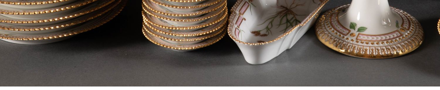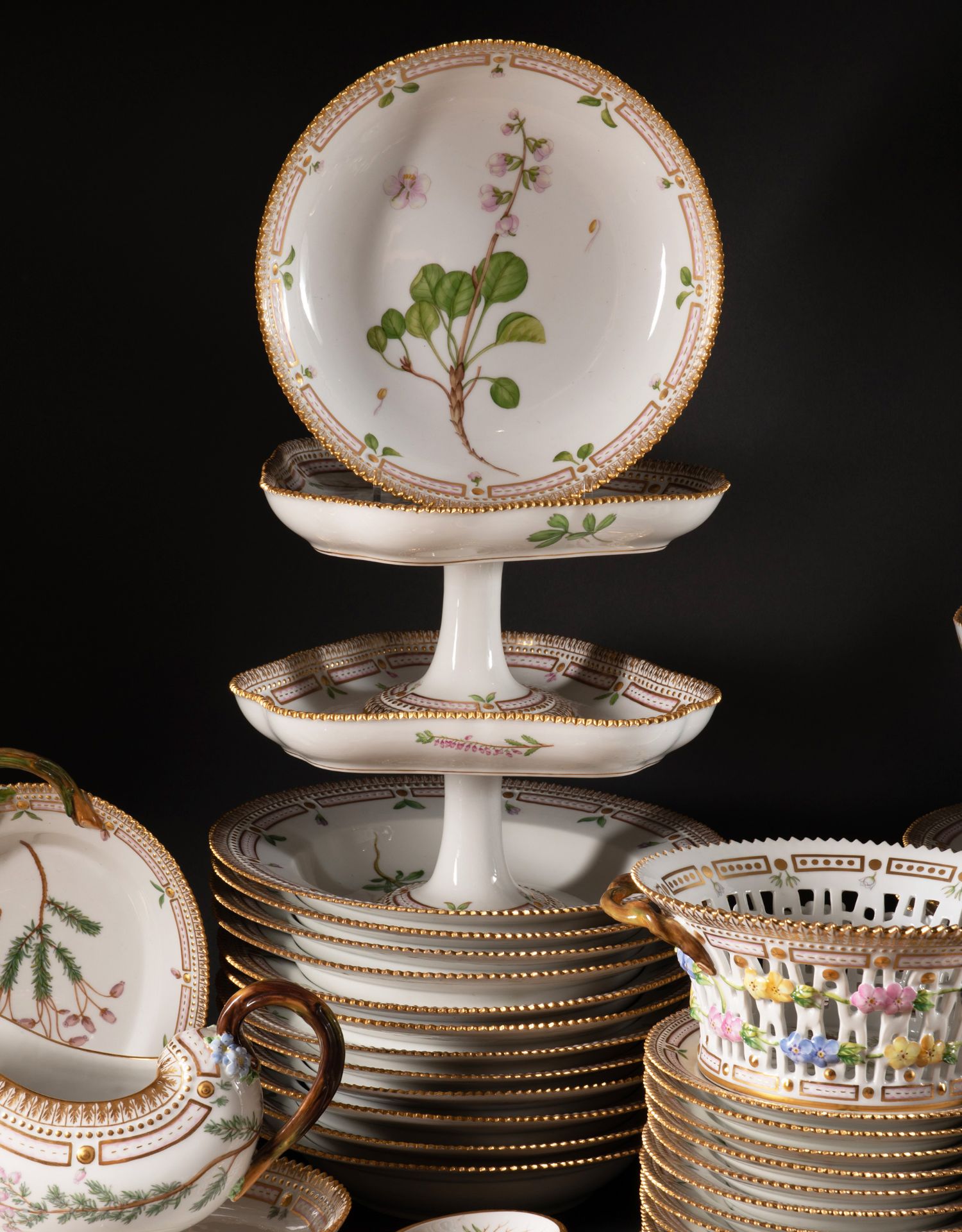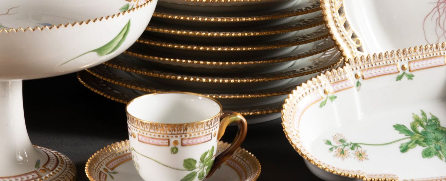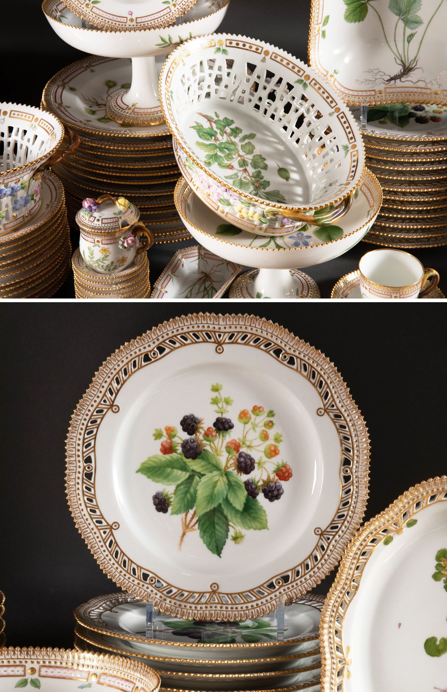 独角鹿西洋古董丹麦哥本哈根瓷窑丹麦之花系列手绘植物瓷器套装