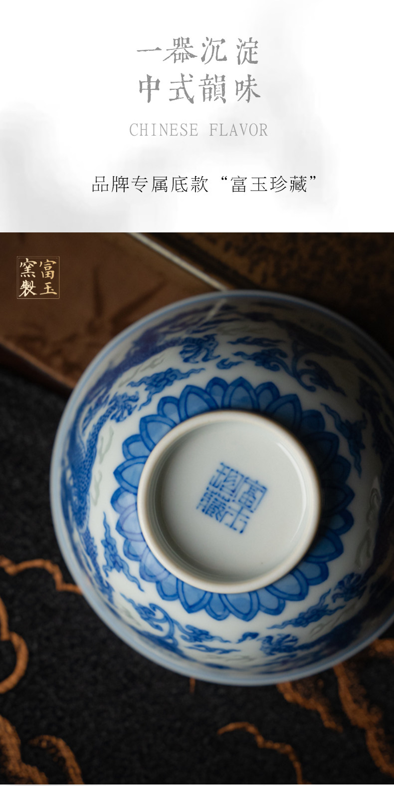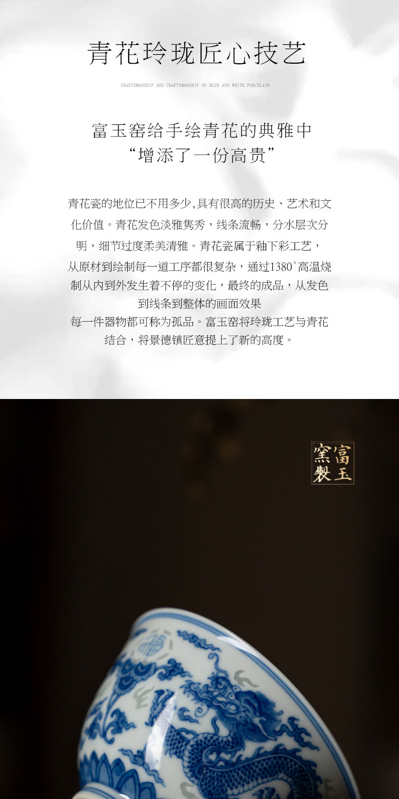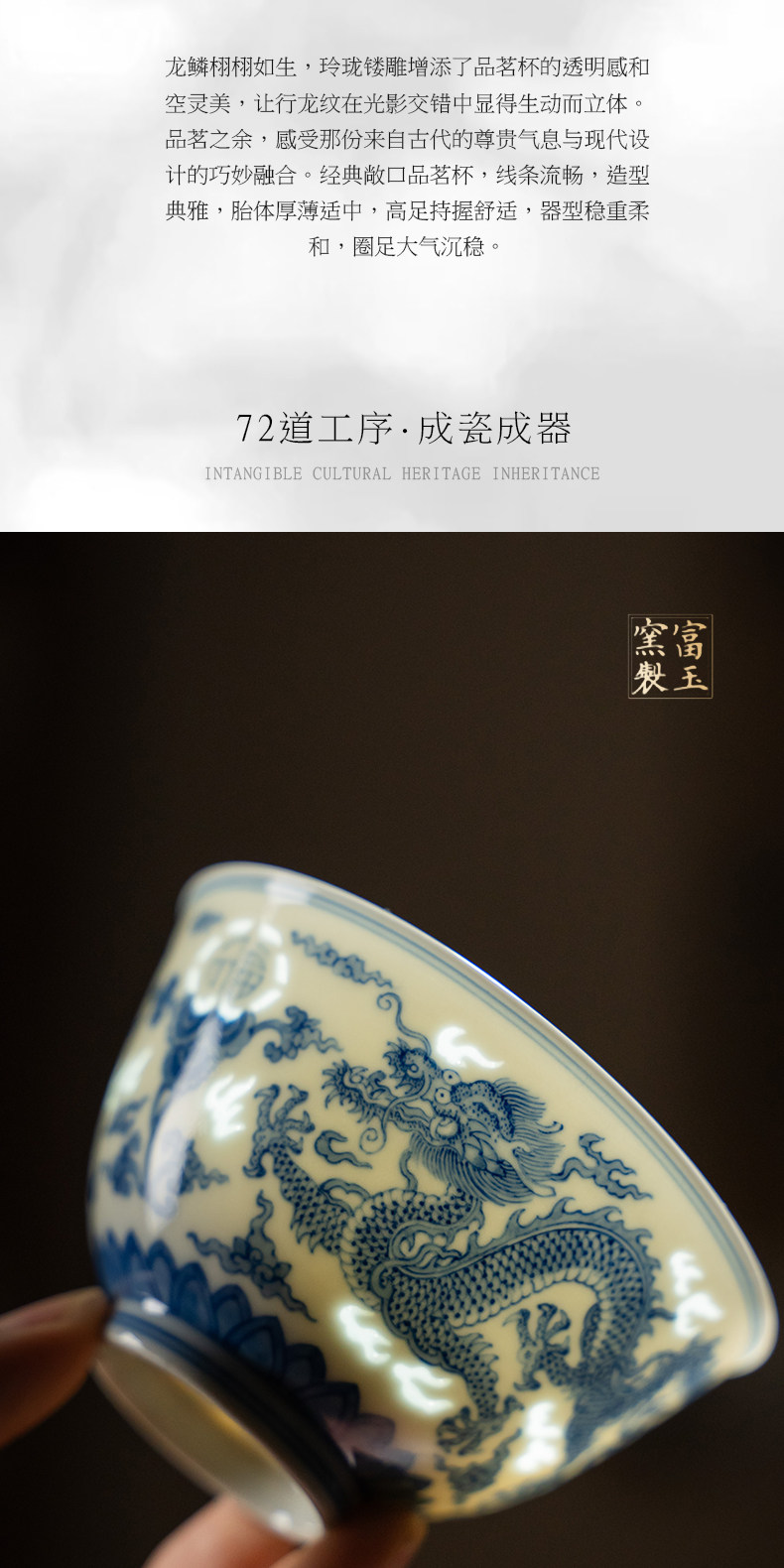 富玉窑 景德镇茶杯龙纹杯中式青花玲珑盖碗主人杯单杯送礼品