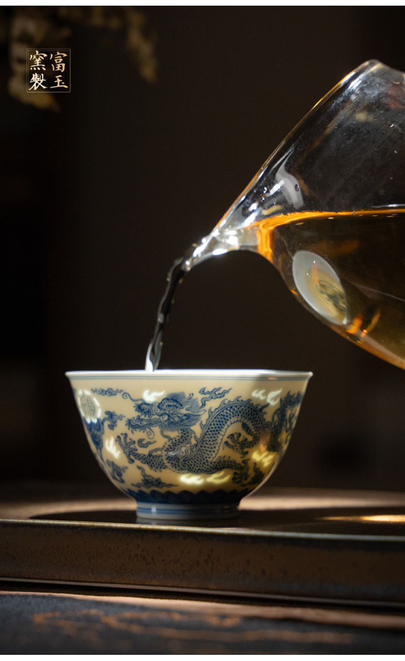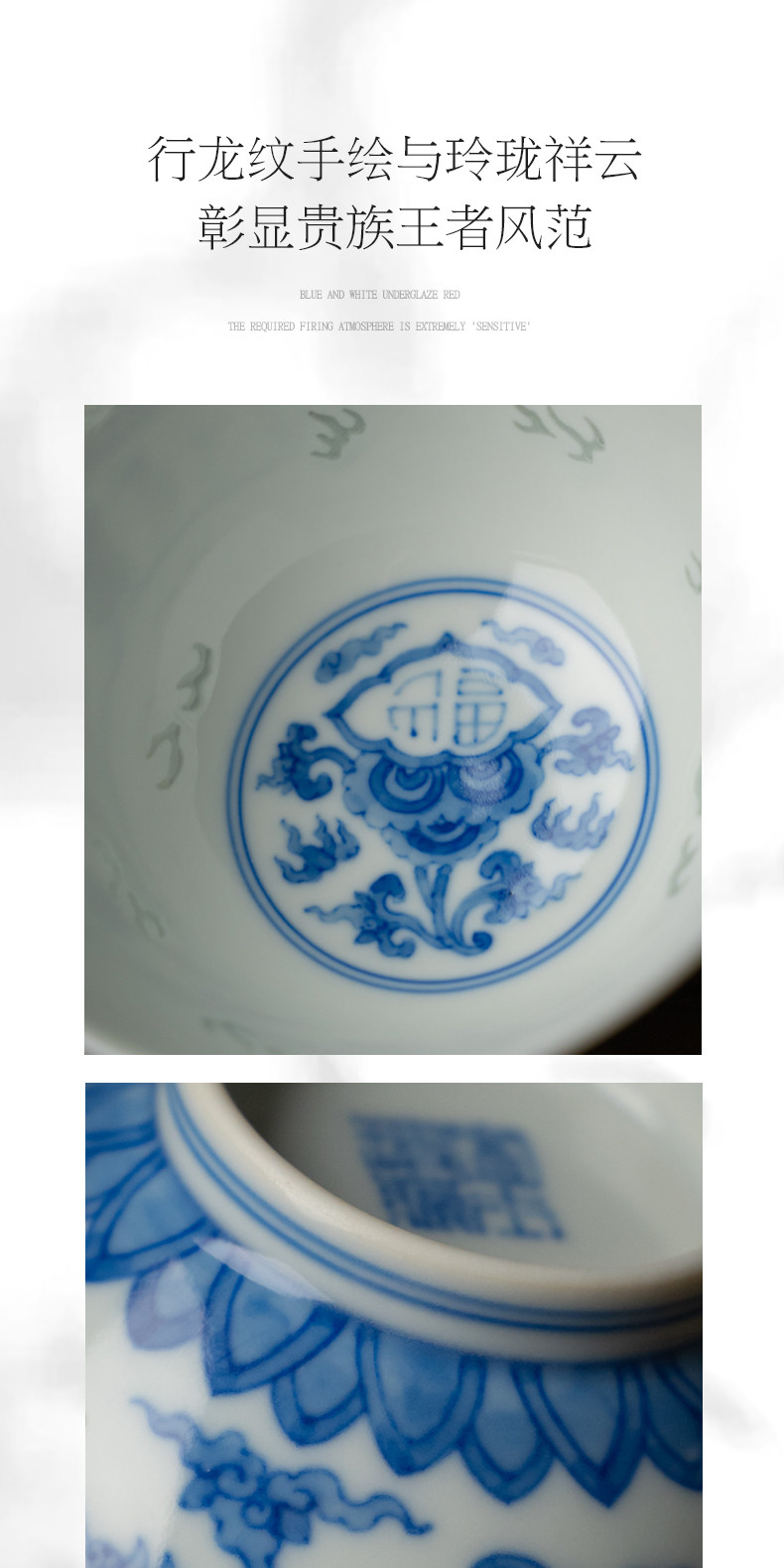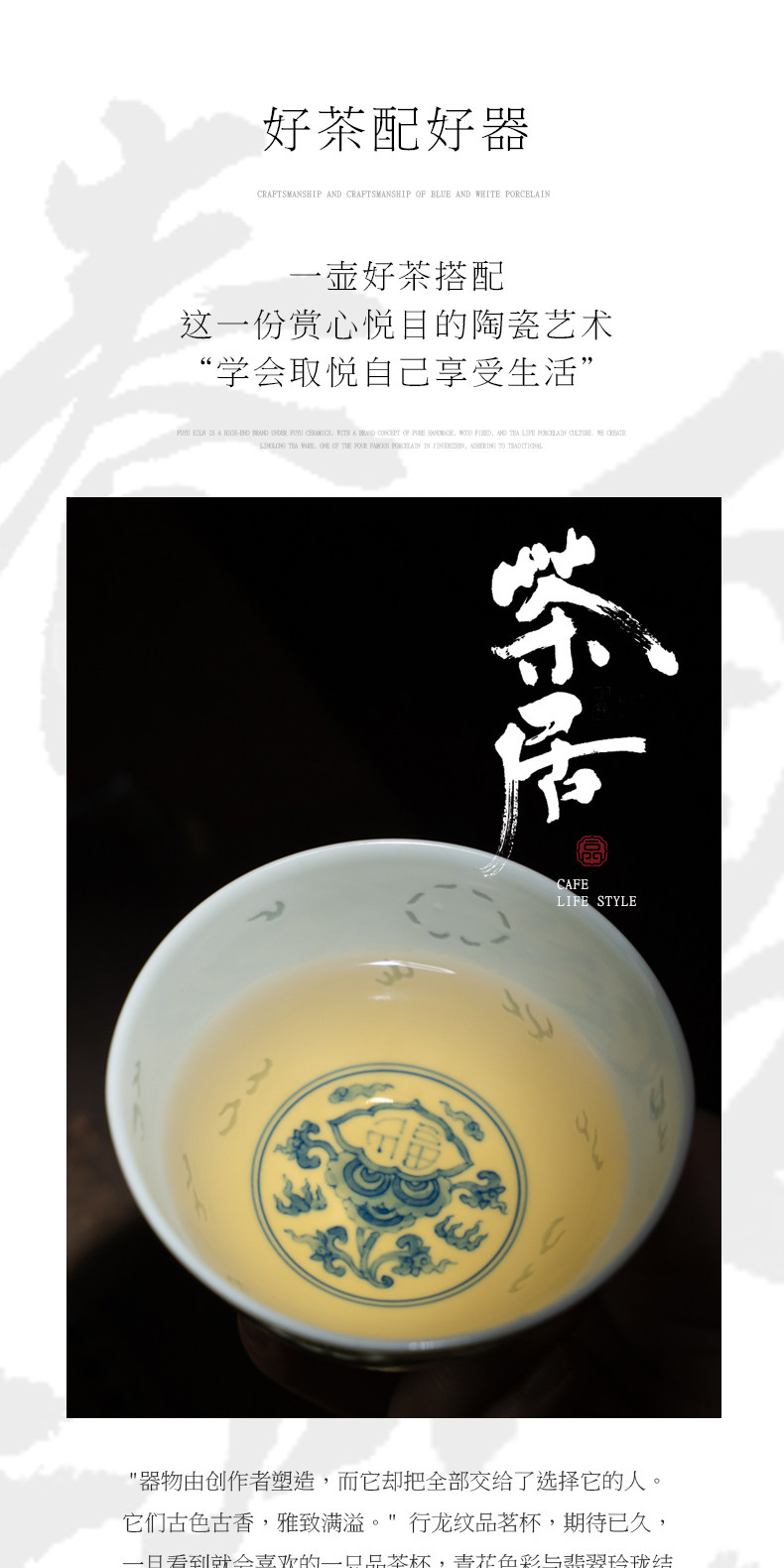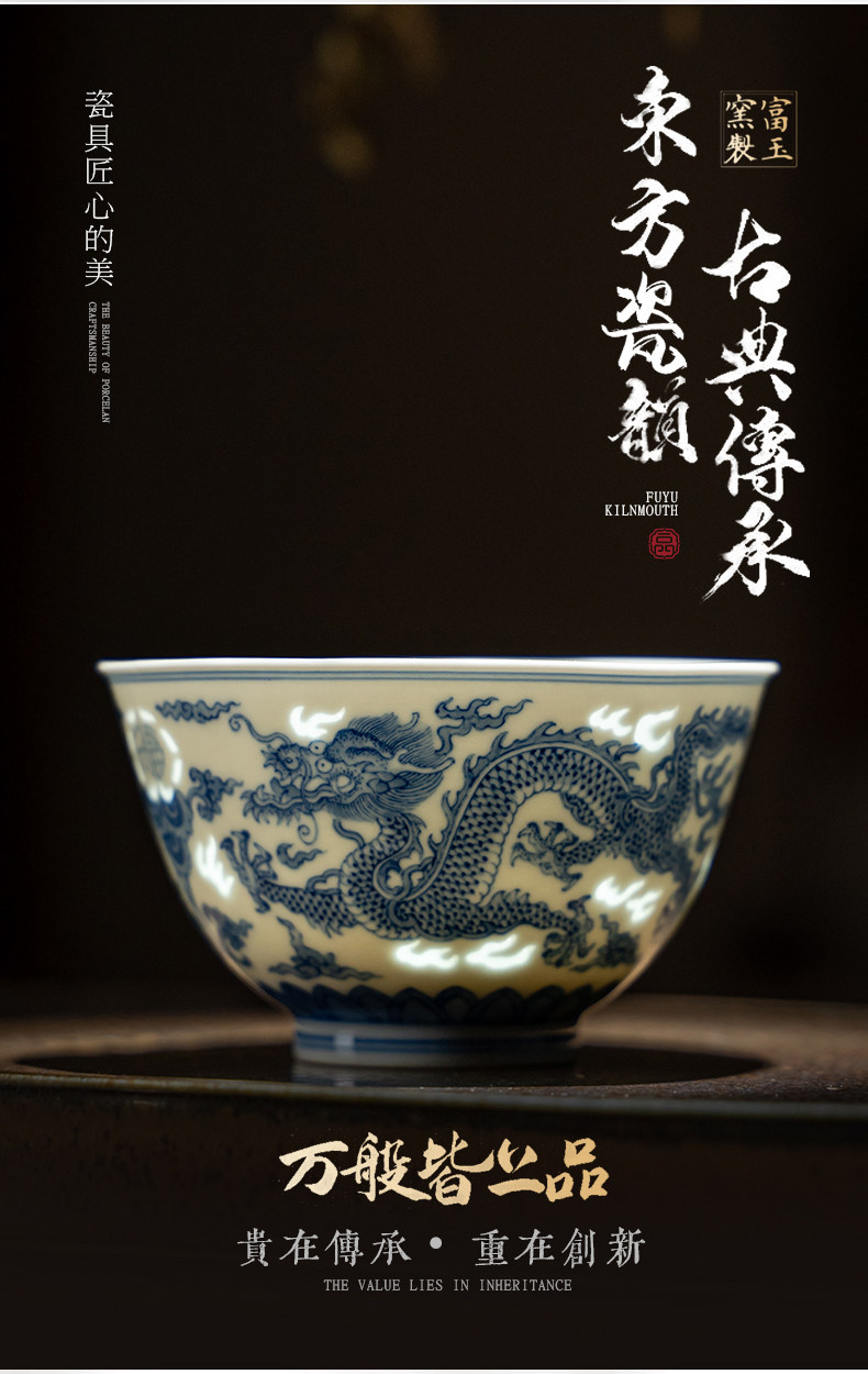 富玉窑 景德镇茶杯龙纹杯中式青花玲珑盖碗主人杯单杯送礼品