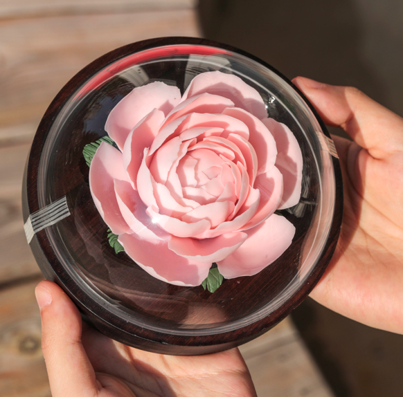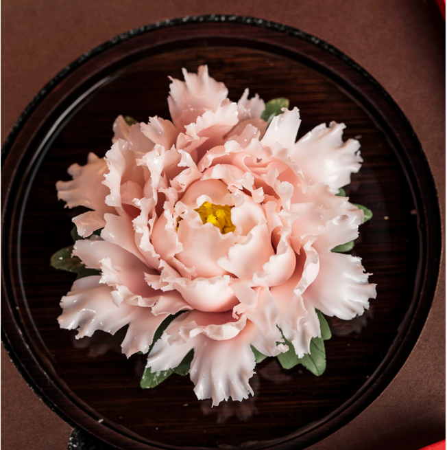 牡丹,花中的芳华馥郁,常有吉祥如意的寄语。用羊脂玉瓷泥,双手做成这一朵牡丹花,栩栩如生,永不凋零。