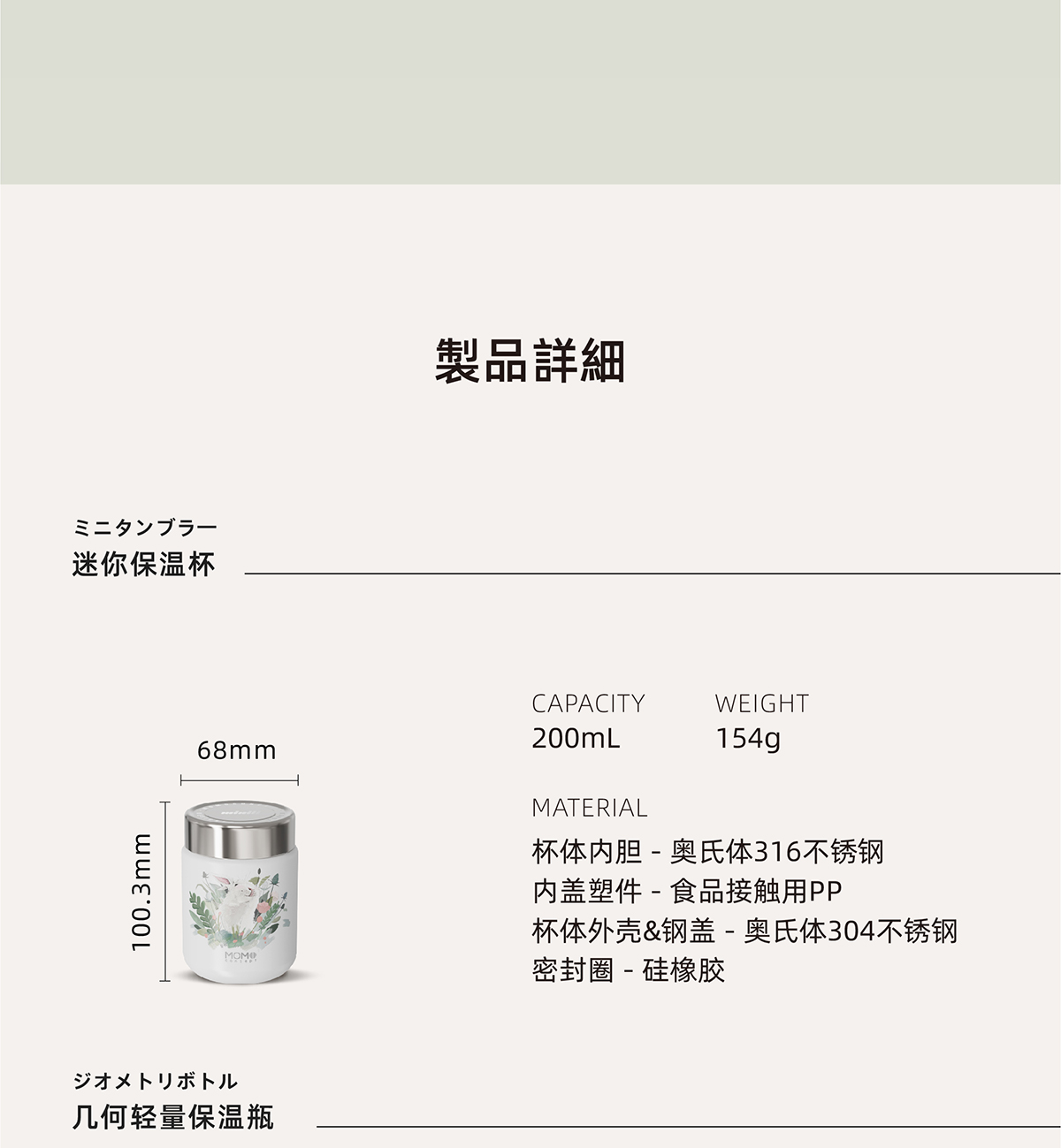 日本MOMO保温杯女生高颜值迷你小巧便携水杯咖啡送礼物316不锈钢