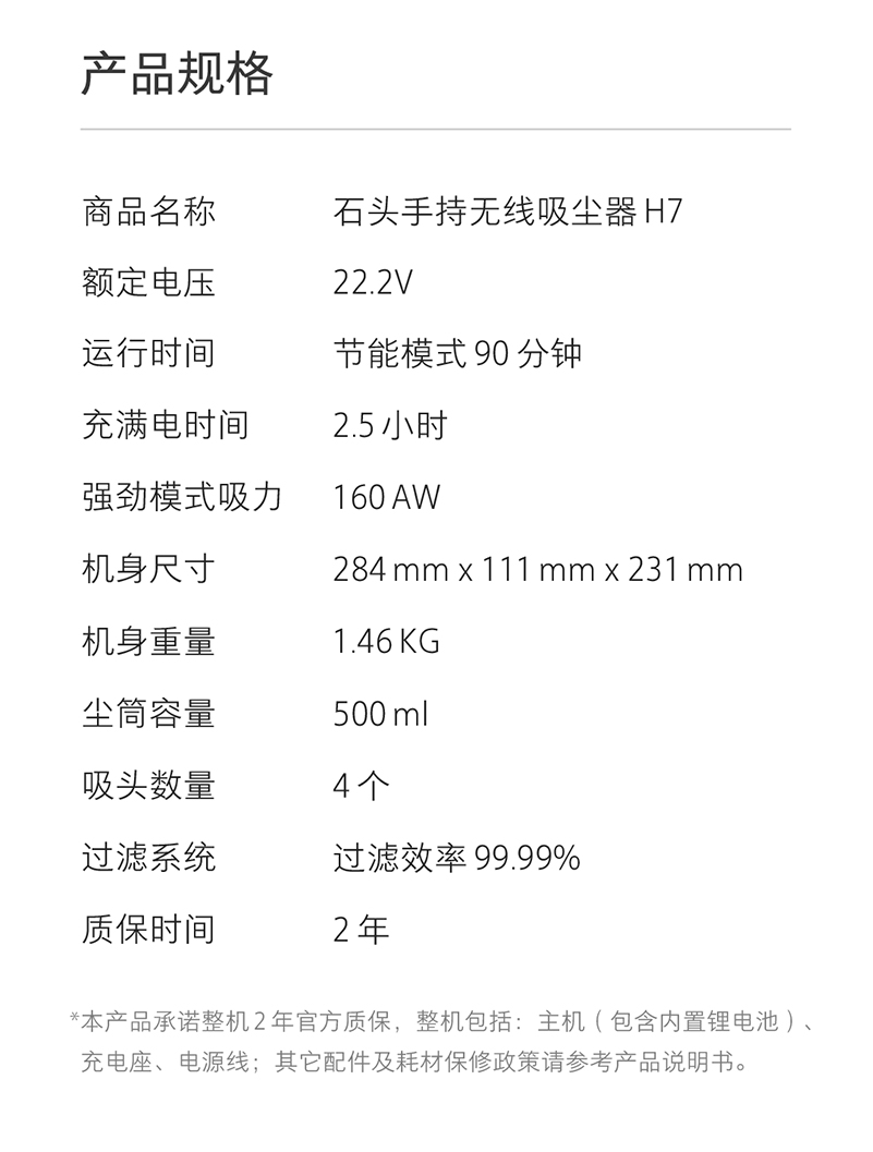 石头(roborock)H7无线手持吸尘器 除螨 宠物 家庭适用