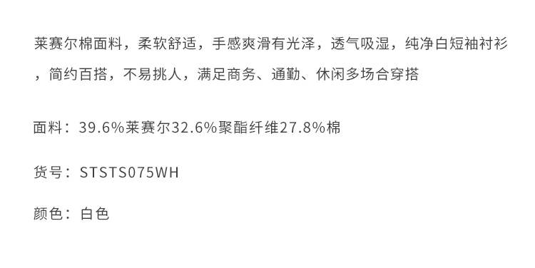 callisto白色莱赛尔混纺短袖衬衫 STSTS075C