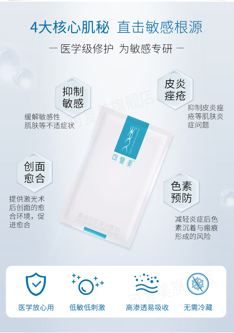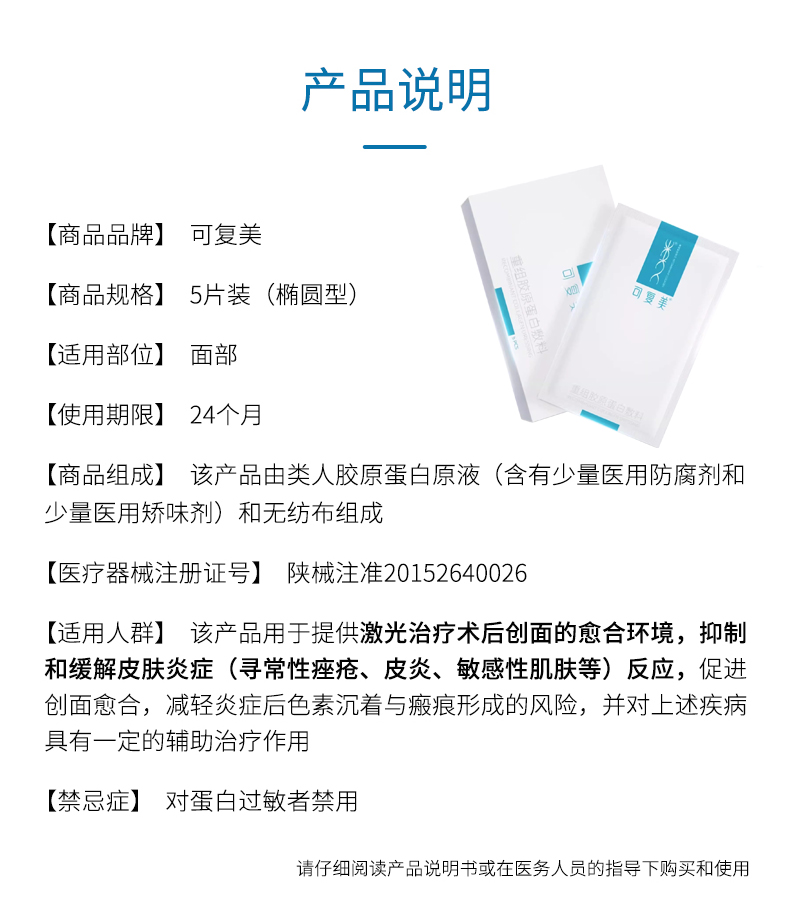 可复美 | 类人胶原蛋白面膜 5片/盒|促进创面愈合 激光术后修复 缓解皮炎痤疮 敏感肌肤修复 减轻炎症色素沉着及瘢痕形成