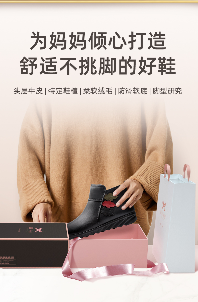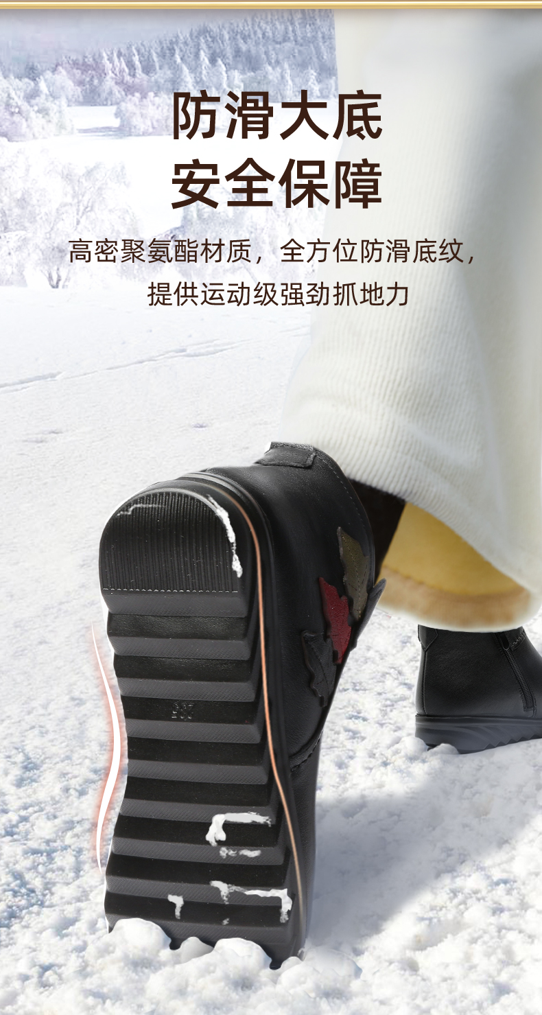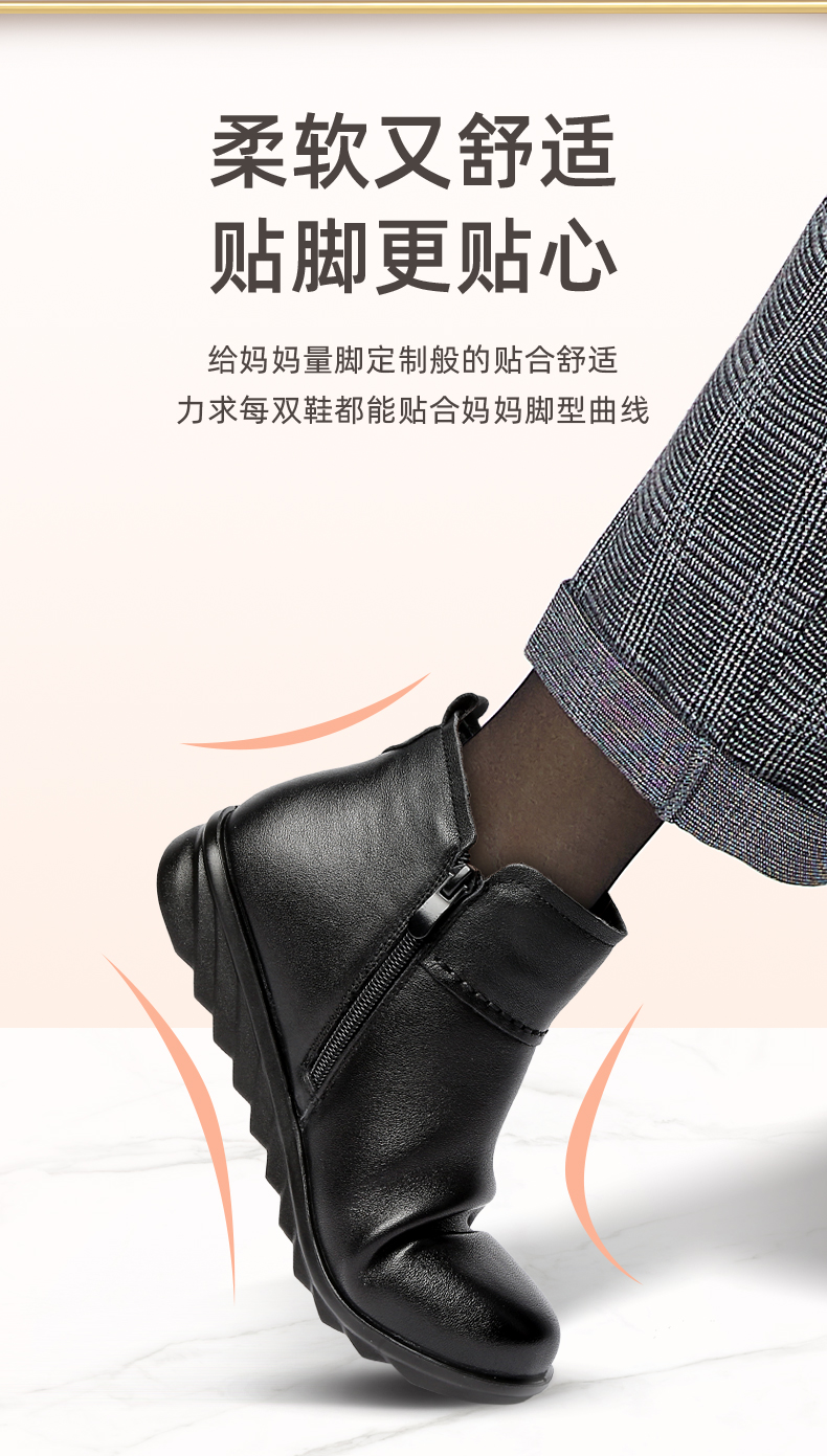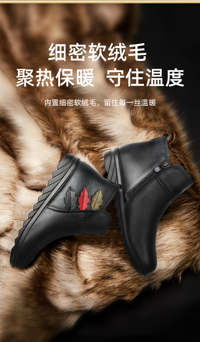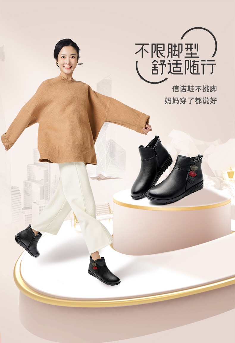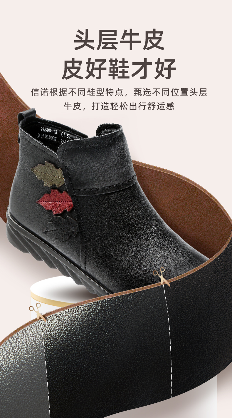 9M809-23信诺奶奶棉鞋女秋冬季防滑真皮加绒中老年人大码软底舒适妈妈皮鞋
