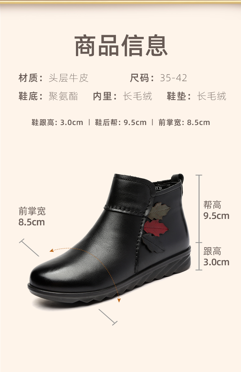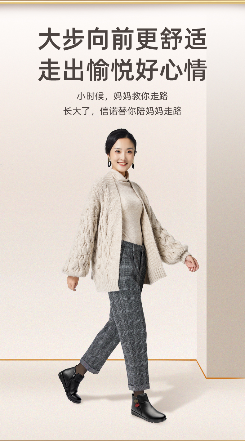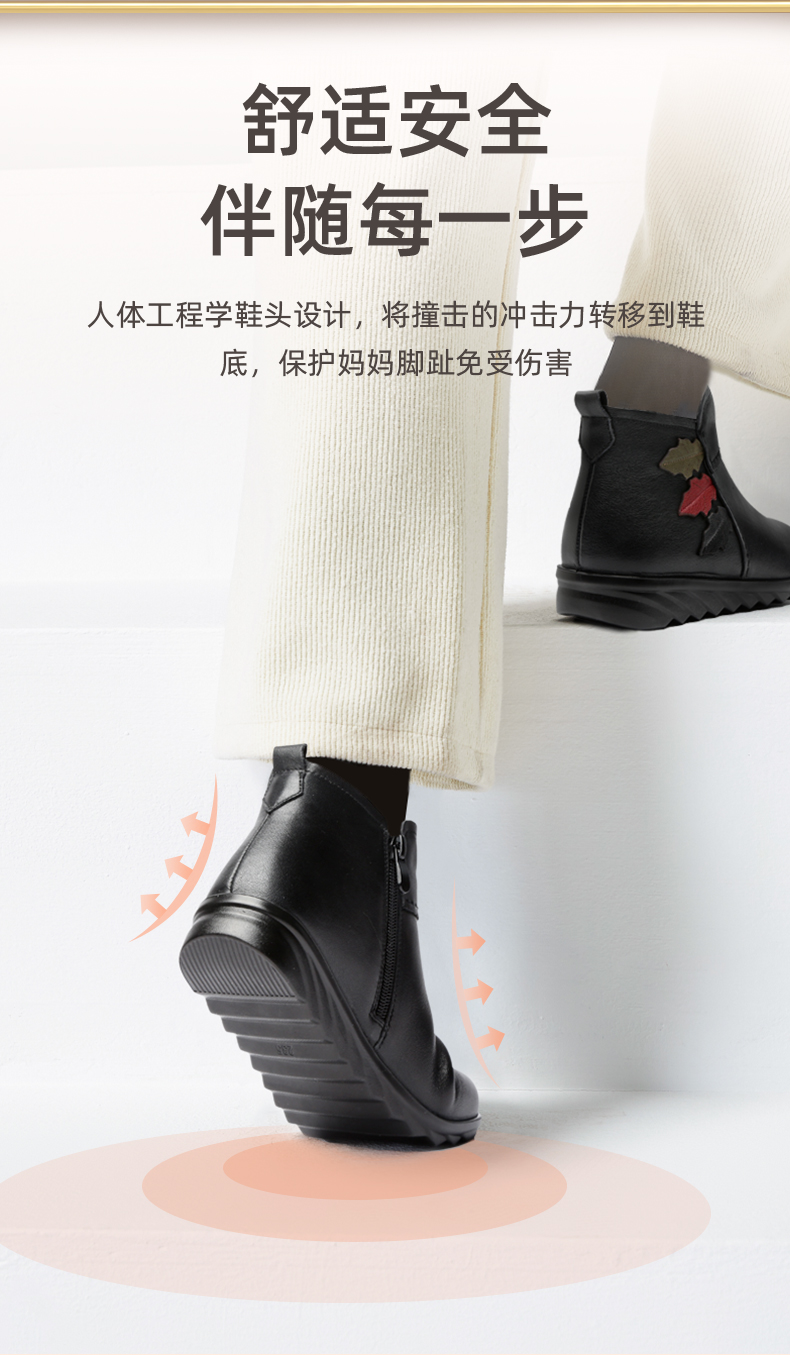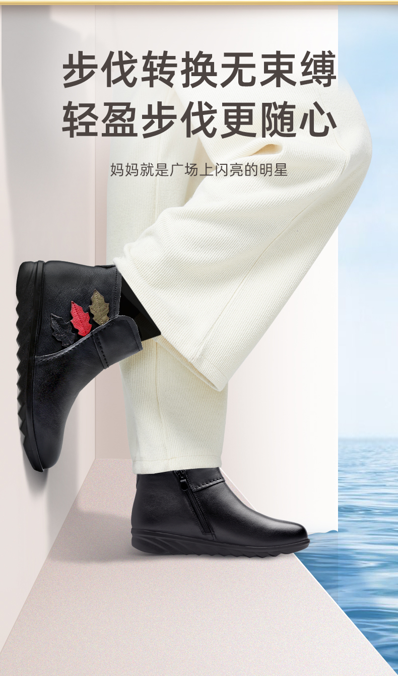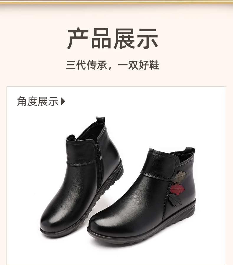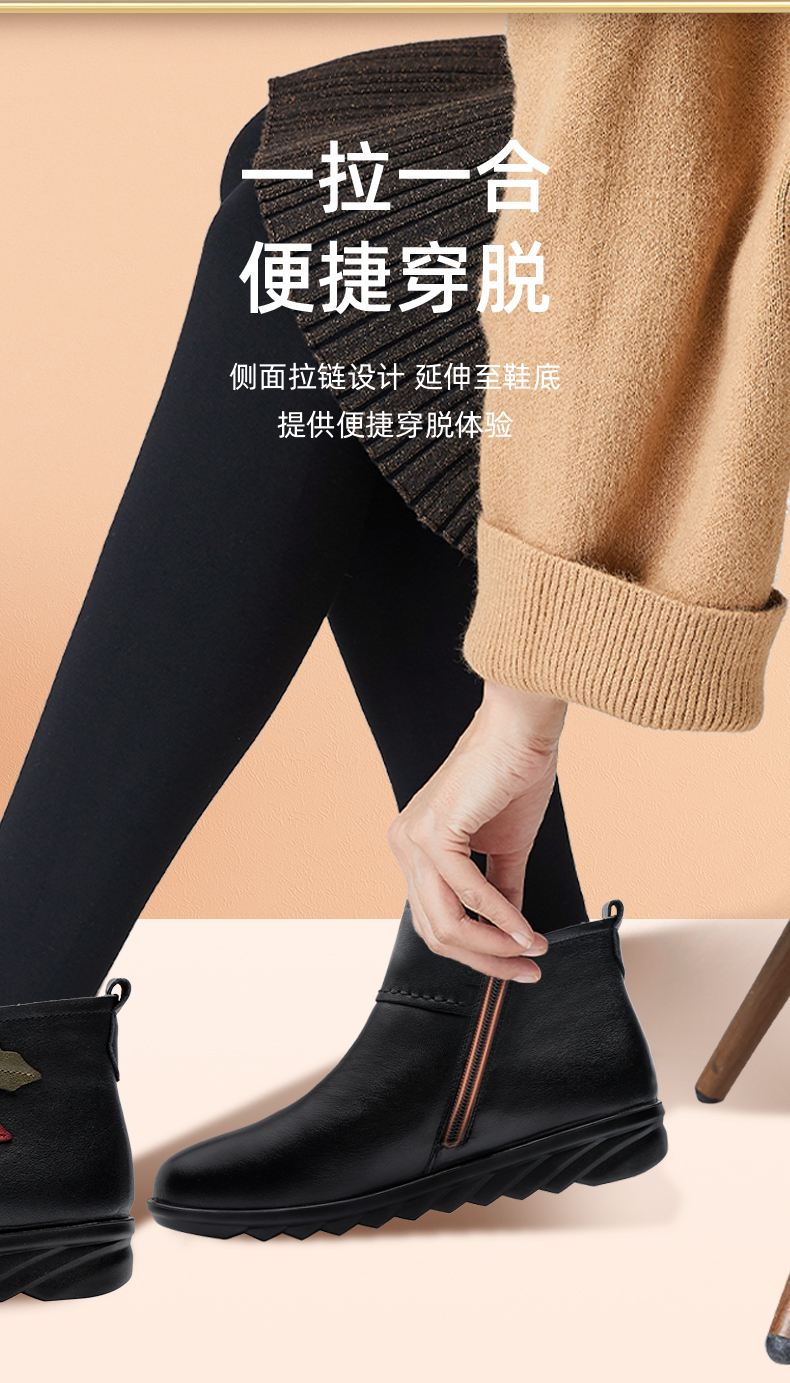 9M809-23信诺奶奶棉鞋女秋冬季防滑真皮加绒中老年人大码软底舒适妈妈皮鞋