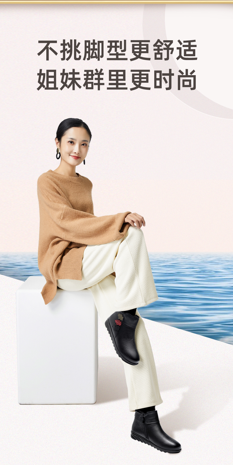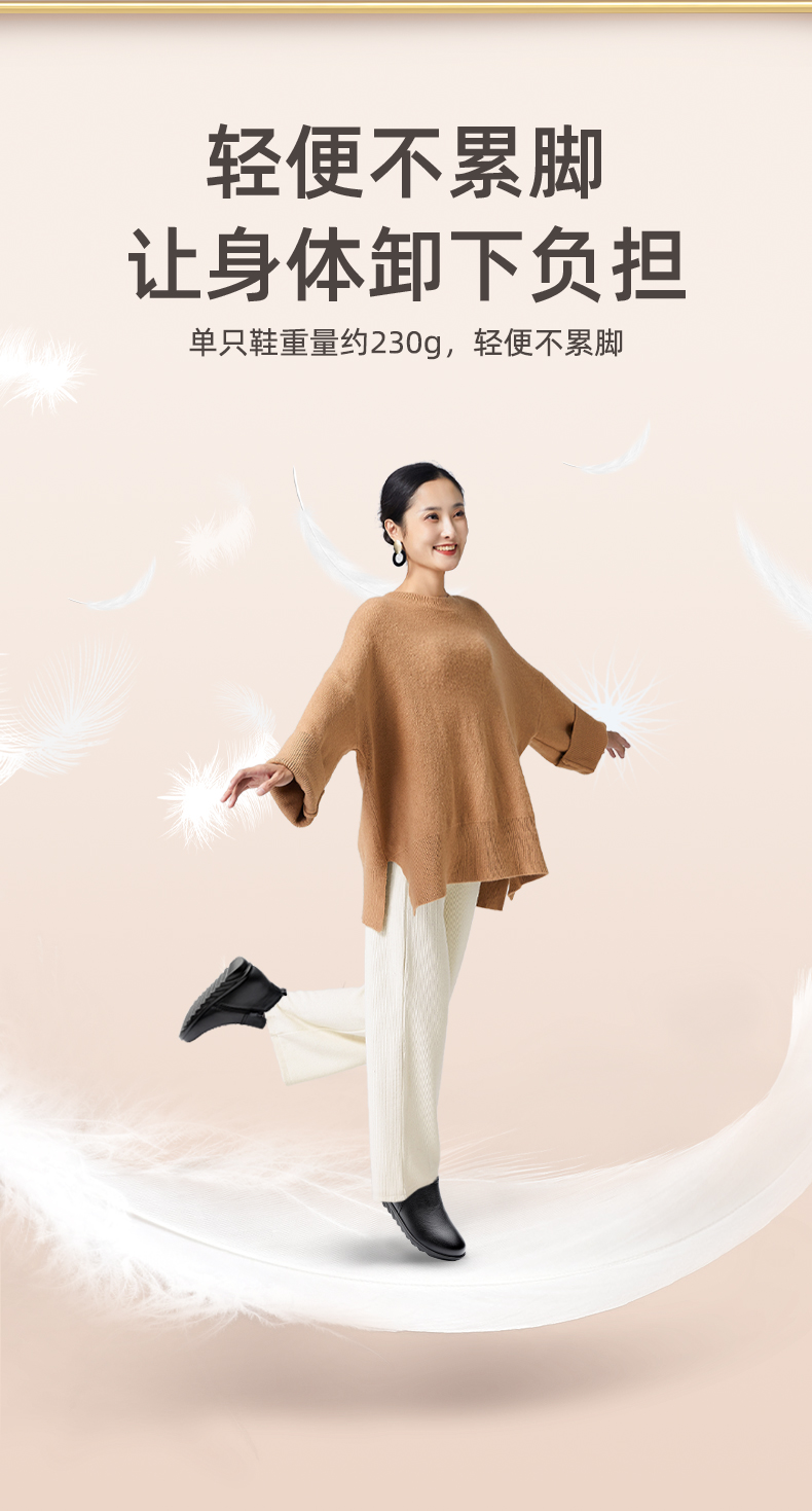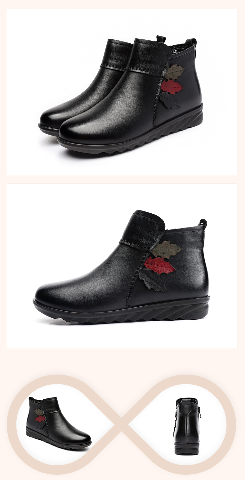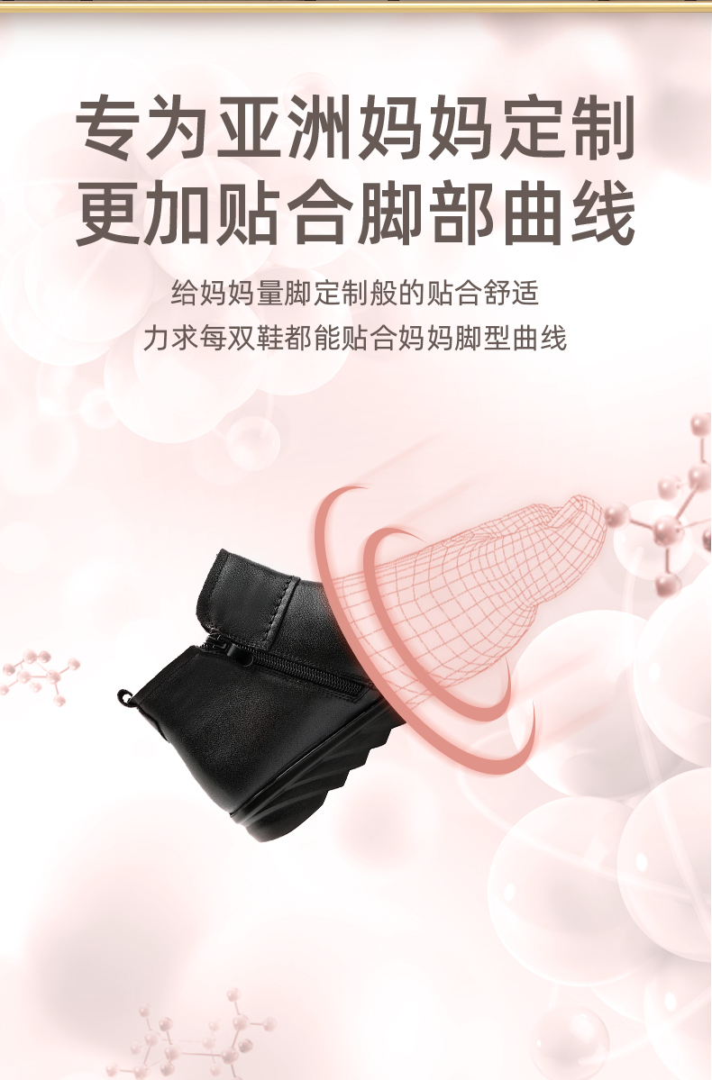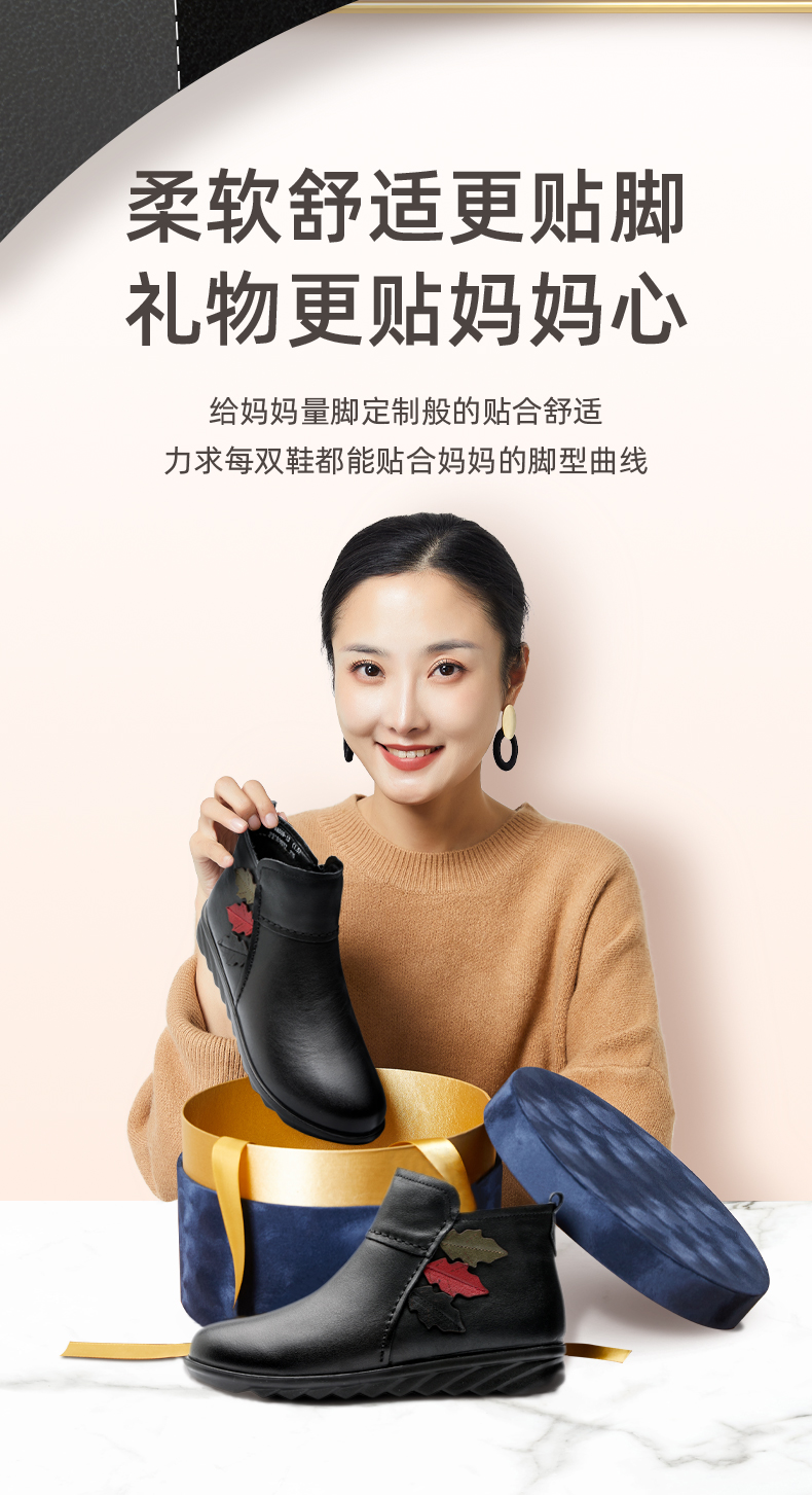 9M809-23信诺奶奶棉鞋女秋冬季防滑真皮加绒中老年人大码软底舒适妈妈皮鞋