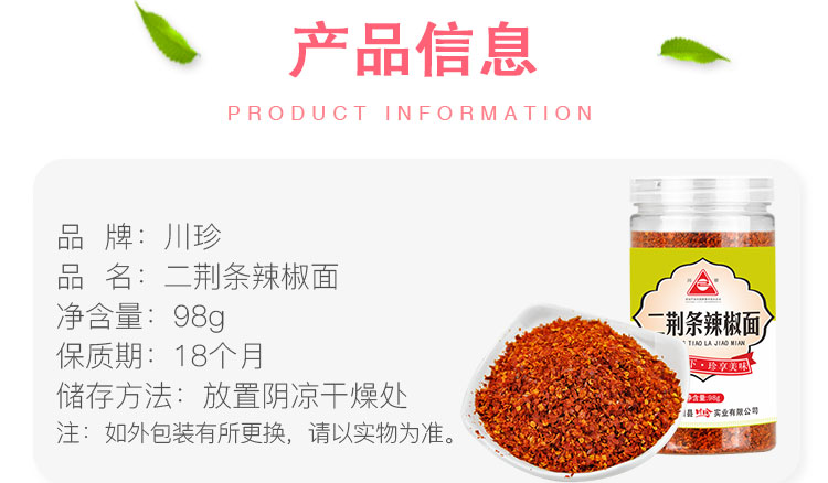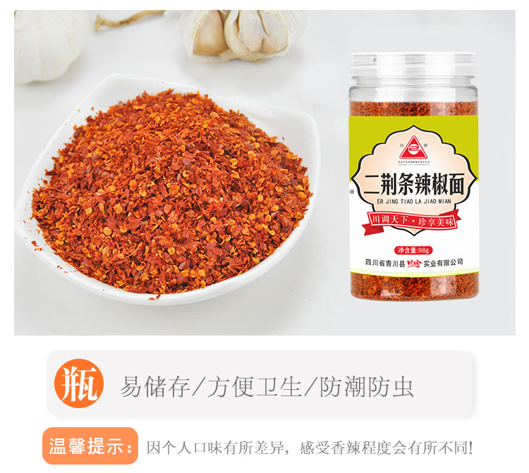 川珍 四川二荆条辣椒面98g 香辛料 辣椒粉海椒面火锅蘸料厨房调味料
