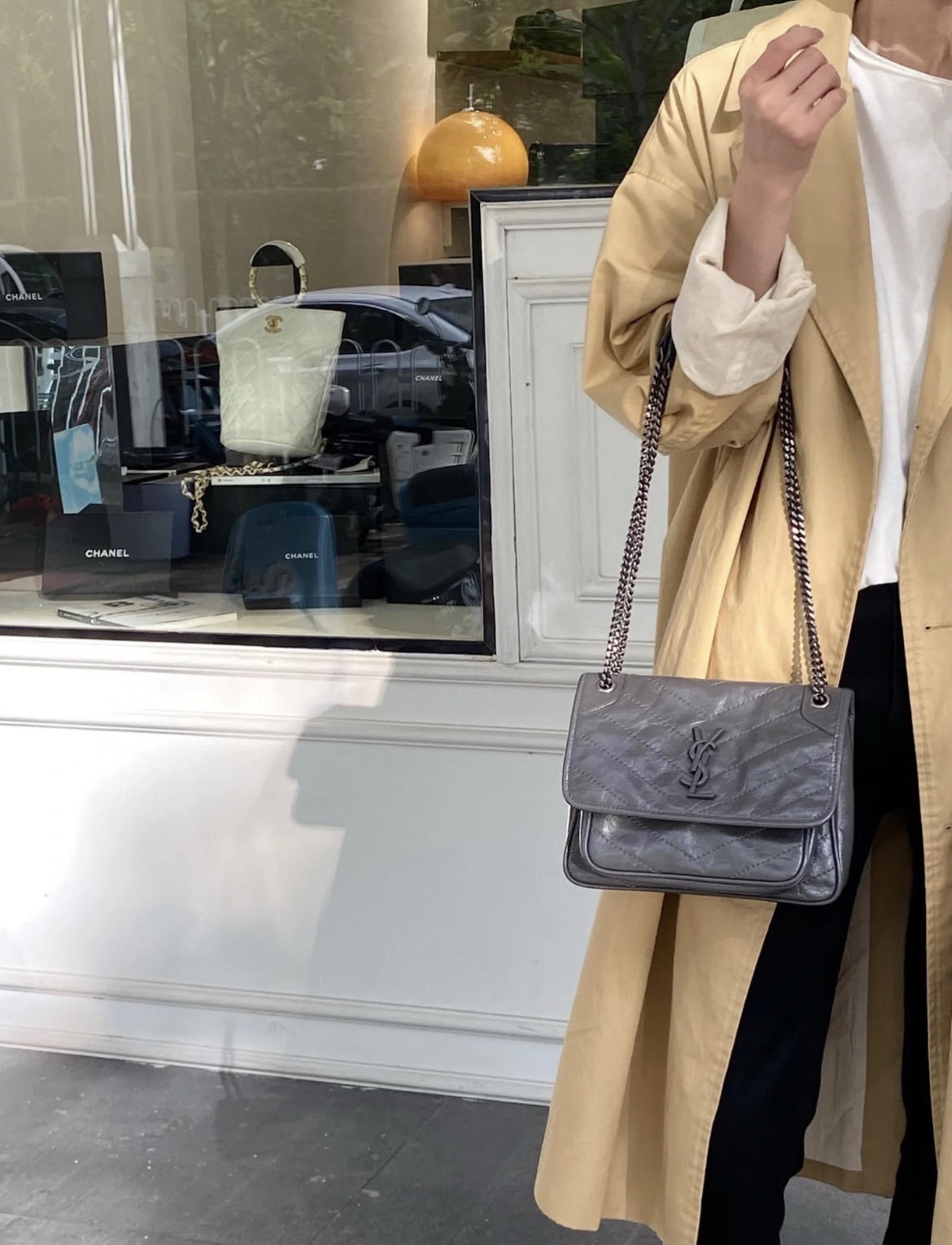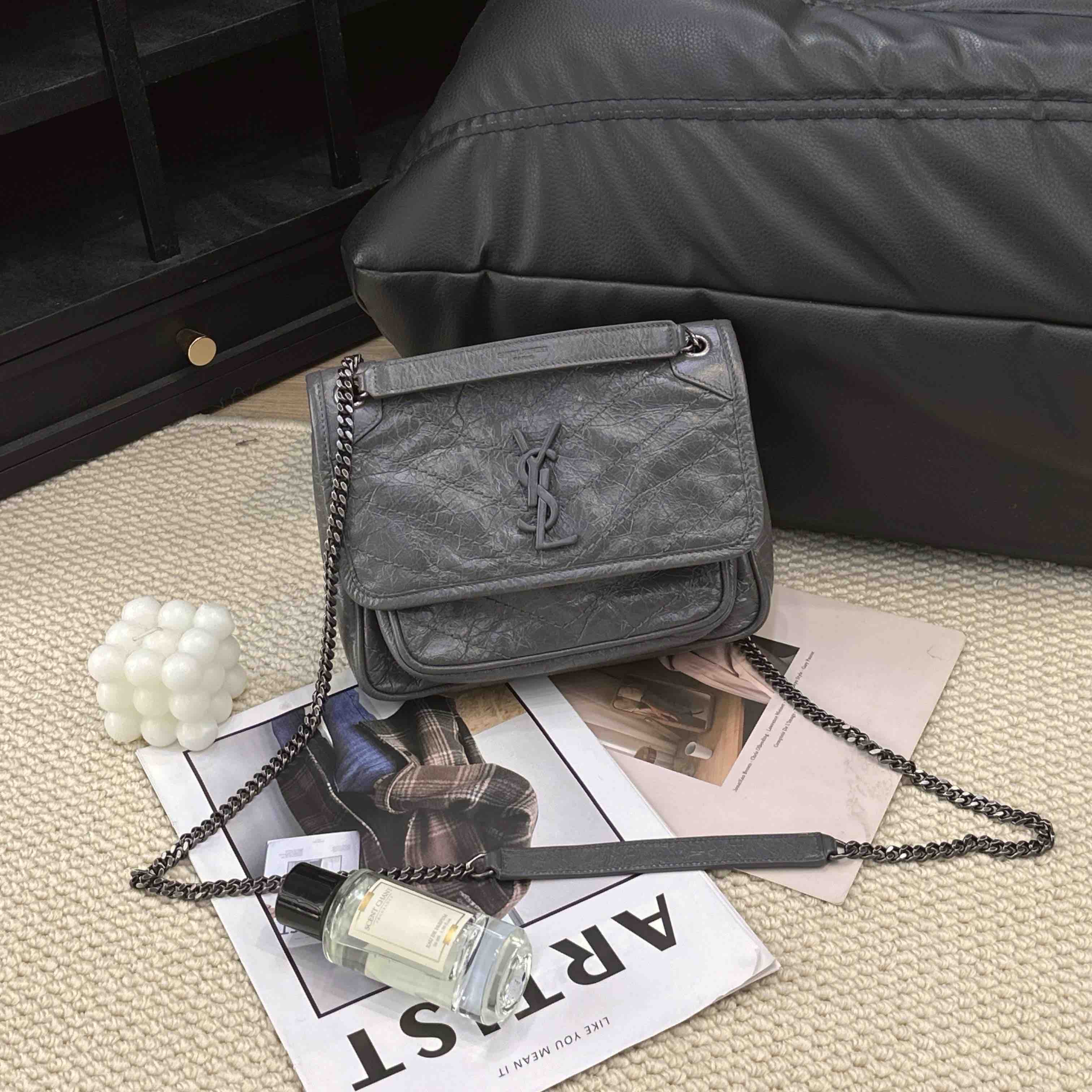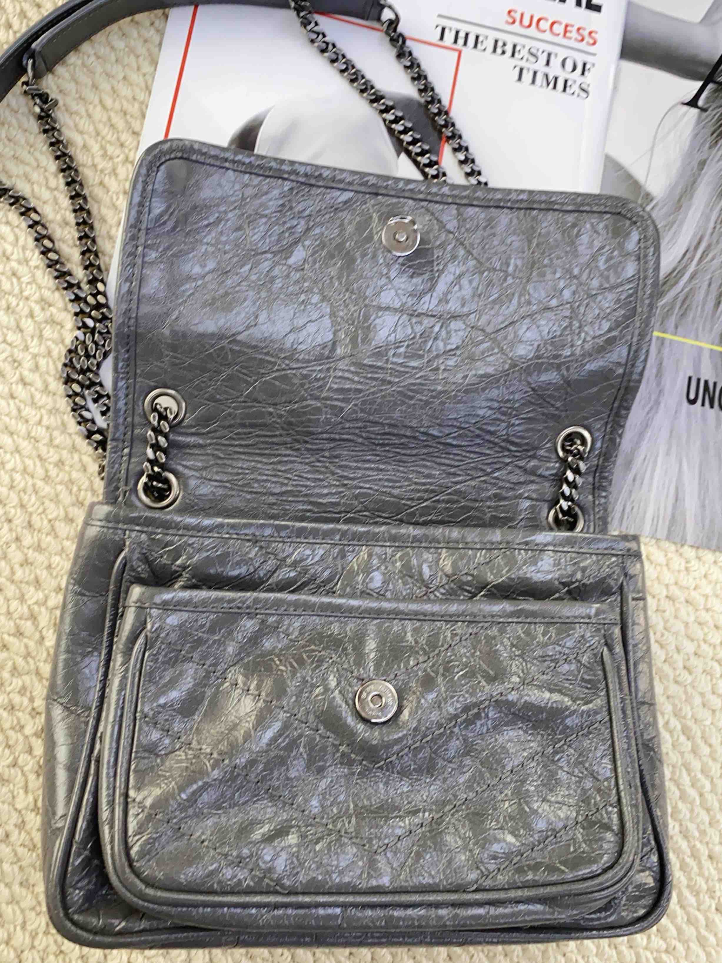 【商品详情】正品二手 YSL 小号 油蜡牛皮 Niki 翻盖包🍑97新 23×18 配件:说明书。logo边边处有轻微使用脏 大热经典款