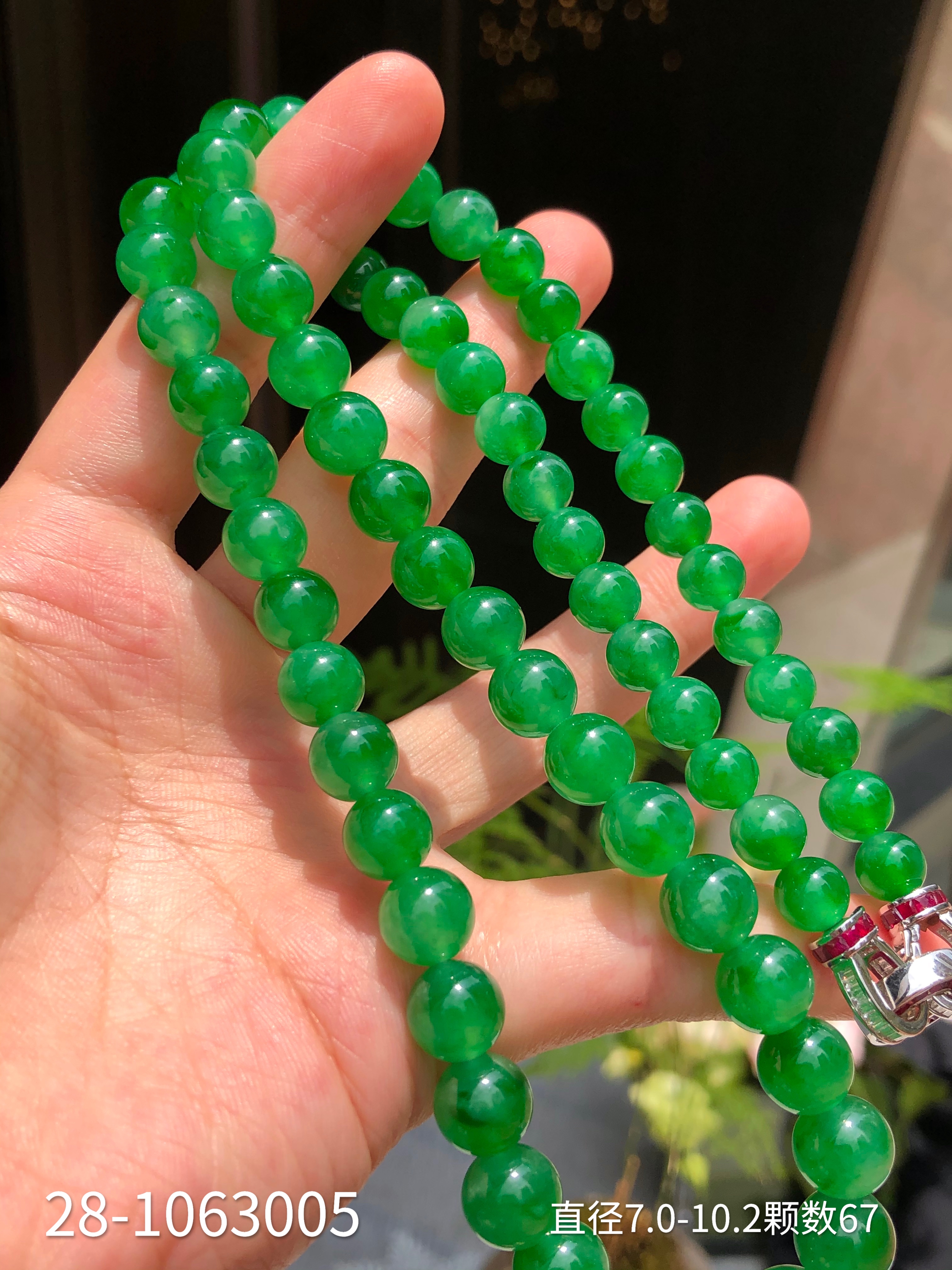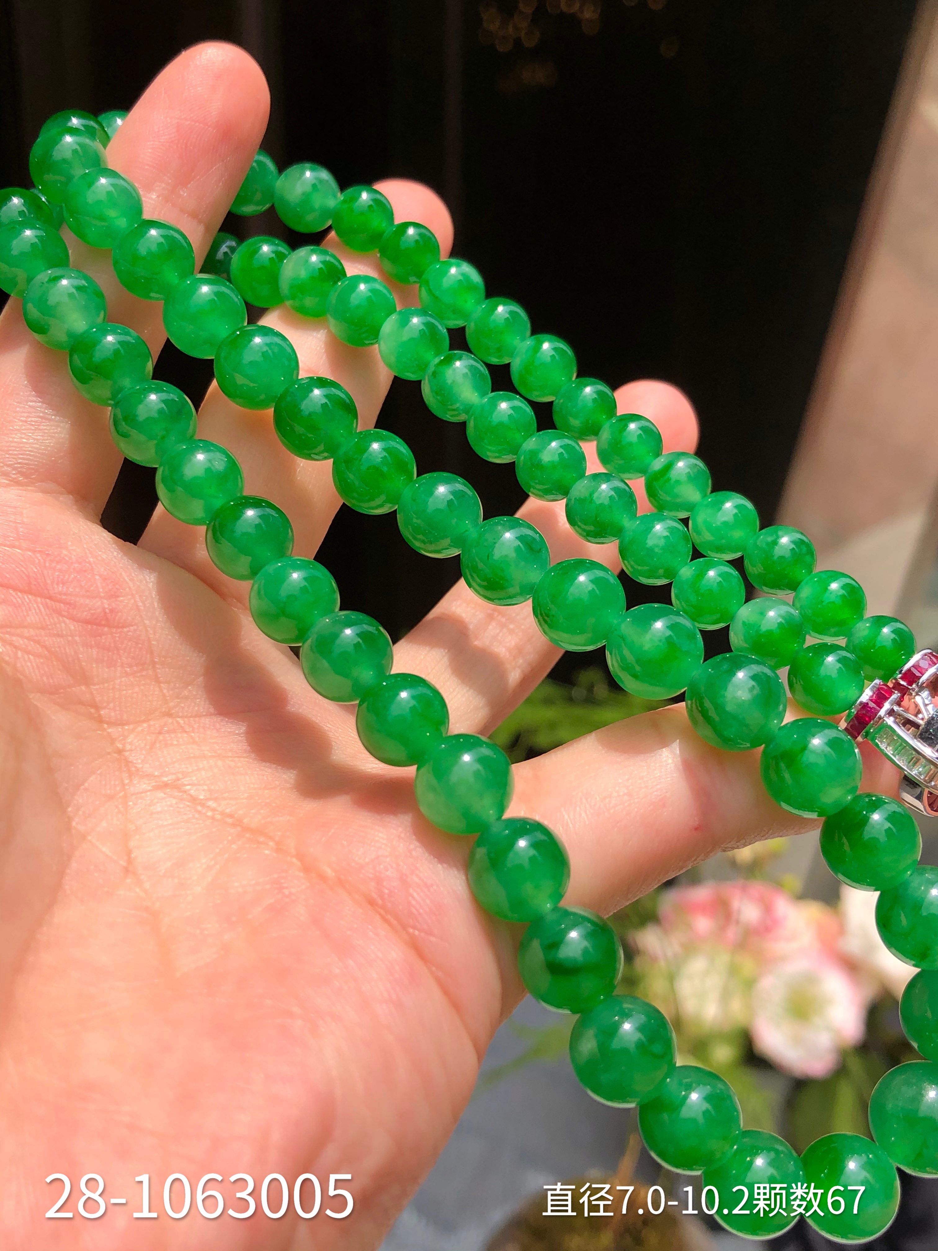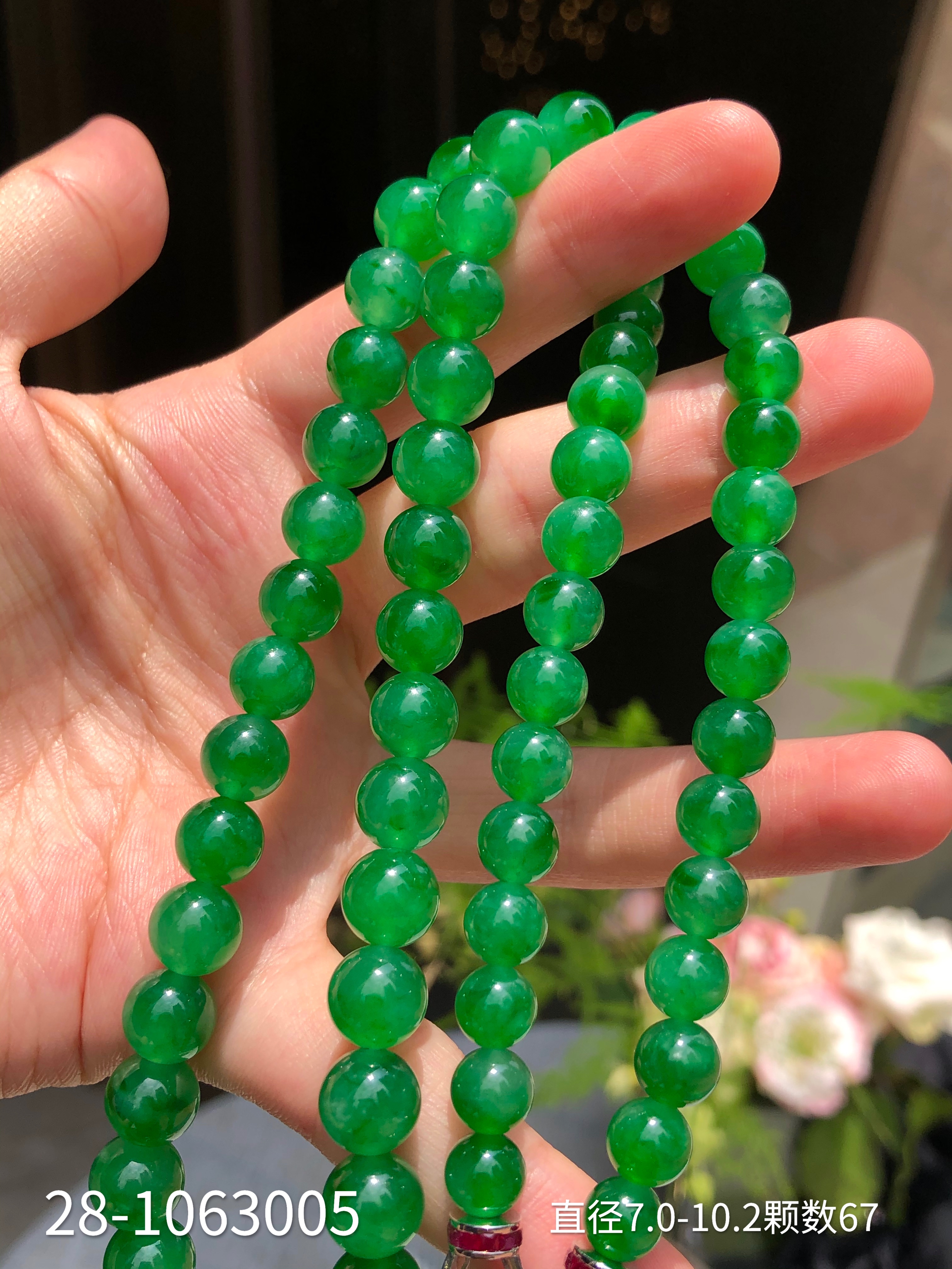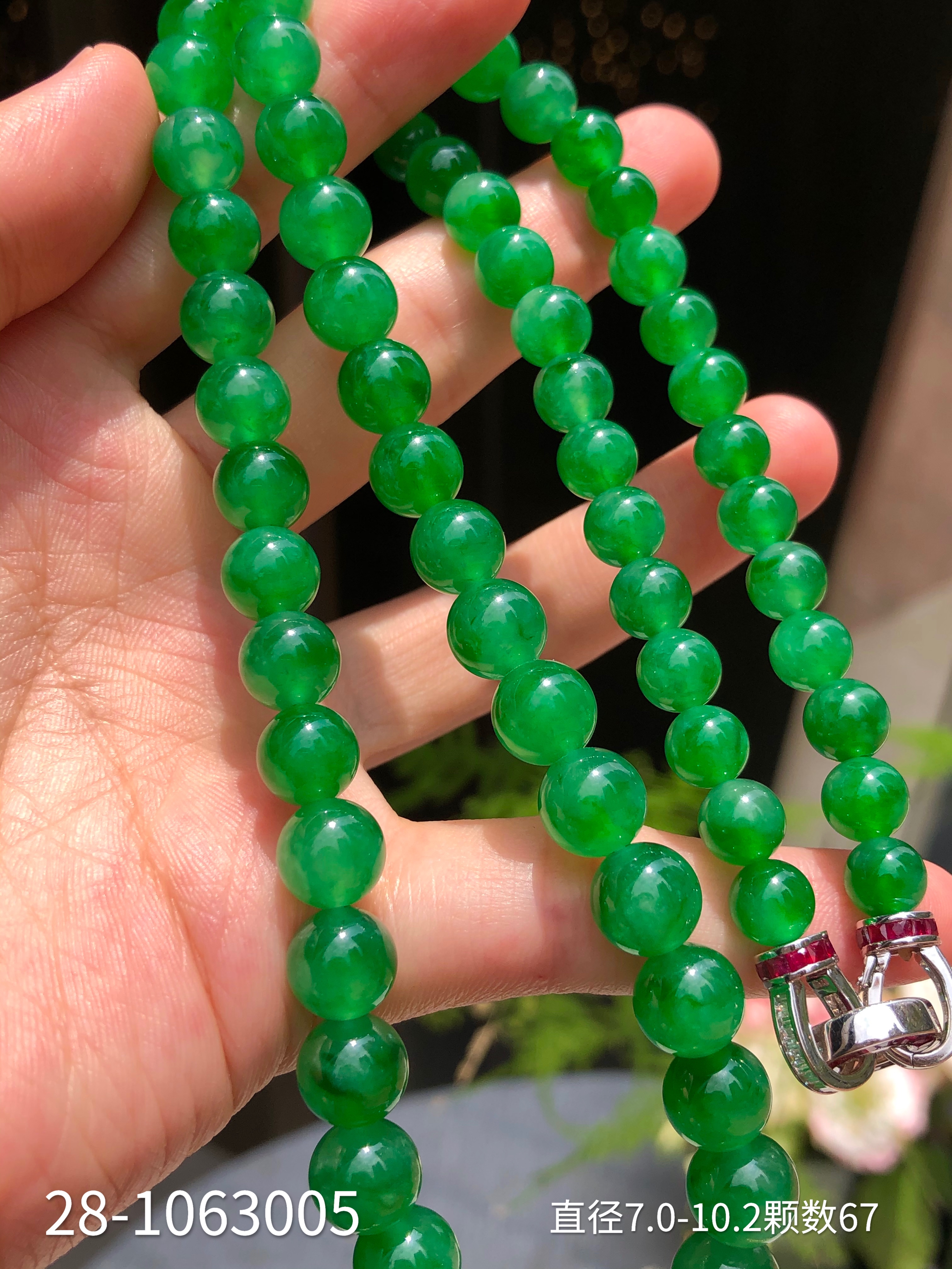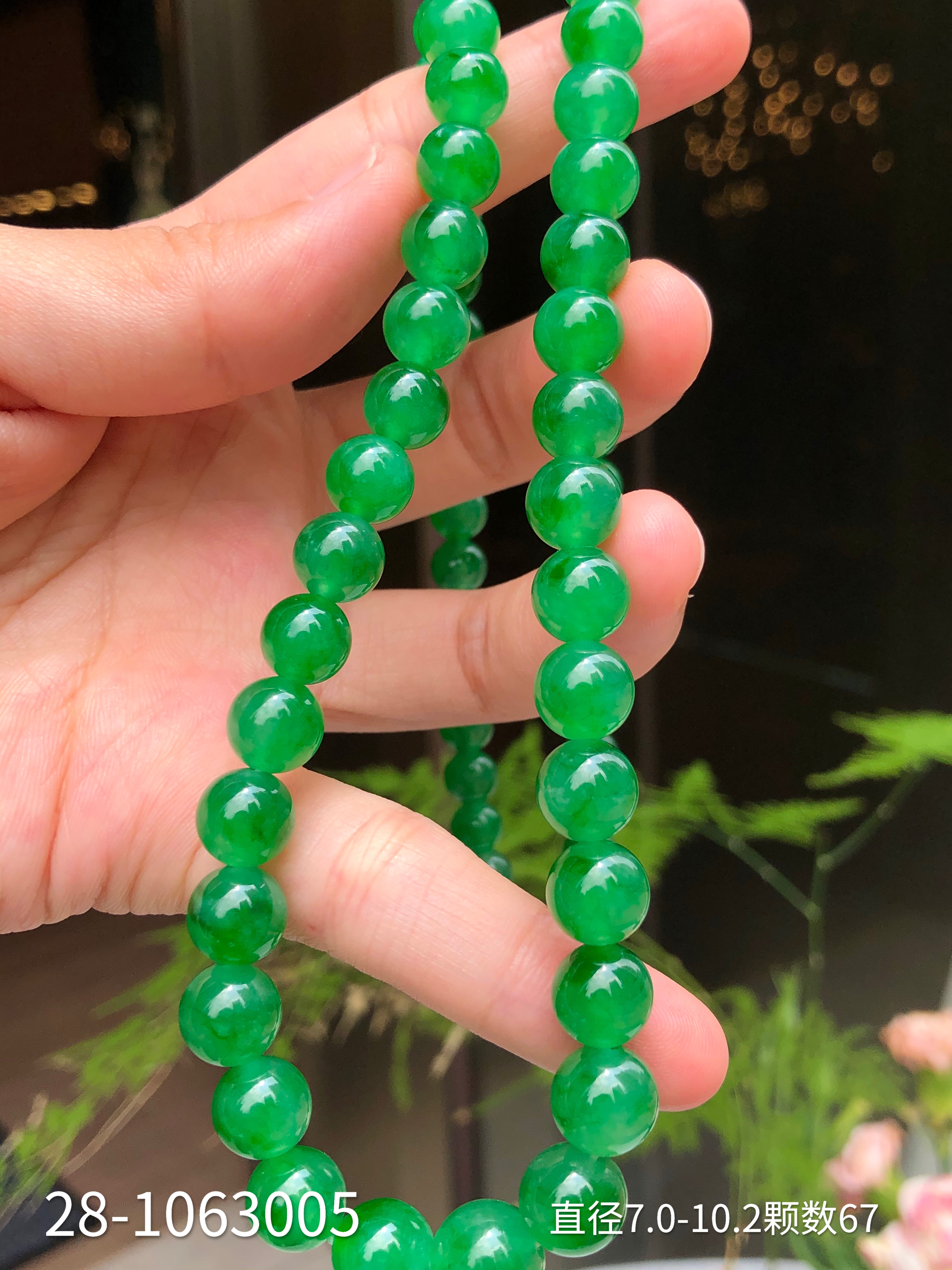 28-1063005,冰种艳绿珠链。具体价格微信咨询