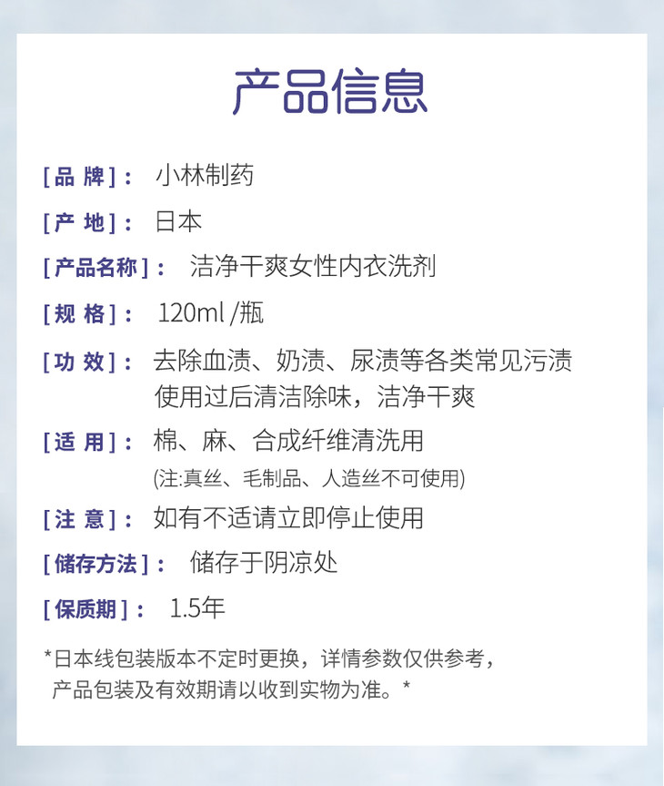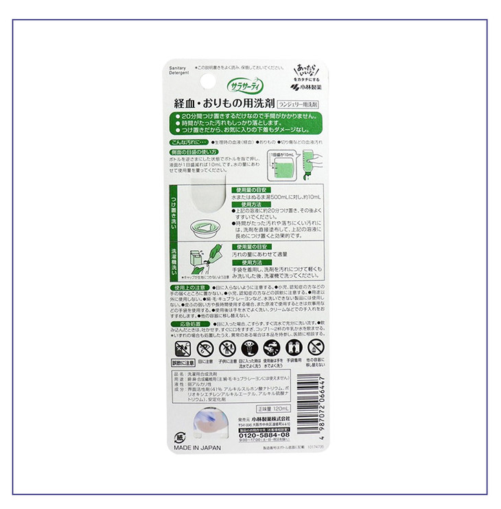 日本小林制药内衣清洗 内衣清洗剂 120ml 去血污渍内裤洗衣液女士用洗内裤用