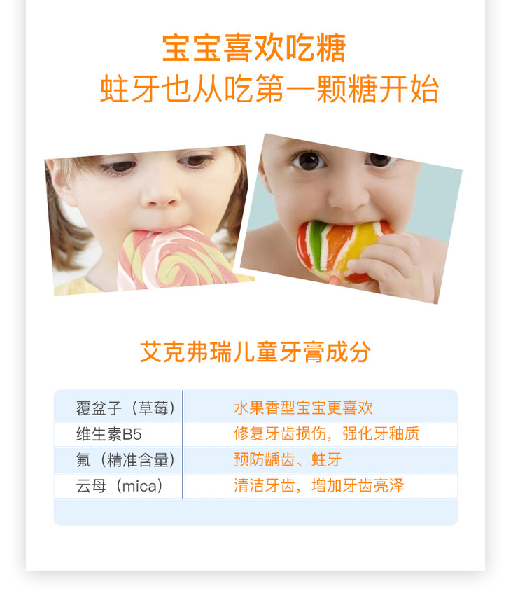 艾克弗瑞西班牙进口儿童牙膏水果味3-6岁6-12岁防蛀护牙