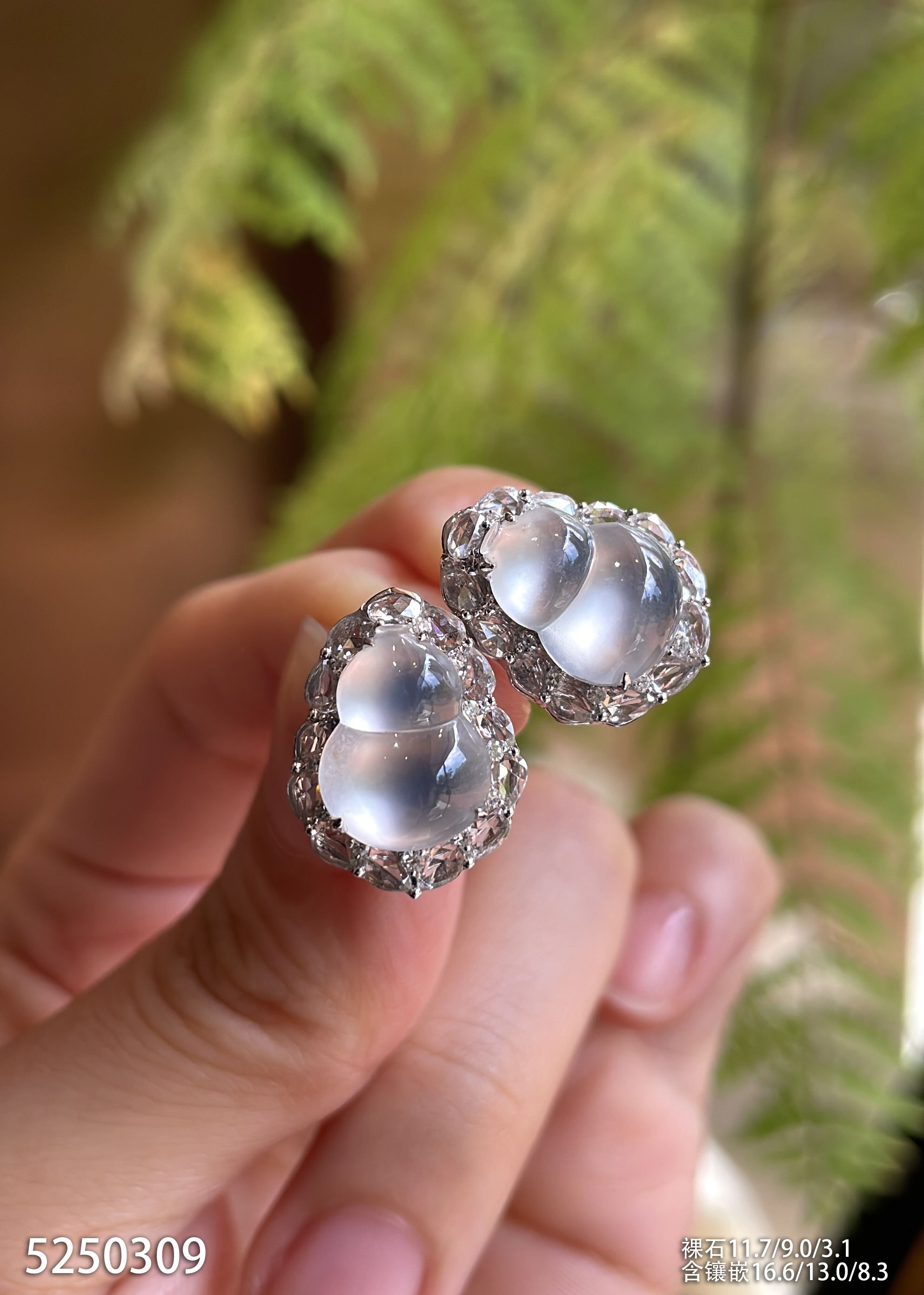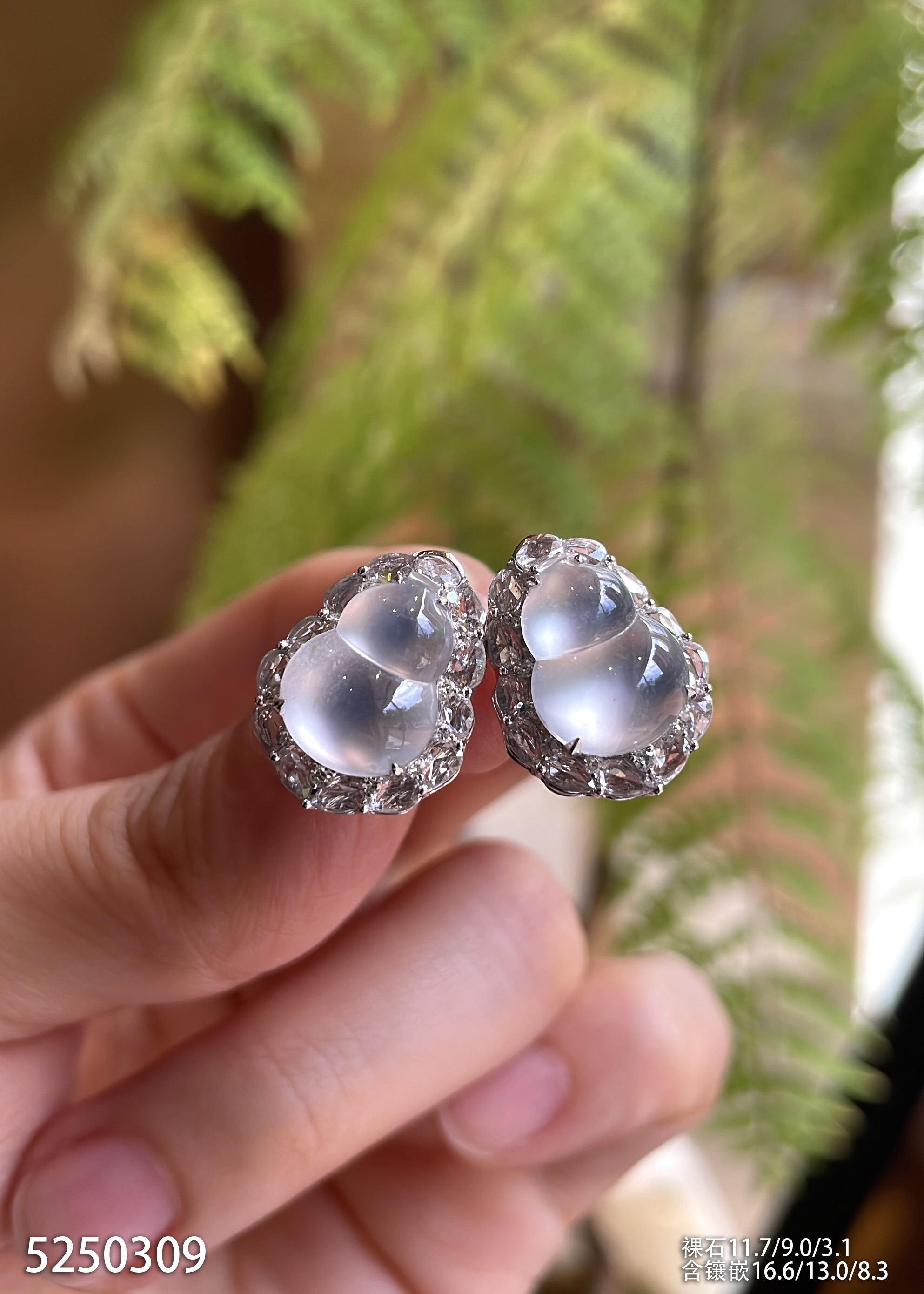 高冰种艳绿葫芦耳坠 72999【6024304】
