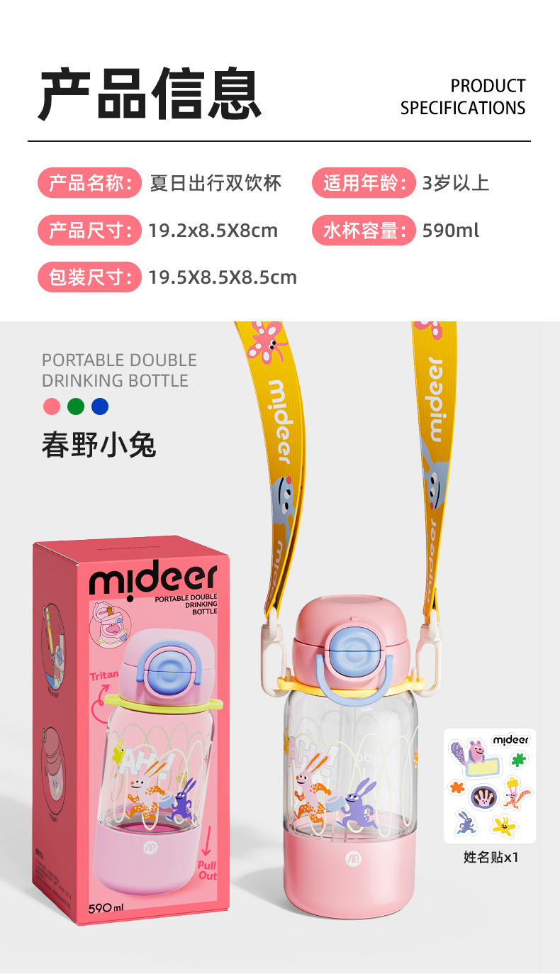 【夏日快乐补水】mideer弥鹿便携双饮吸管杯 590ml大容量 食品级Tritan材质 装温水 果汁 炎炎夏日随时解渴消暑