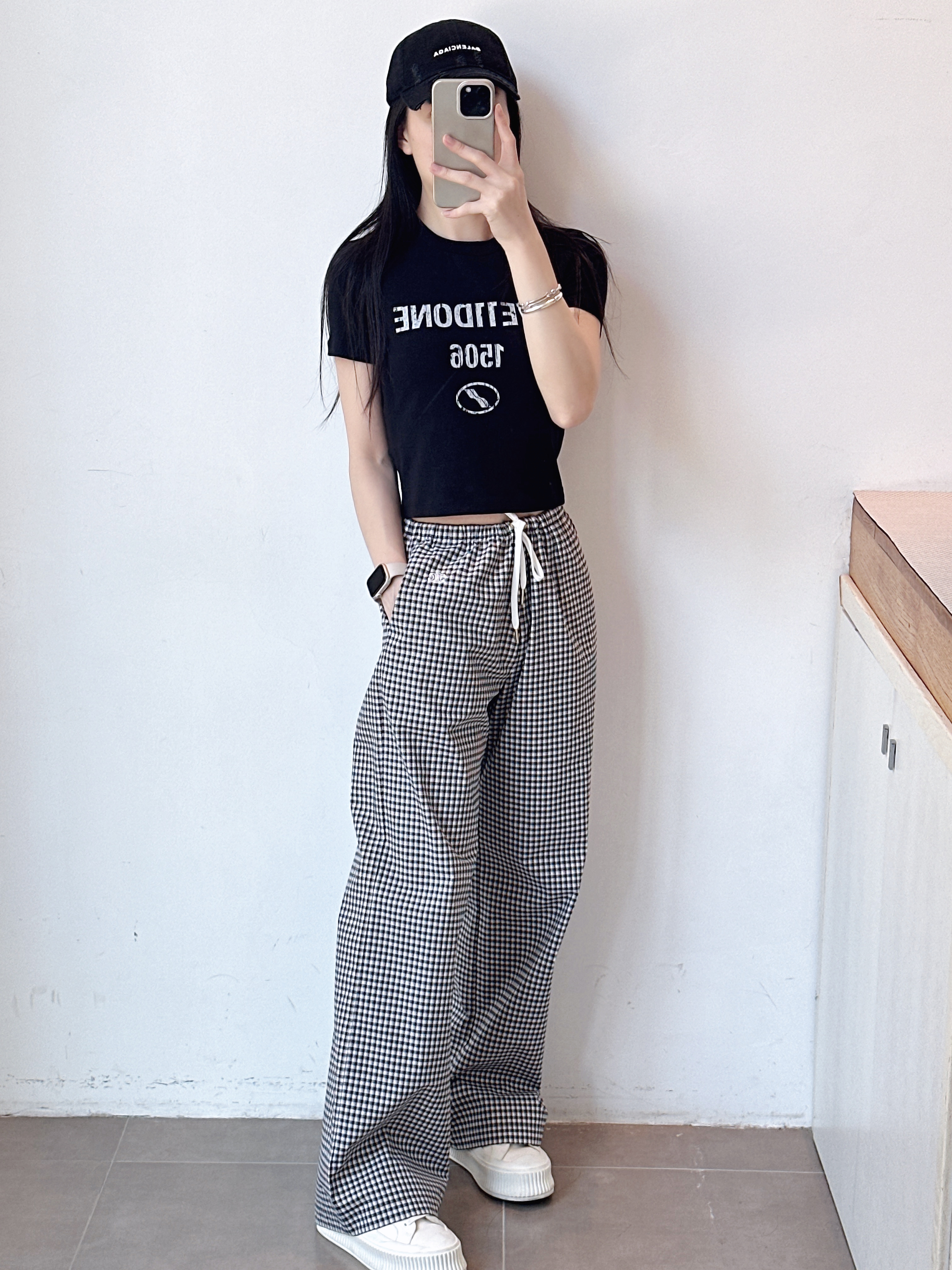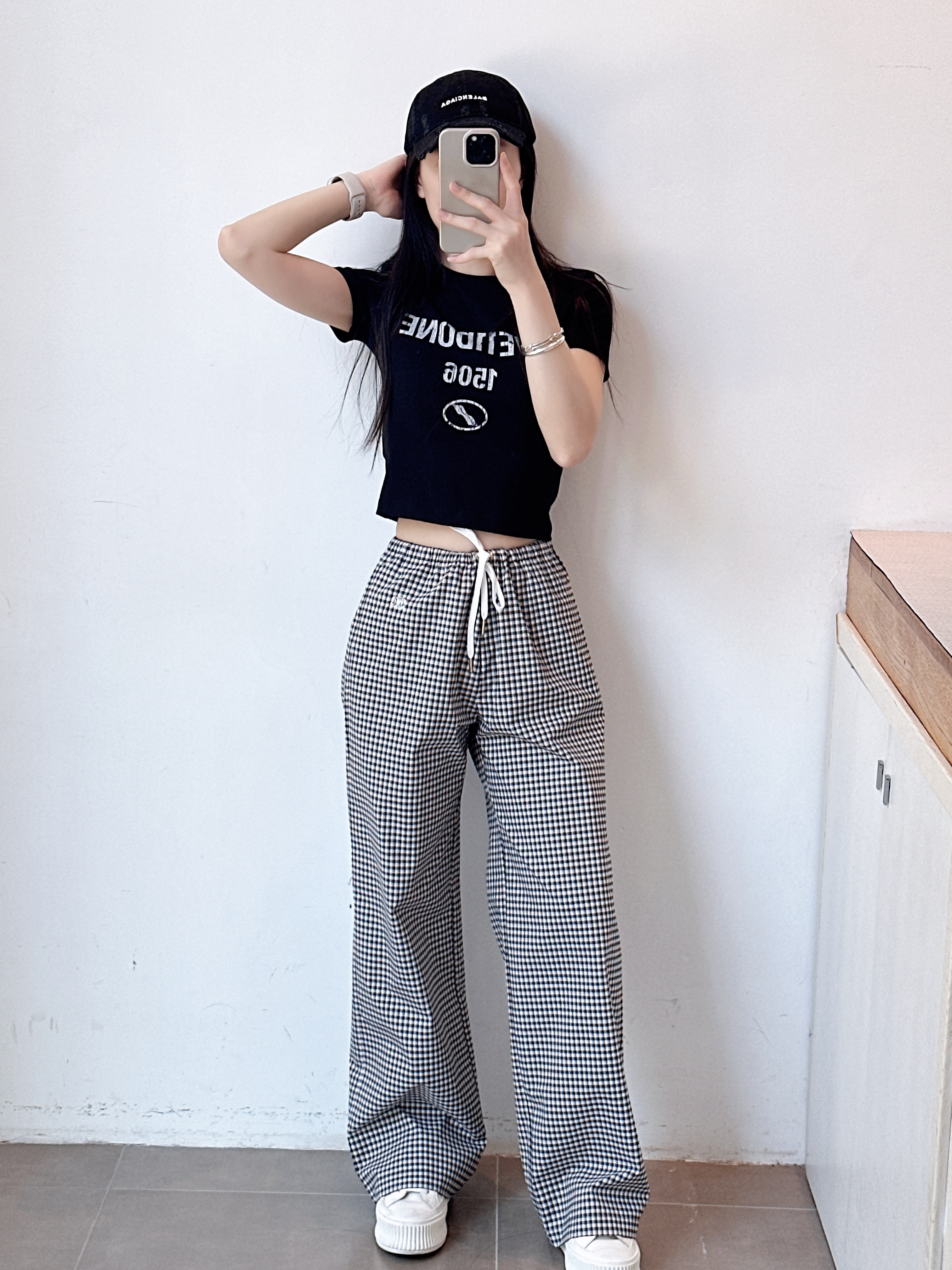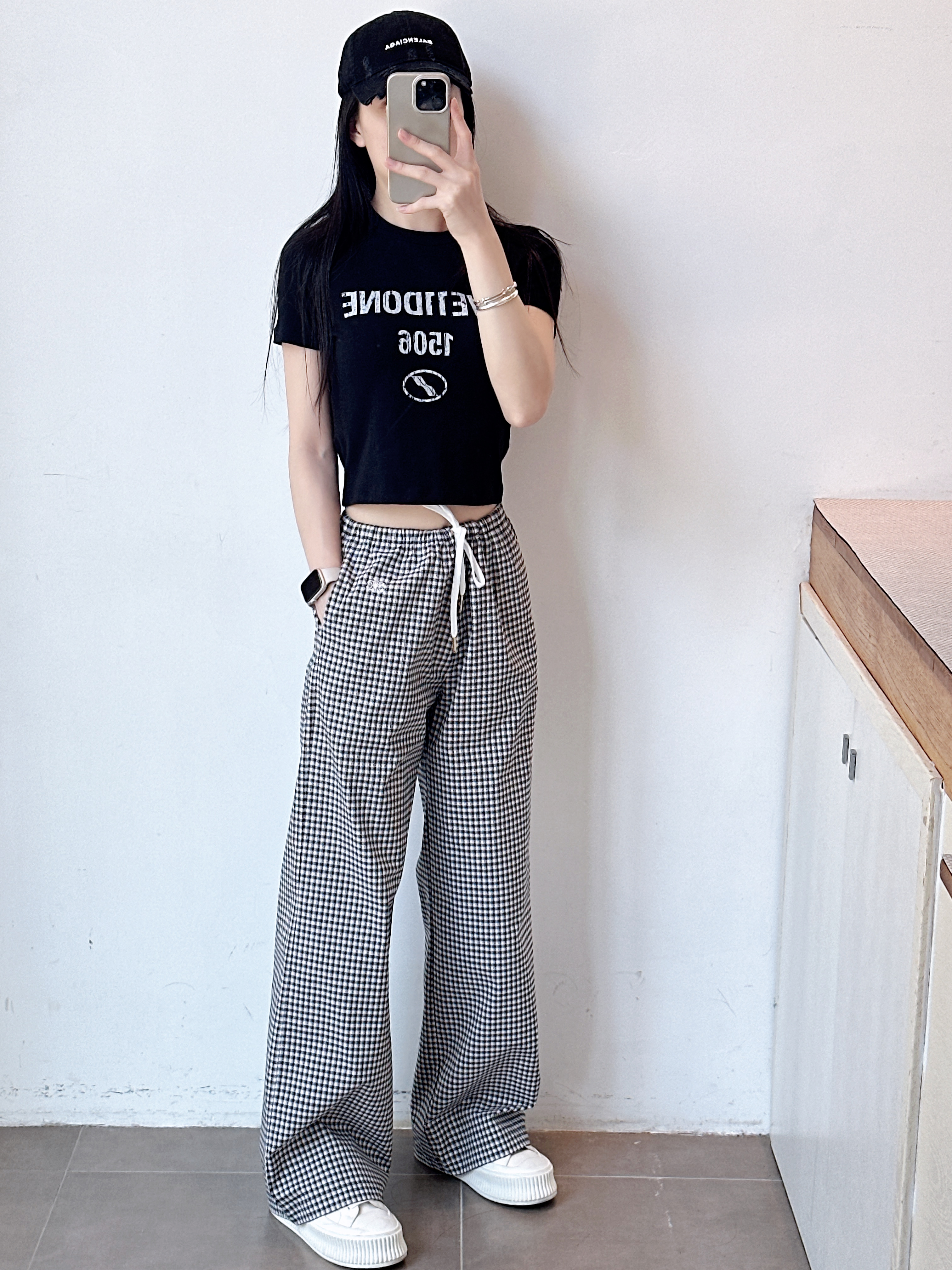 高级感格子休闲裤女士夏季直筒裤拖地洋气百搭长裤