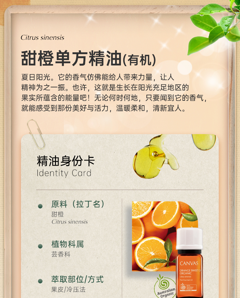保税直发 CANVAS 卡芬诗 甜橙单方香薰精油 12mL
