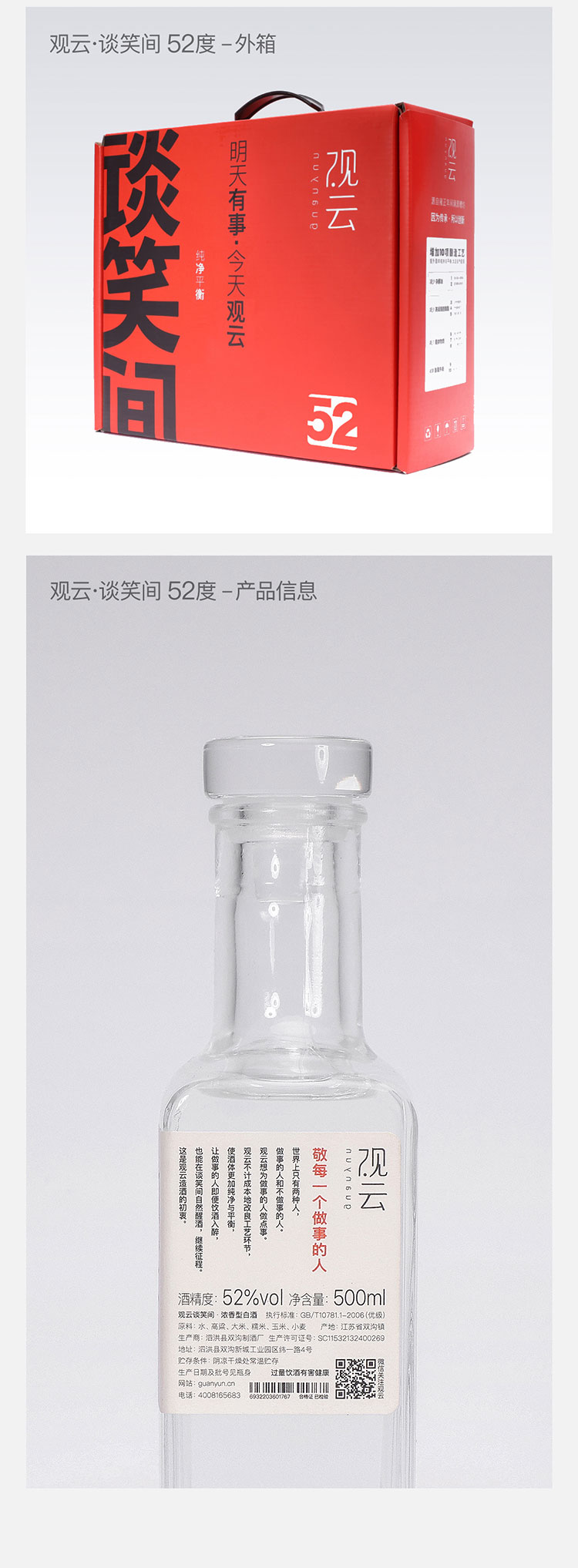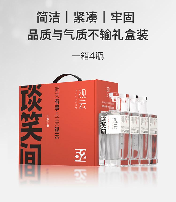 观云 谈笑间 52度浓香型白酒 纯粮食酒 国潮白酒 固态发酵500ml