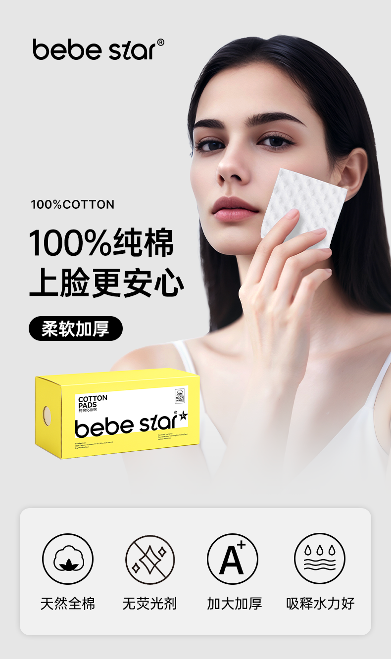 产品名称:BEBE STAR100%纯棉化妆棉