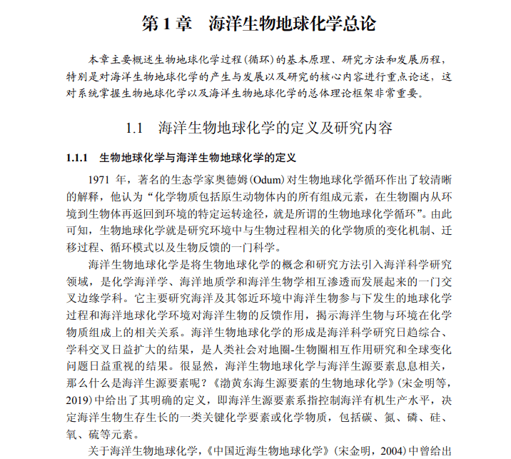1.1.1 生物地球化学与海洋生物地球化学的定义 1