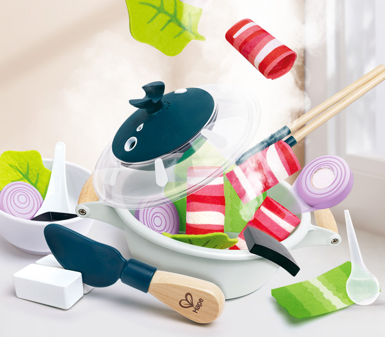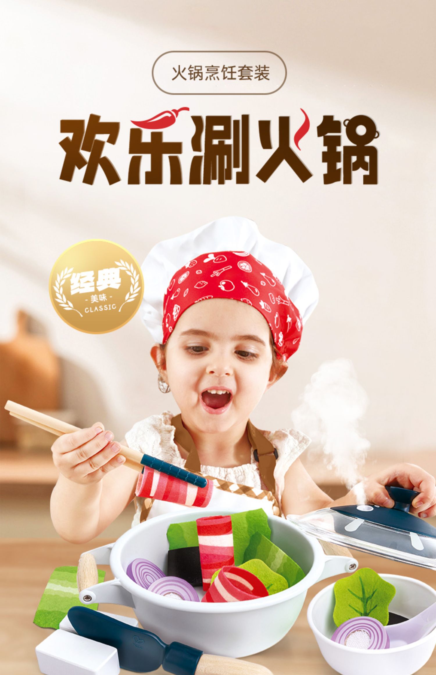 Hape仿真厨房玩具小厨师蒸汽锅火锅烹饪套装过家家儿童益智玩具 /HAPE-37533