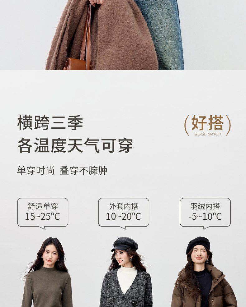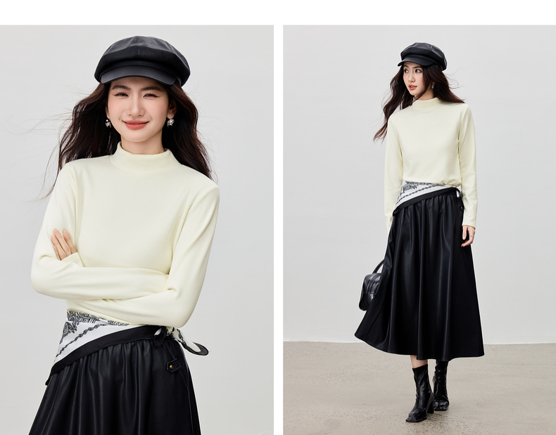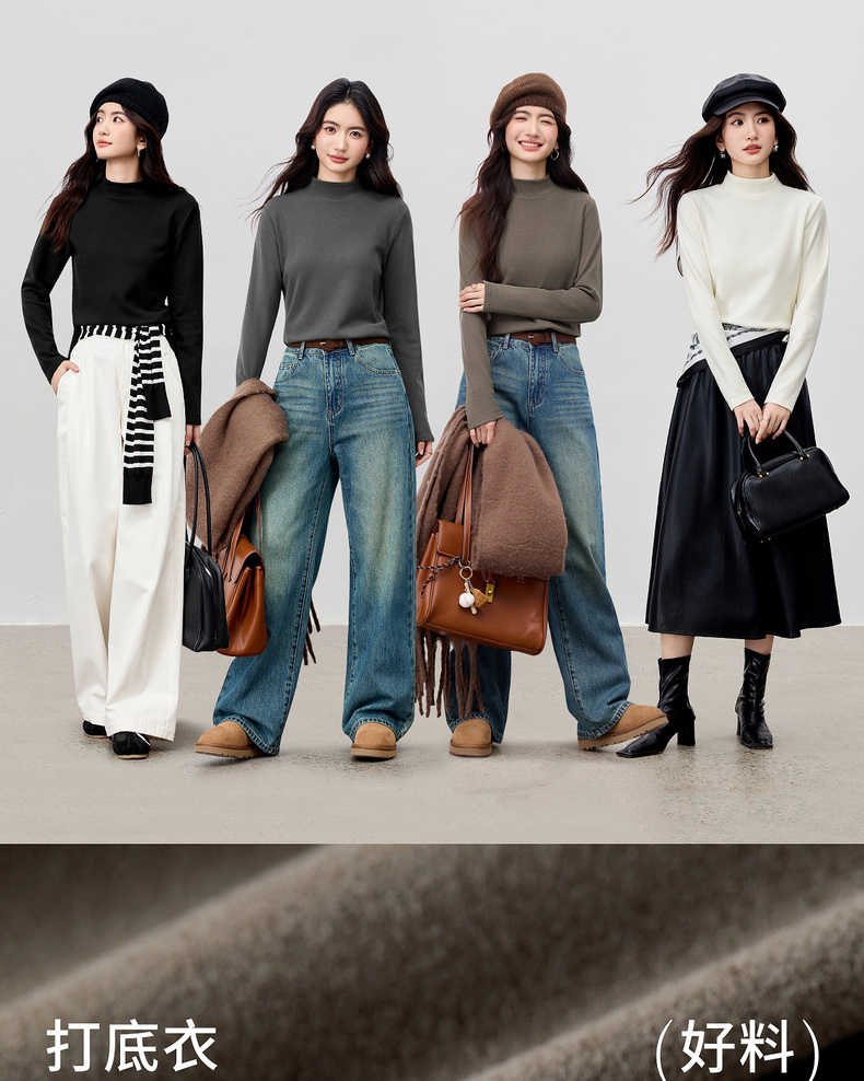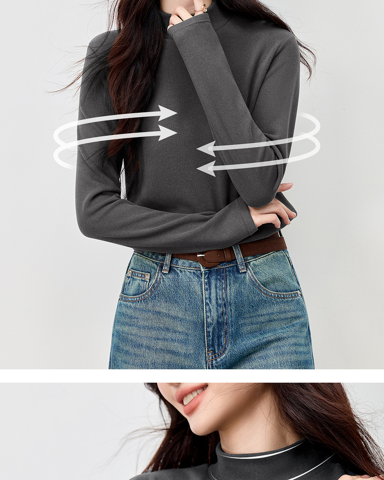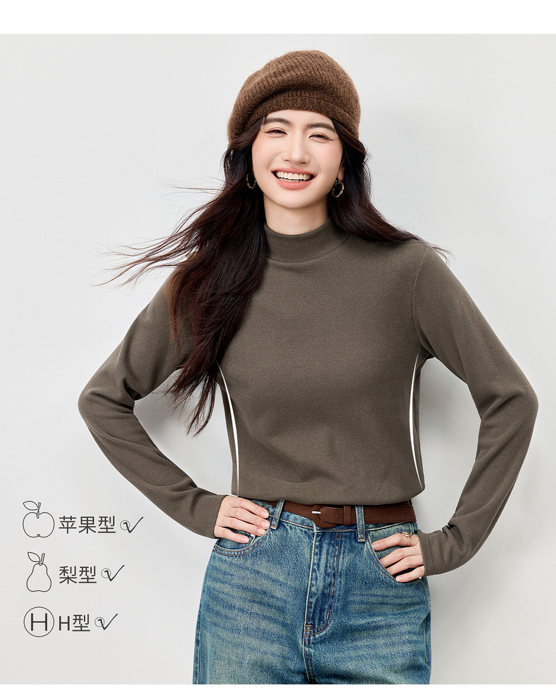 【内购】【穿三季】简约通勤半高领宽松显瘦弹力厚保暖基础外穿内搭打底衫-W54SF3969
