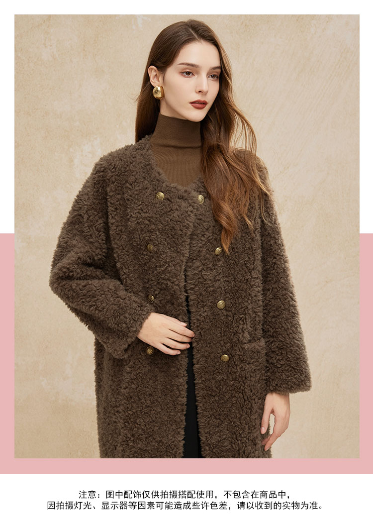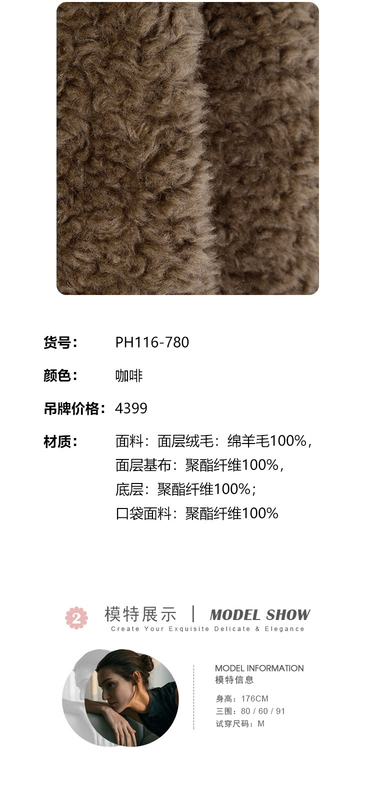 PH116斯尔丽24新款羊羔毛外套减龄时尚保暖名媛羊剪毛长外套