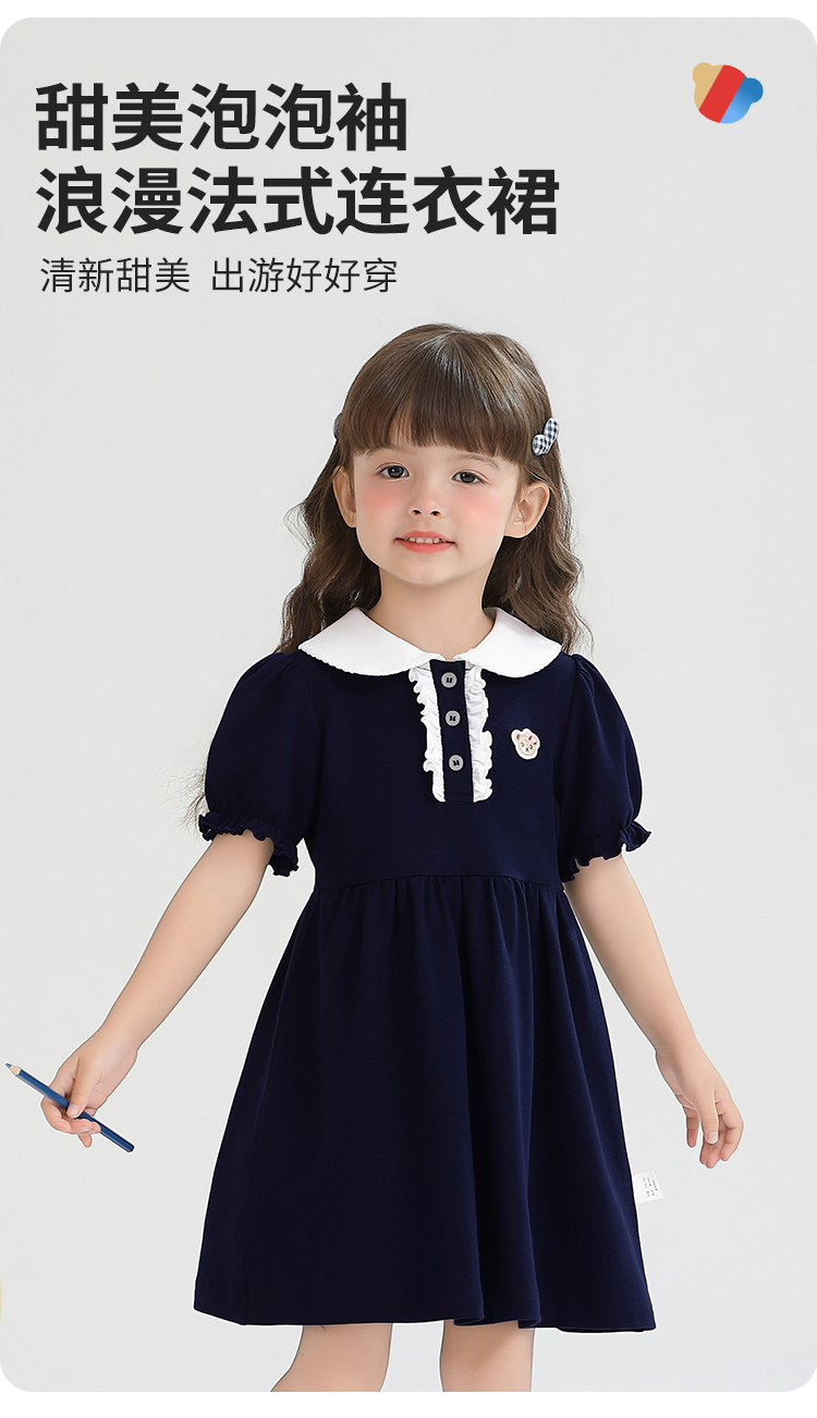 【90-130】【精典泰迪】儿童裙子女童连衣裙泡泡袖公主裙