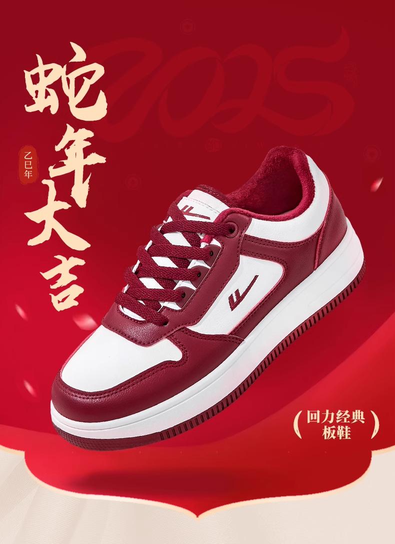 回力女鞋运动鞋2025蛇年本命年红色结婚百搭鞋子厚底加绒情侣板鞋