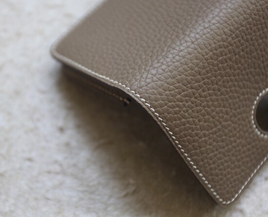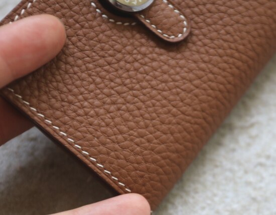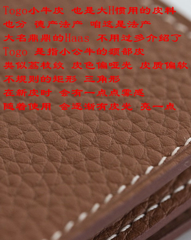 Togo小牛皮 是大H惯用的皮料 很类似荔枝纹 压纹比较清晰 但不是颗粒的
