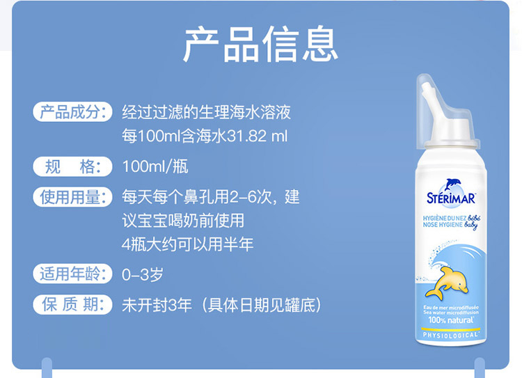 法国sterimar小海豚儿童生理海盐水滴鼻喷雾 0~3岁/3岁以上